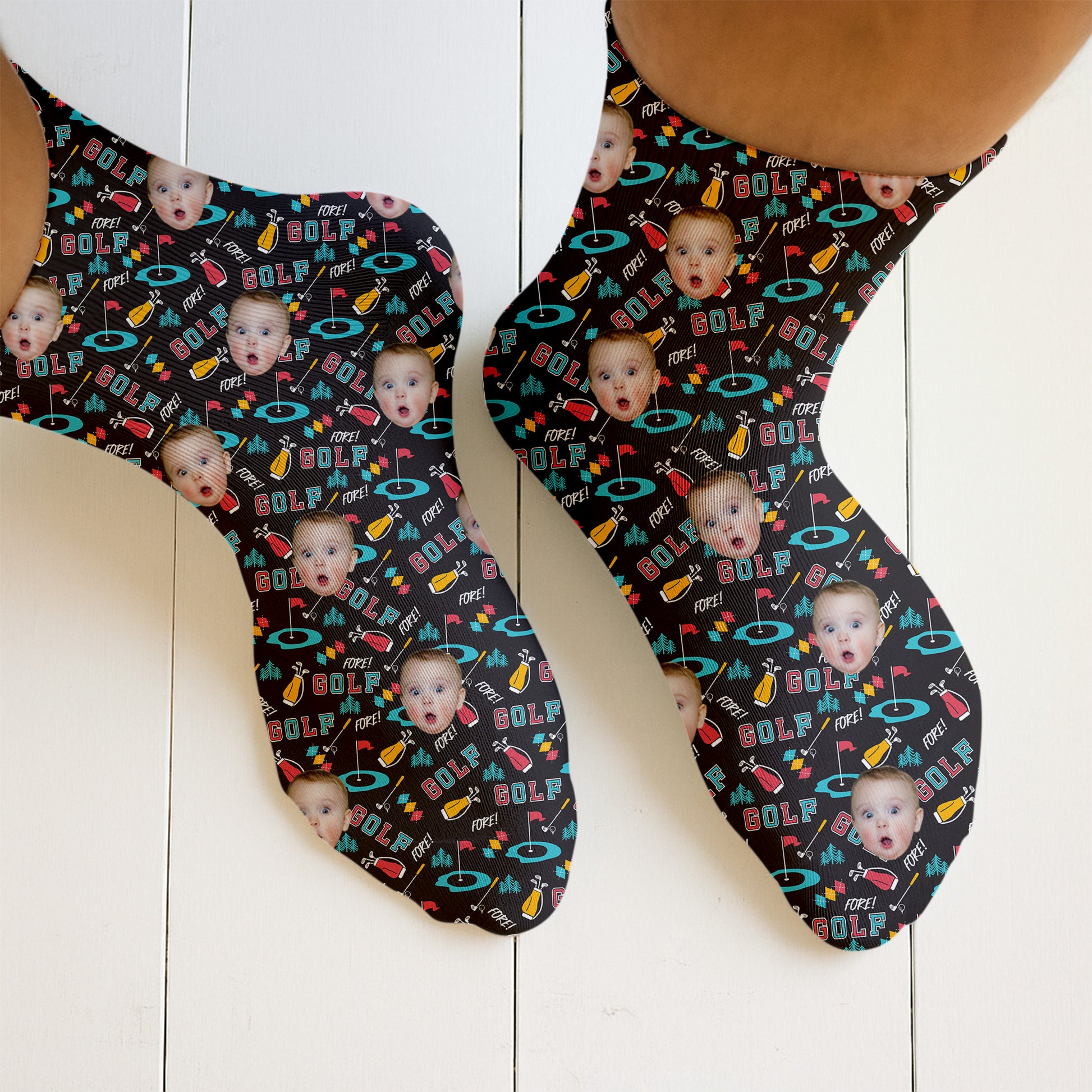 Custom Photo Socks, Fun Golf Sock, Christmas Golf Gift, Gifts For The Golfing Dad
