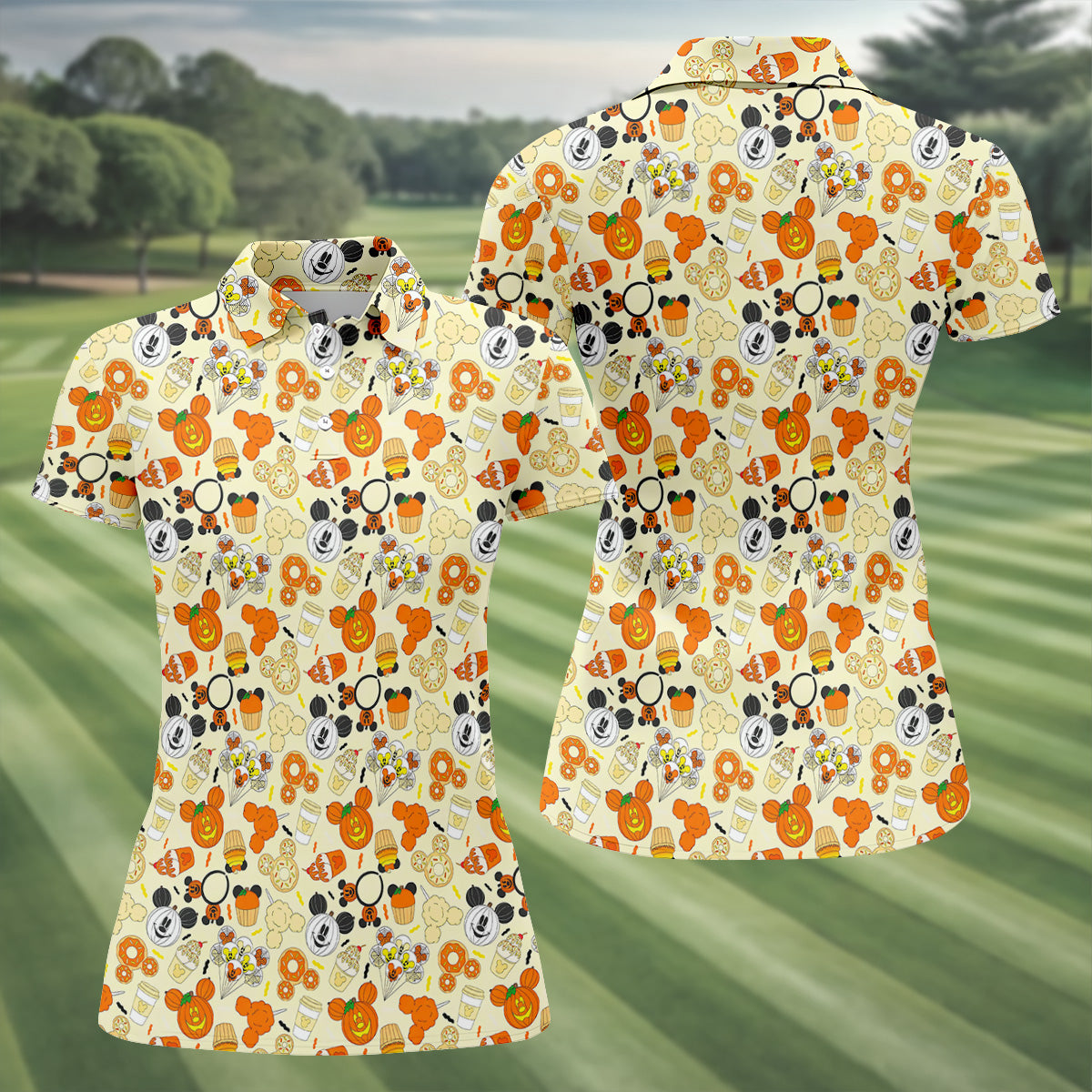 Cute Halloween Pattern Ladies Golf Polos, Sweet Spooky Women's Golf Tops, Halloween Golf Shirt