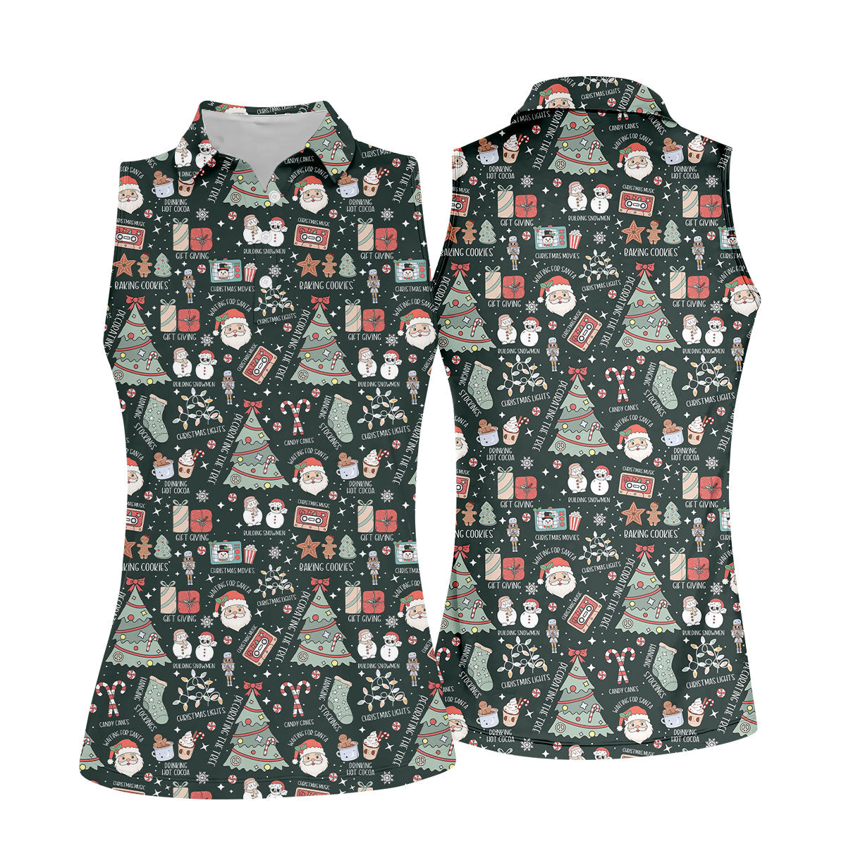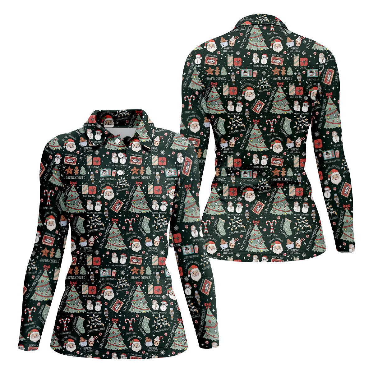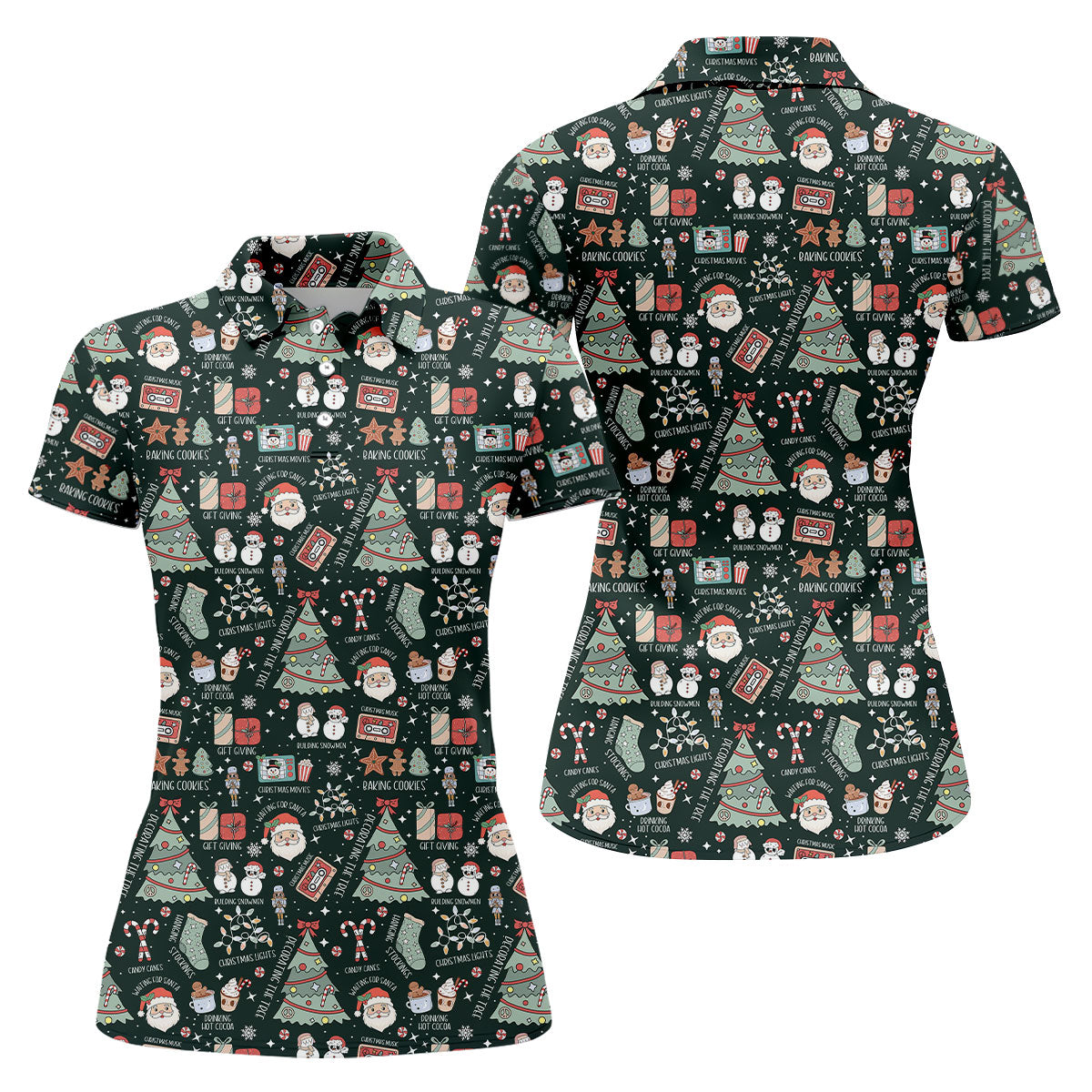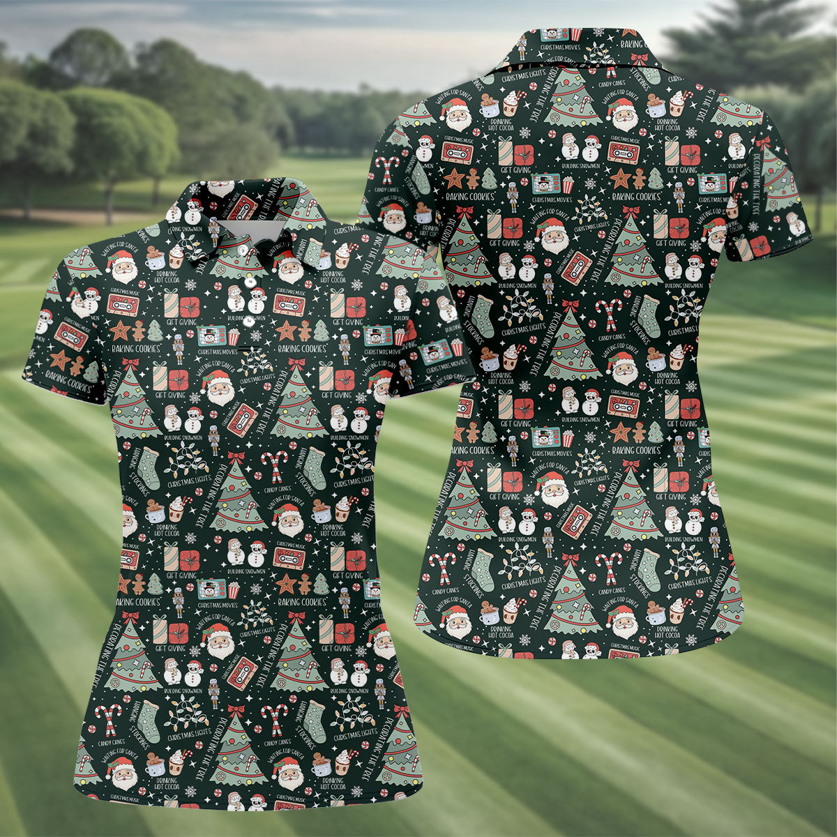 Cute Santa Claus Gift Green Women's Golf Tops, Christmas Golf Shirt, Golf Gift For Ladies
