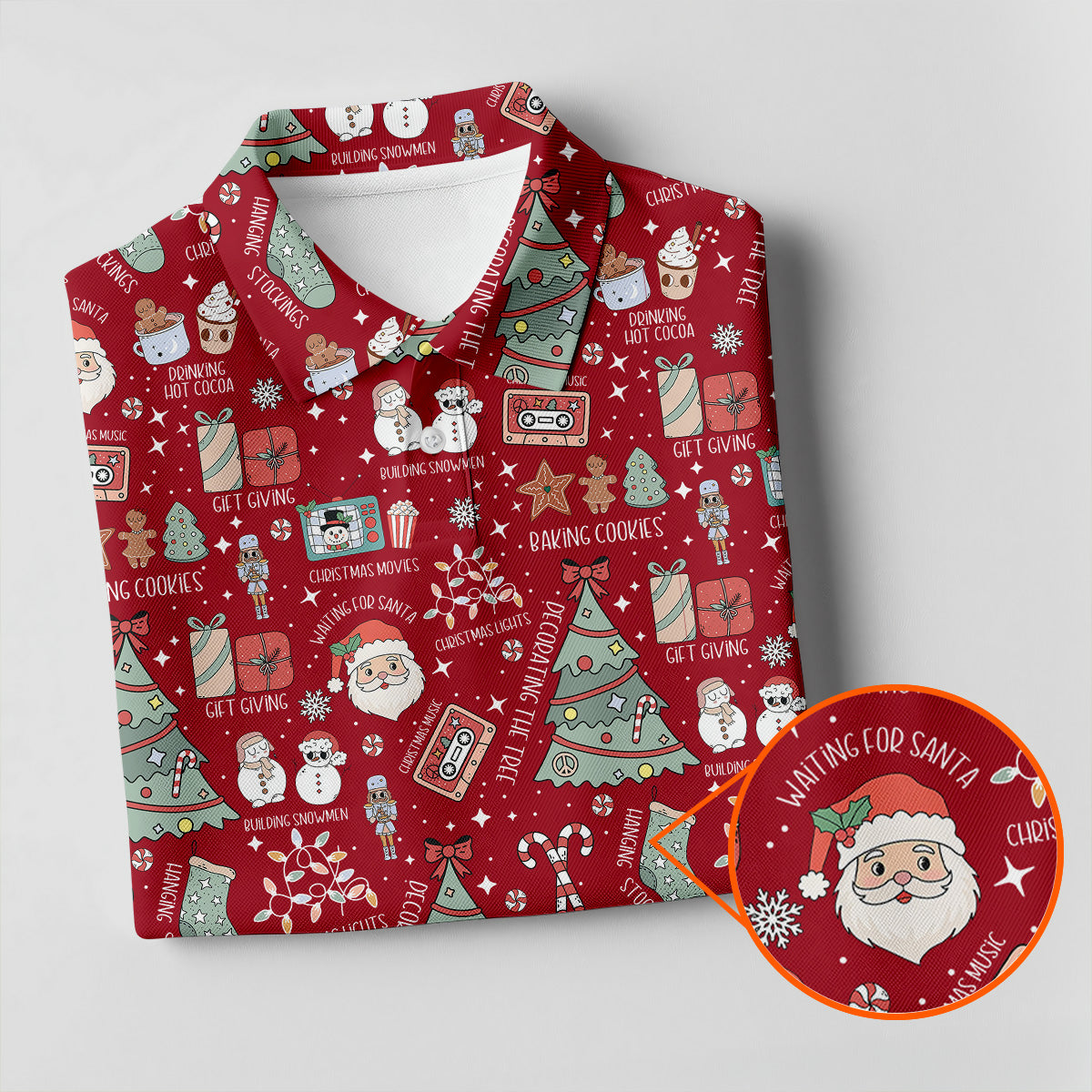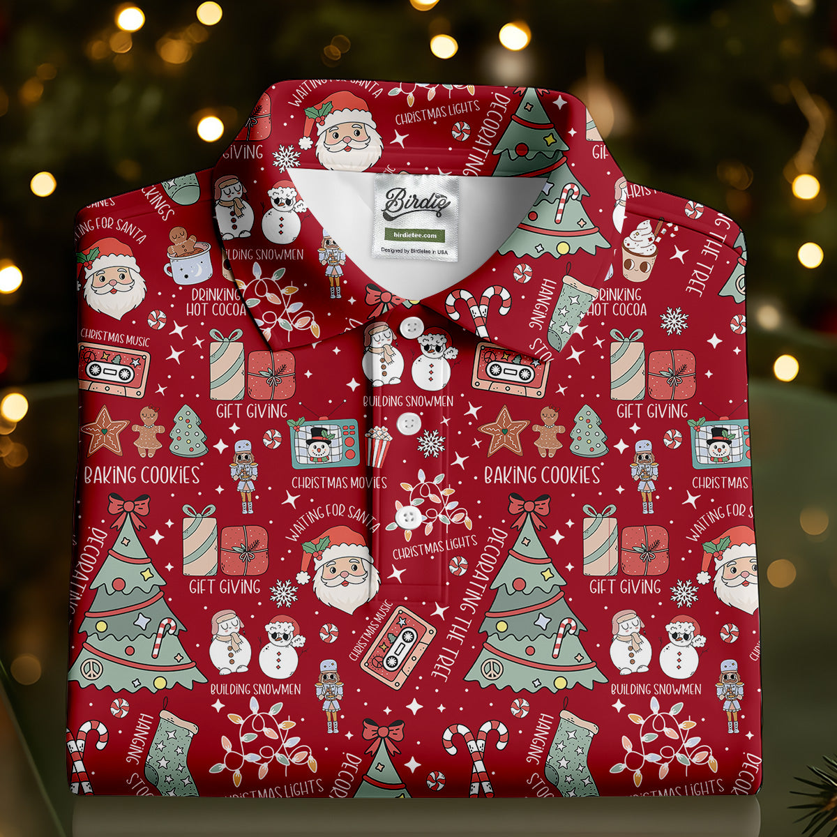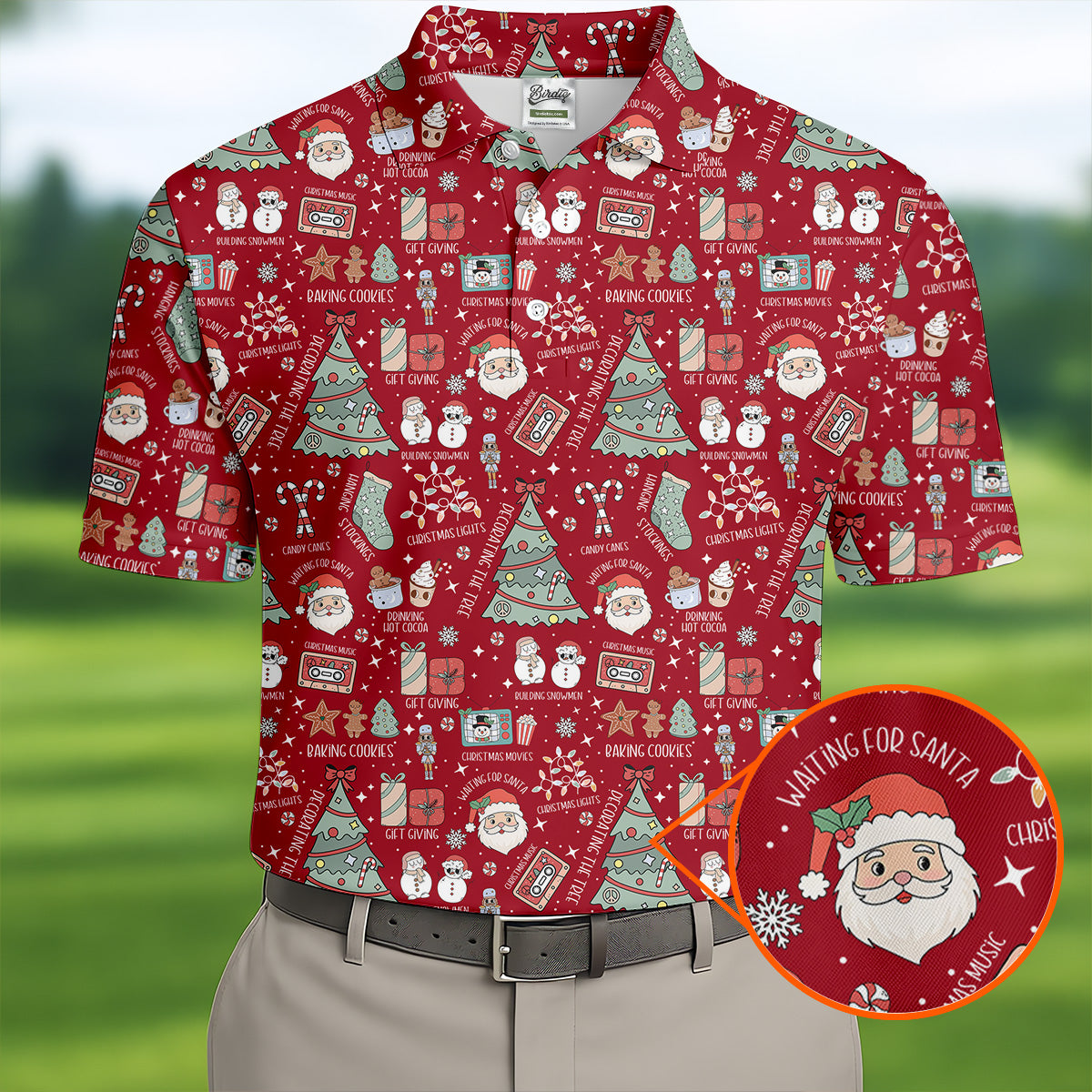 Tis The Season Santa Claus Gift Red Men's Golf Polo Shirts, Christmas Golf Shirt, Polo Shirts For Men