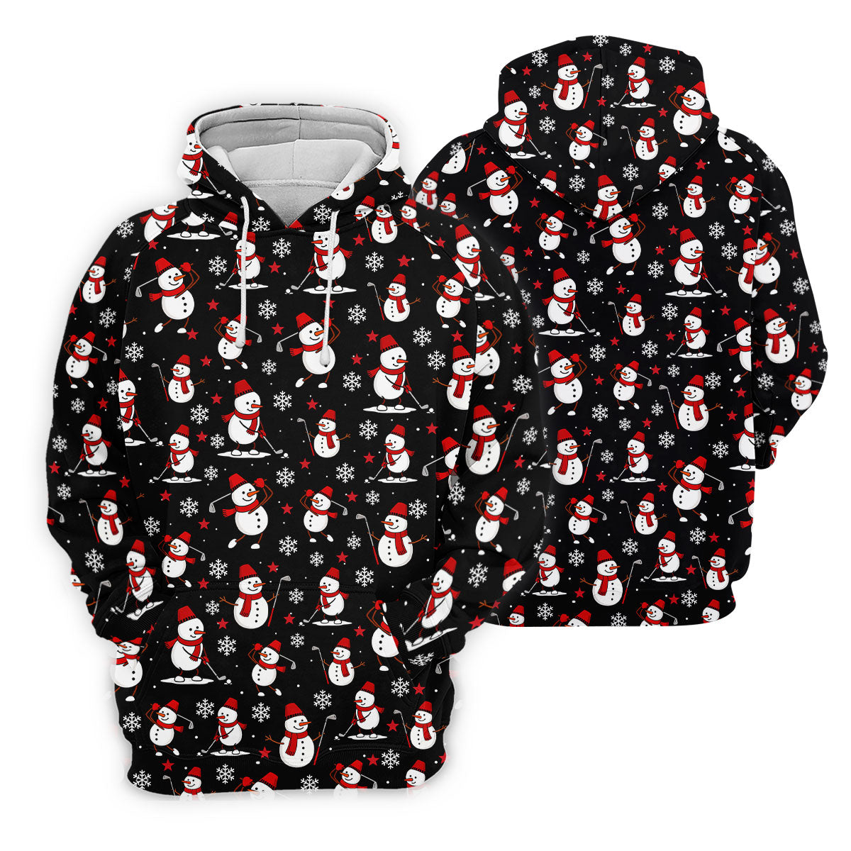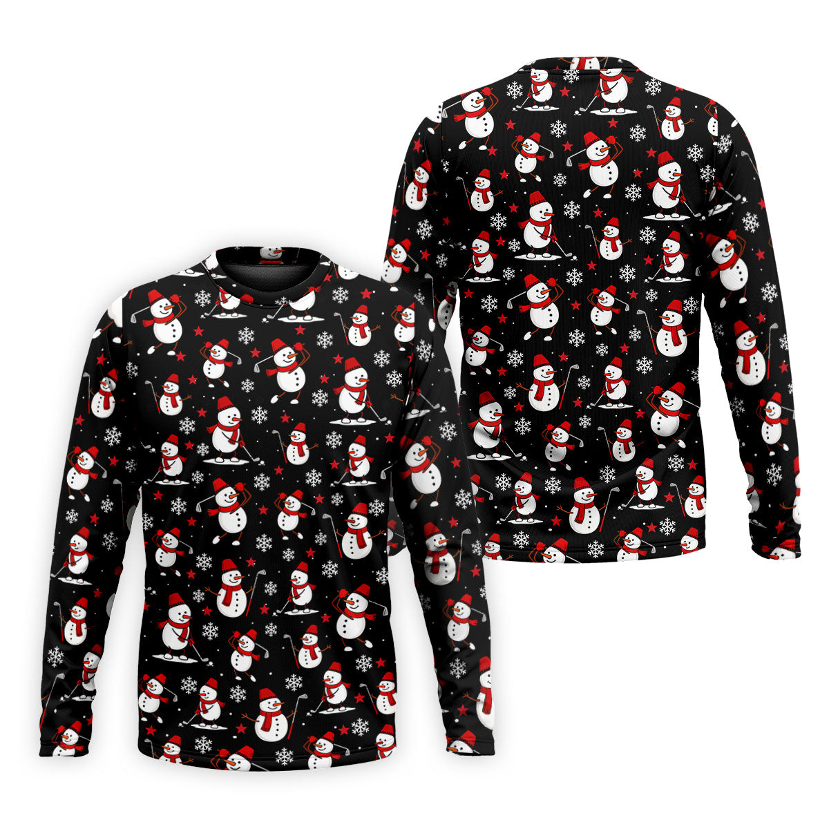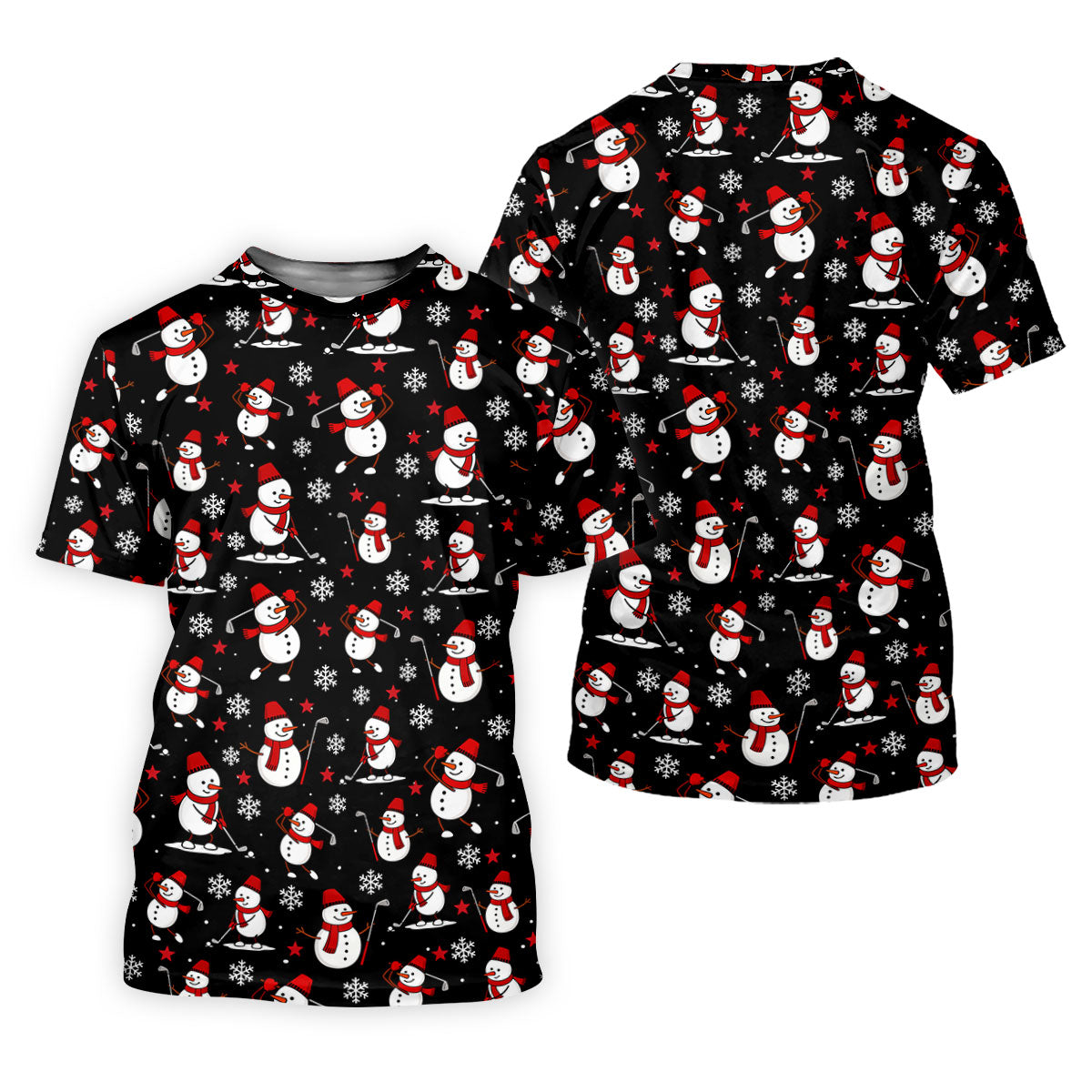 Cute Snowman Golf Pose Black Golf Shirt, Christmas Golf Shirt, Golf Shirts For Men, Golf Gift For Men