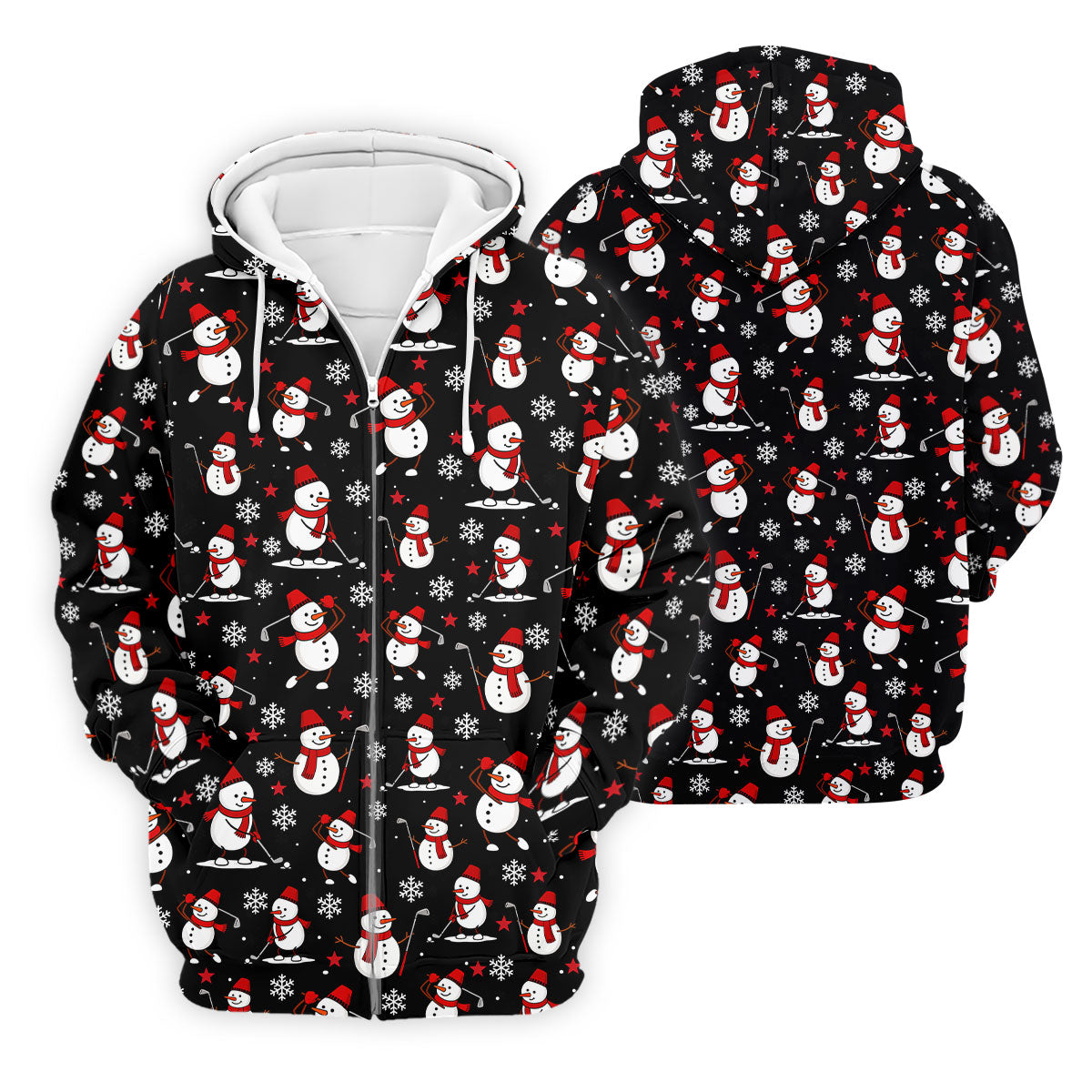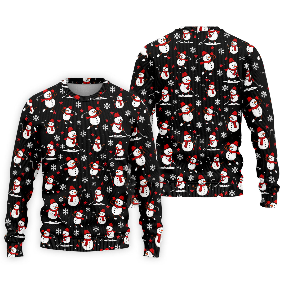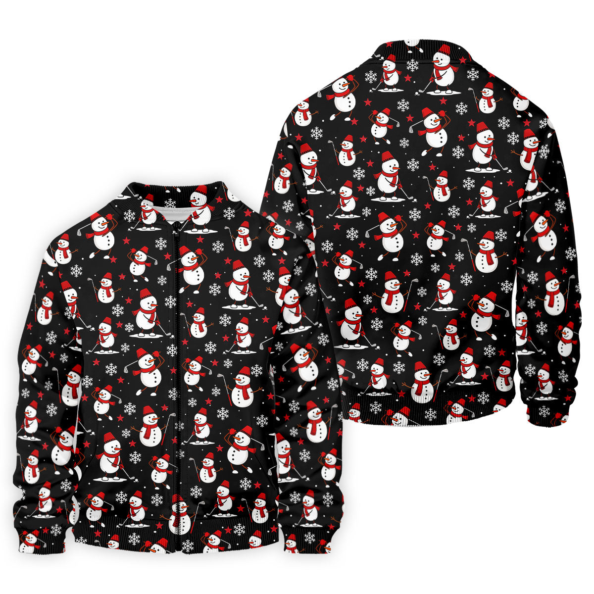 Cute Snowman Golf Pose Black Golf Shirt, Christmas Golf Shirt, Golf Shirts For Men, Golf Gift For Men