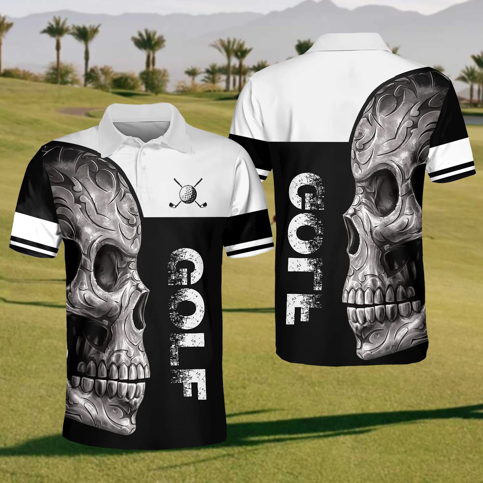 Dark Skull Mens Golf Polo Shirt, Mens Golf Gift, Mens Golf Shirt