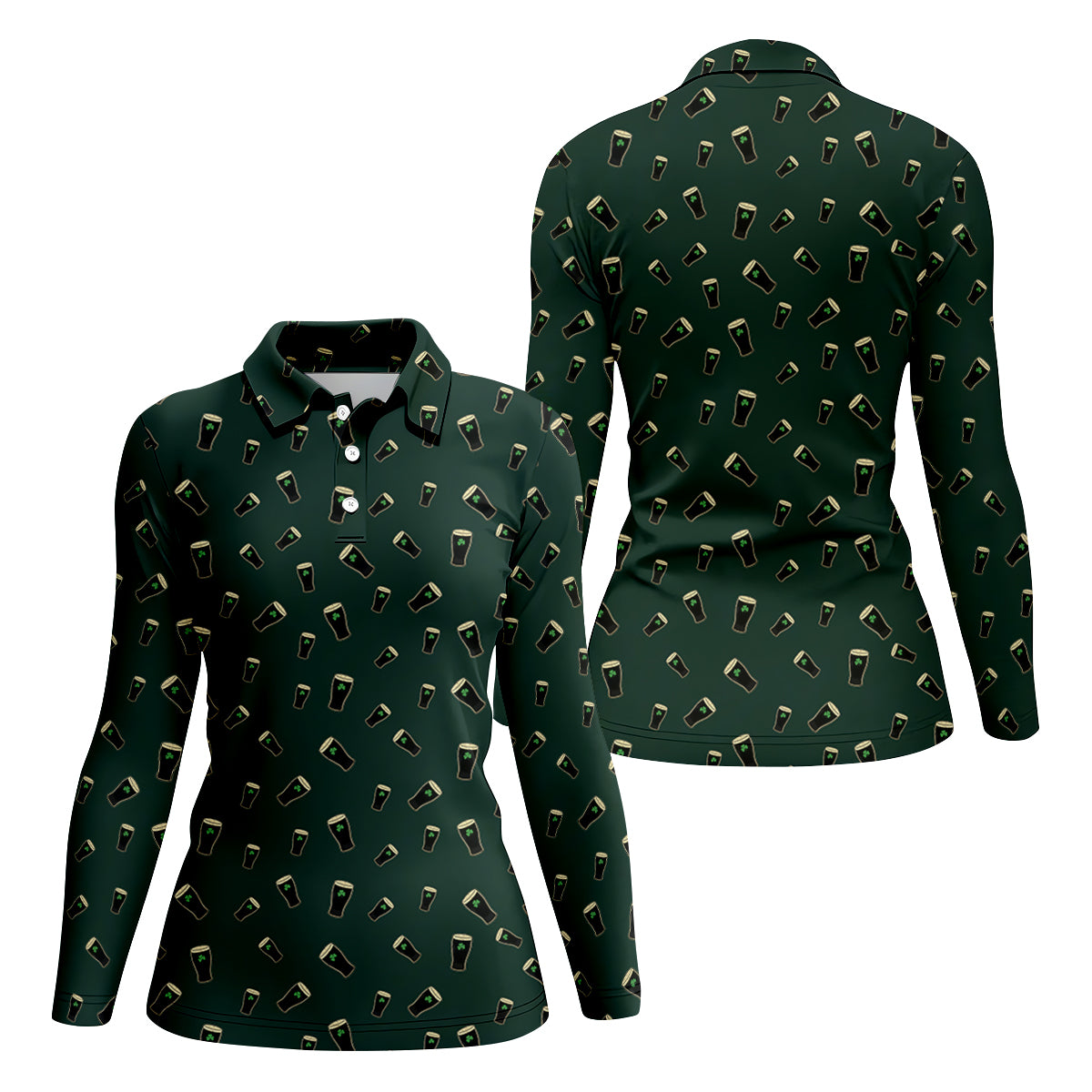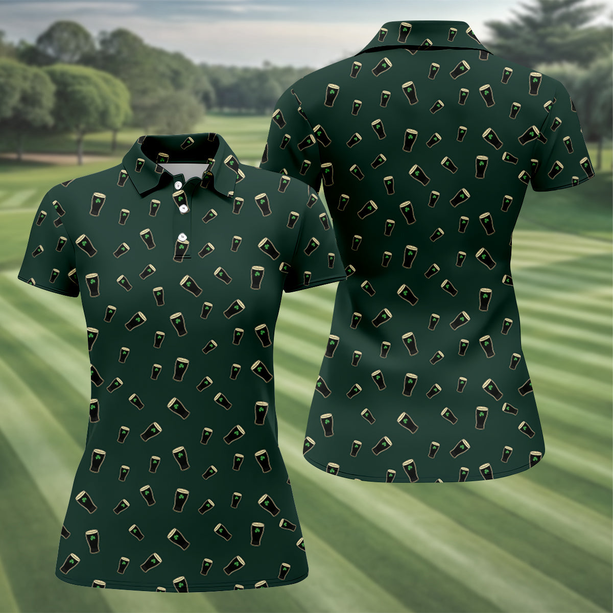 Dark Stout Beer St Patrick's Day Green Shamrock Golf Shirt, Ladies Golf Tops, Golf Shirt For Women
