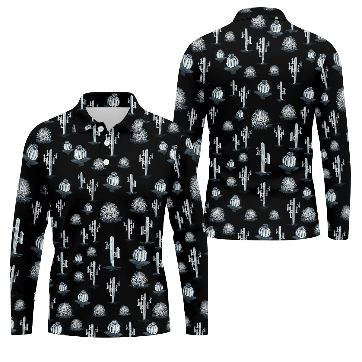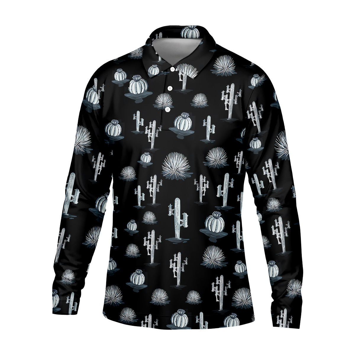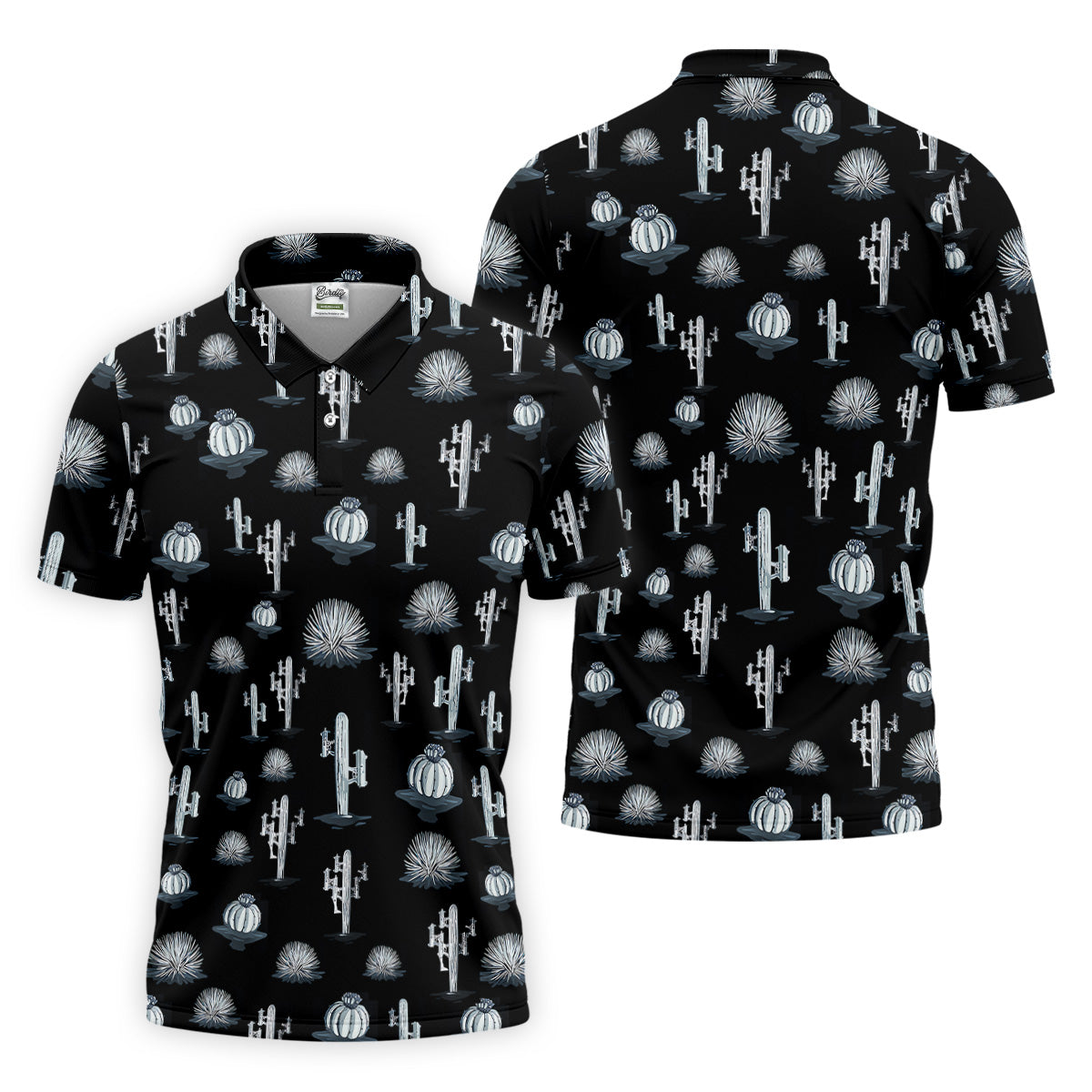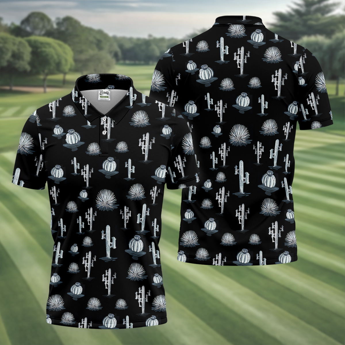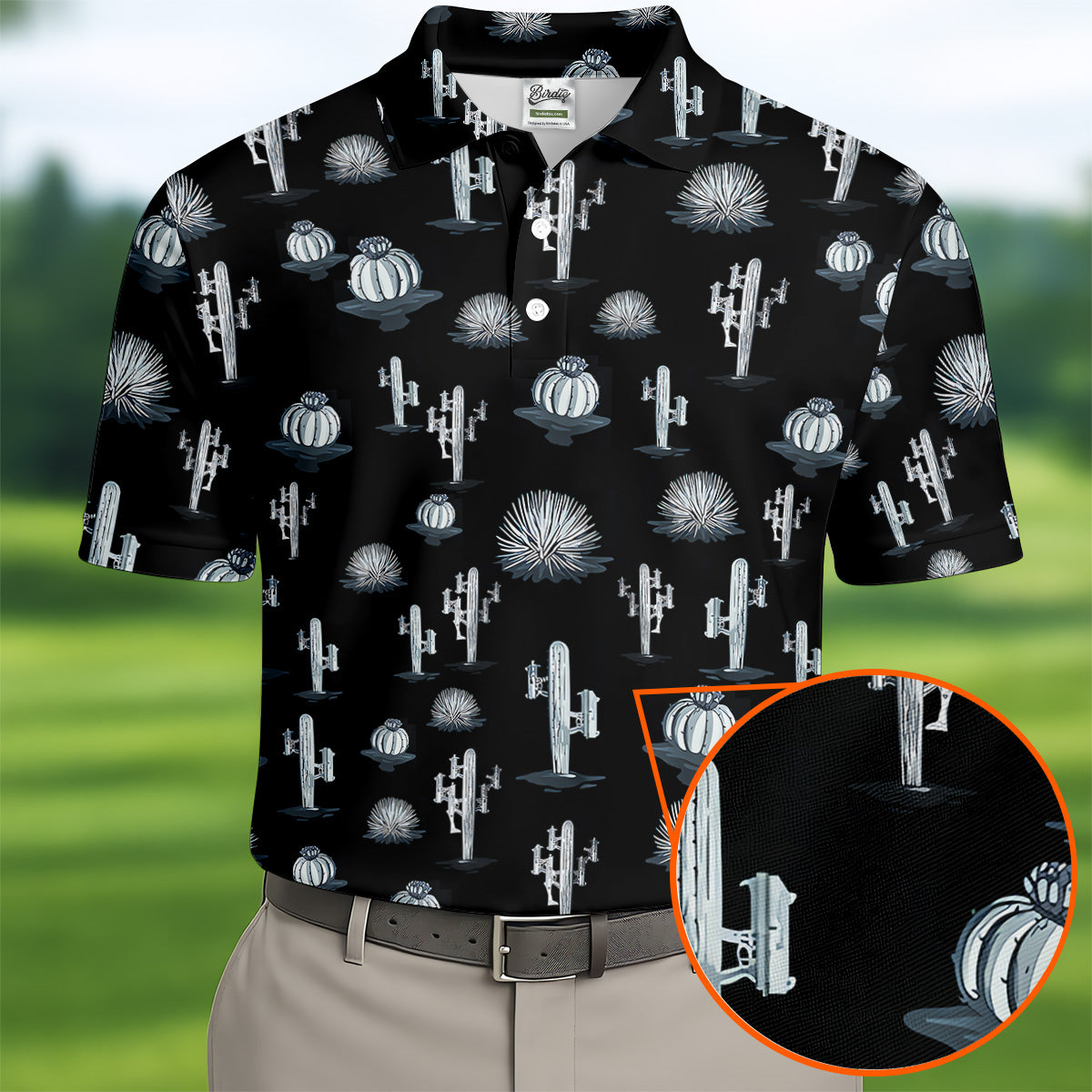 Desert Cactus Black And White Golf Tops For Men, Golf Gift For Men, Golf Shirts For Men