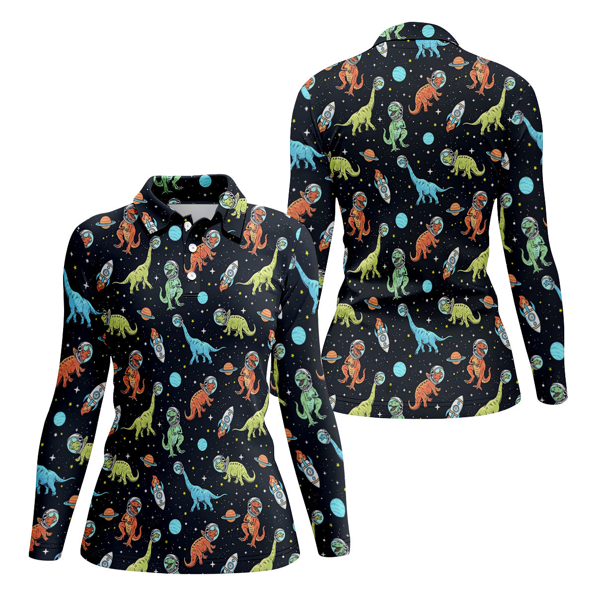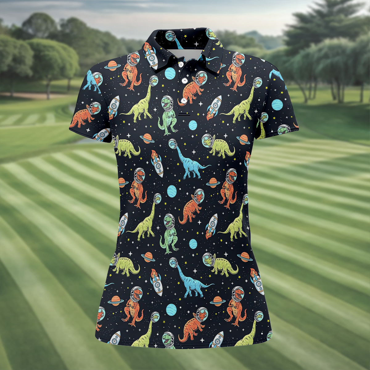 Dinosaur Space Golf Shirt, Women Golf Top, Gifts For Golf Lovers, Golf Gifts For Women, Ladies Golf Shirts