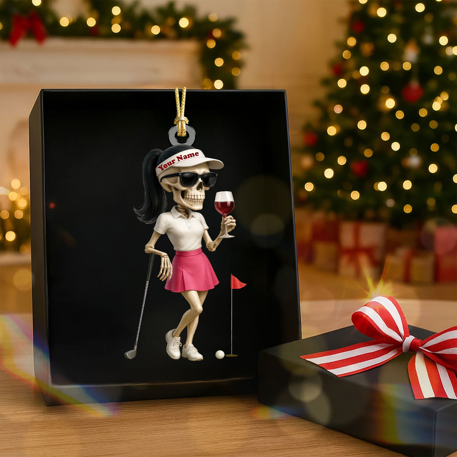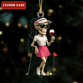 Female Skeleton Golfer Golf Wine Acrylic Ornaments, Golf Christmas Gifts, Funny Golf Presents