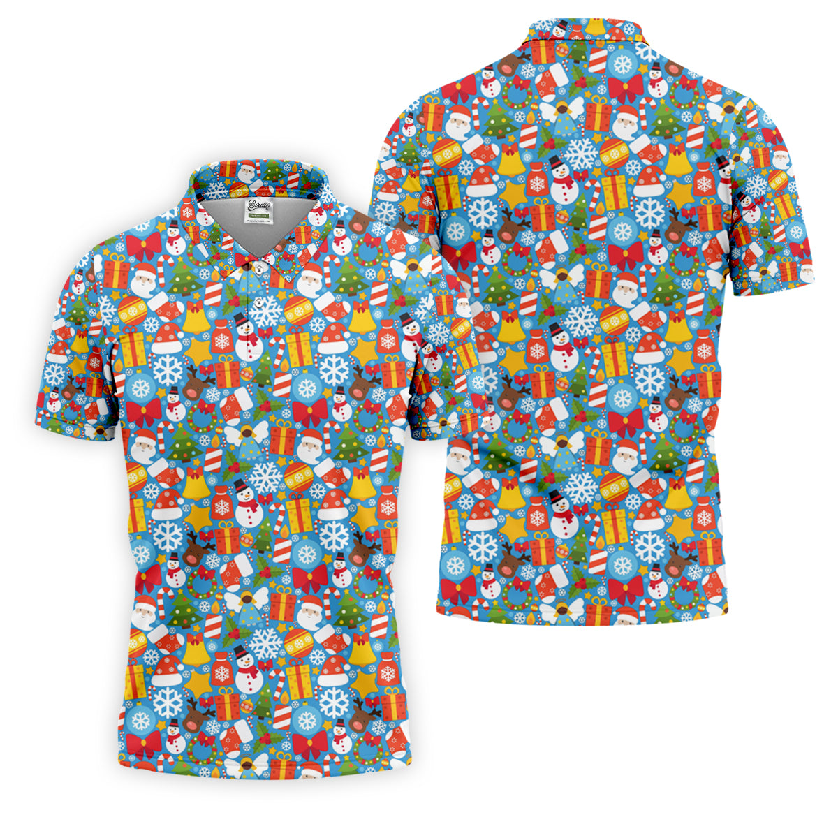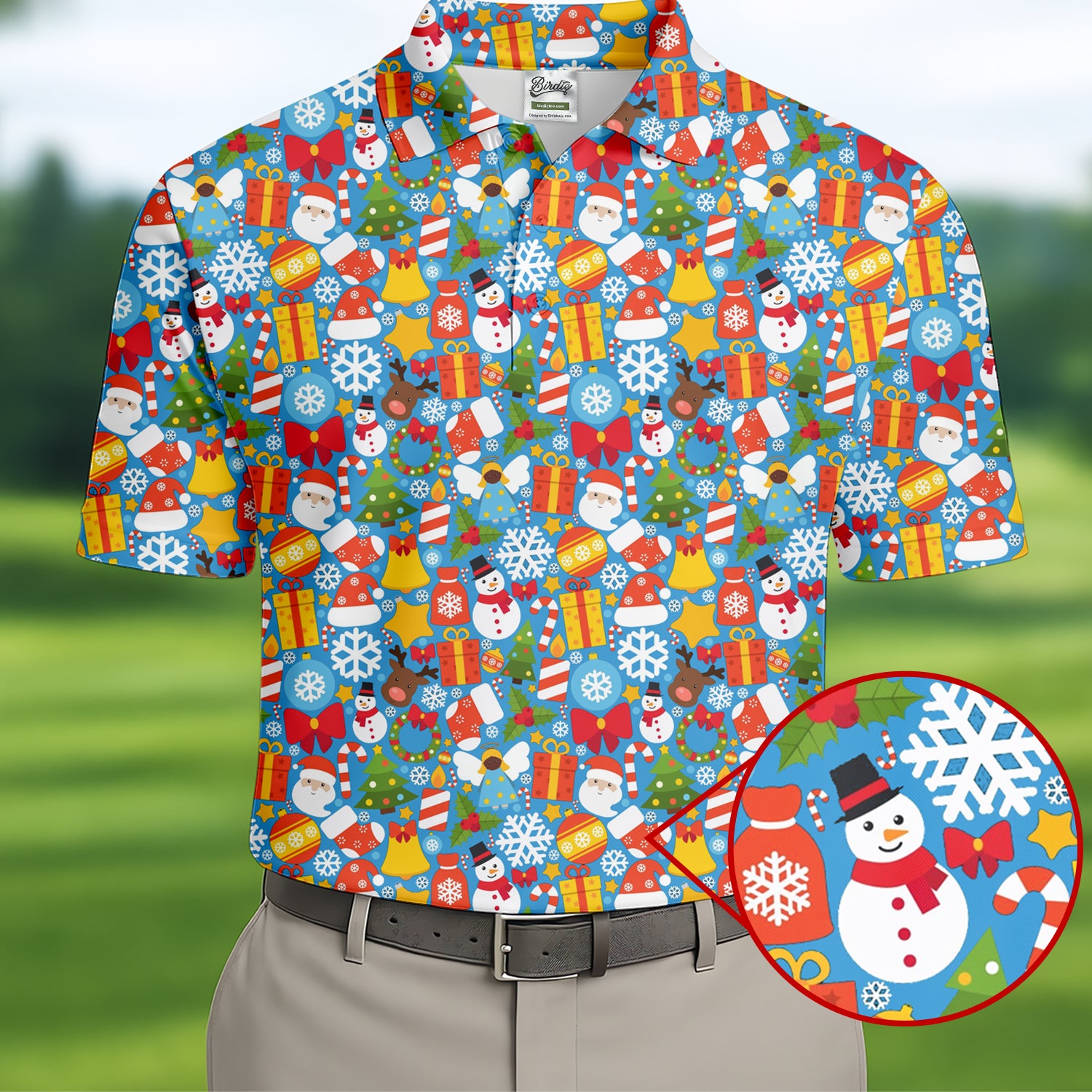 Festive Christmas Blue Golf Shirt, Christmas Golf Shirt, Polo Shirts For Men, Golf Gift For Men, Golfing Apparel