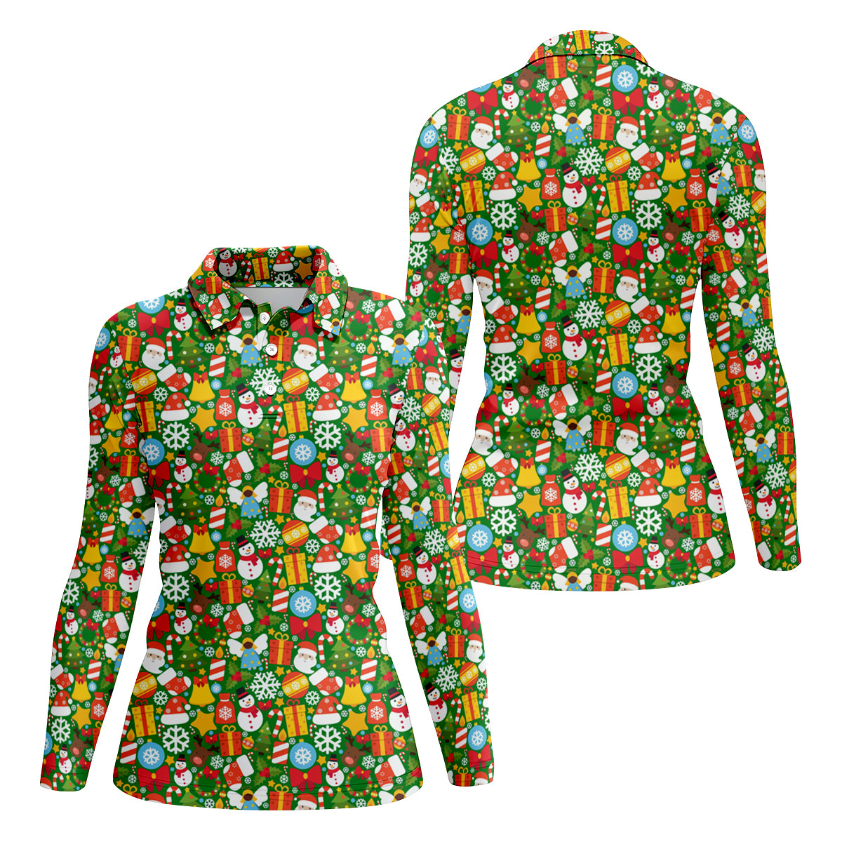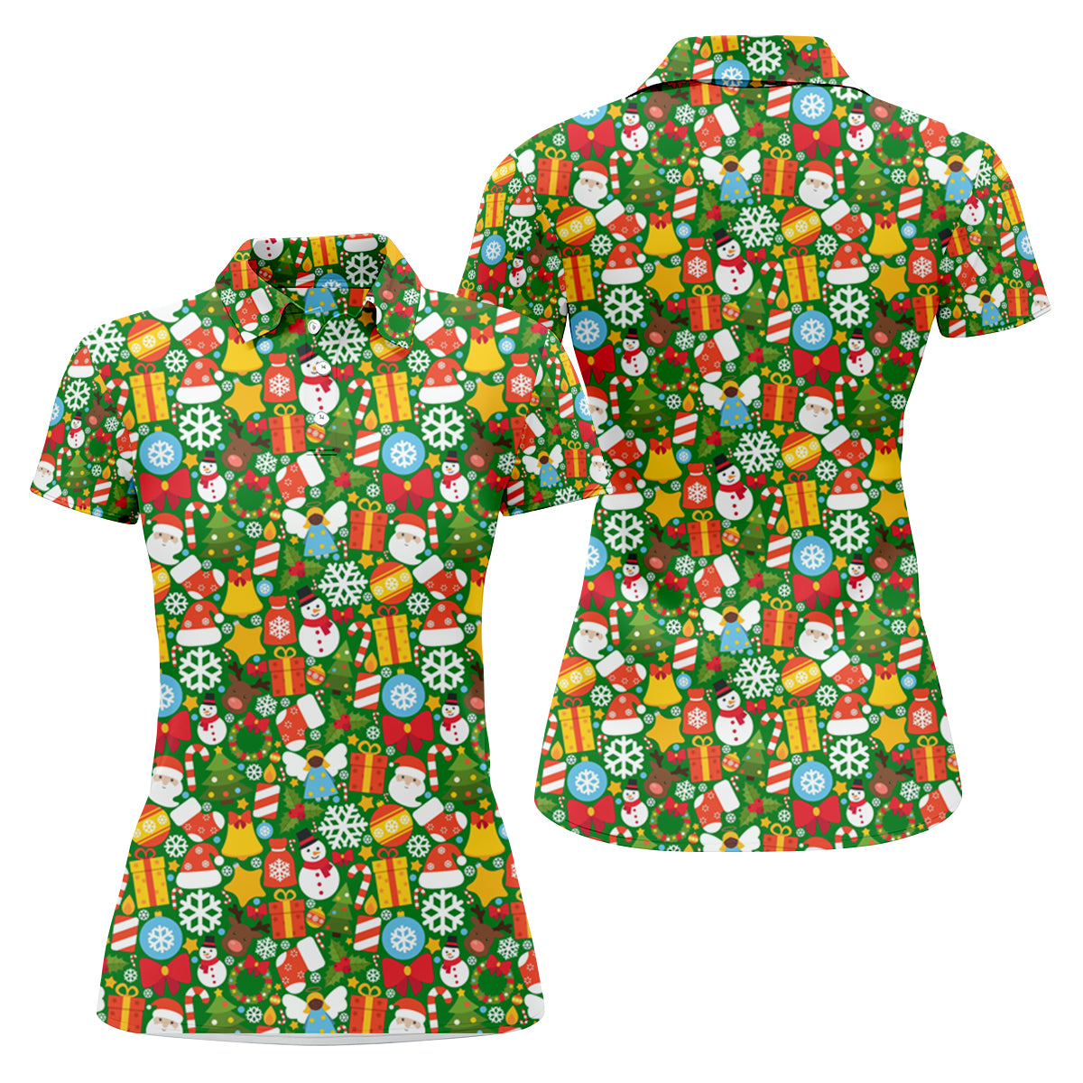Festive Christmas Green Golf Shirt, Christmas Golf Shirt, Ladies Golf Shirts, Golf Gifts For Women, Golfing Apparel