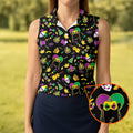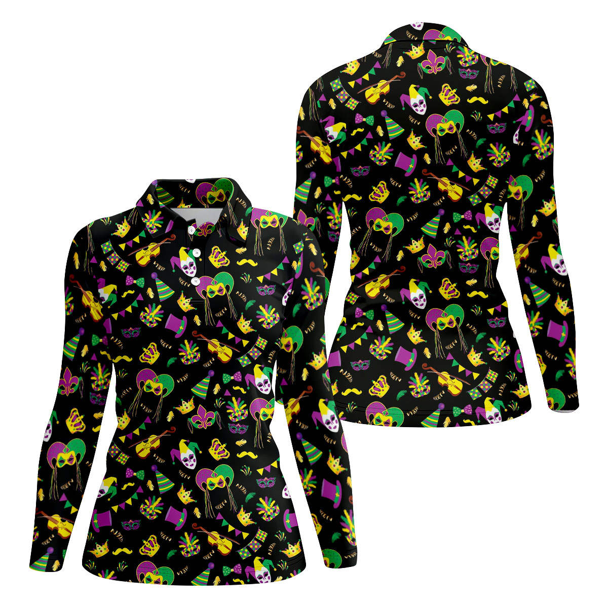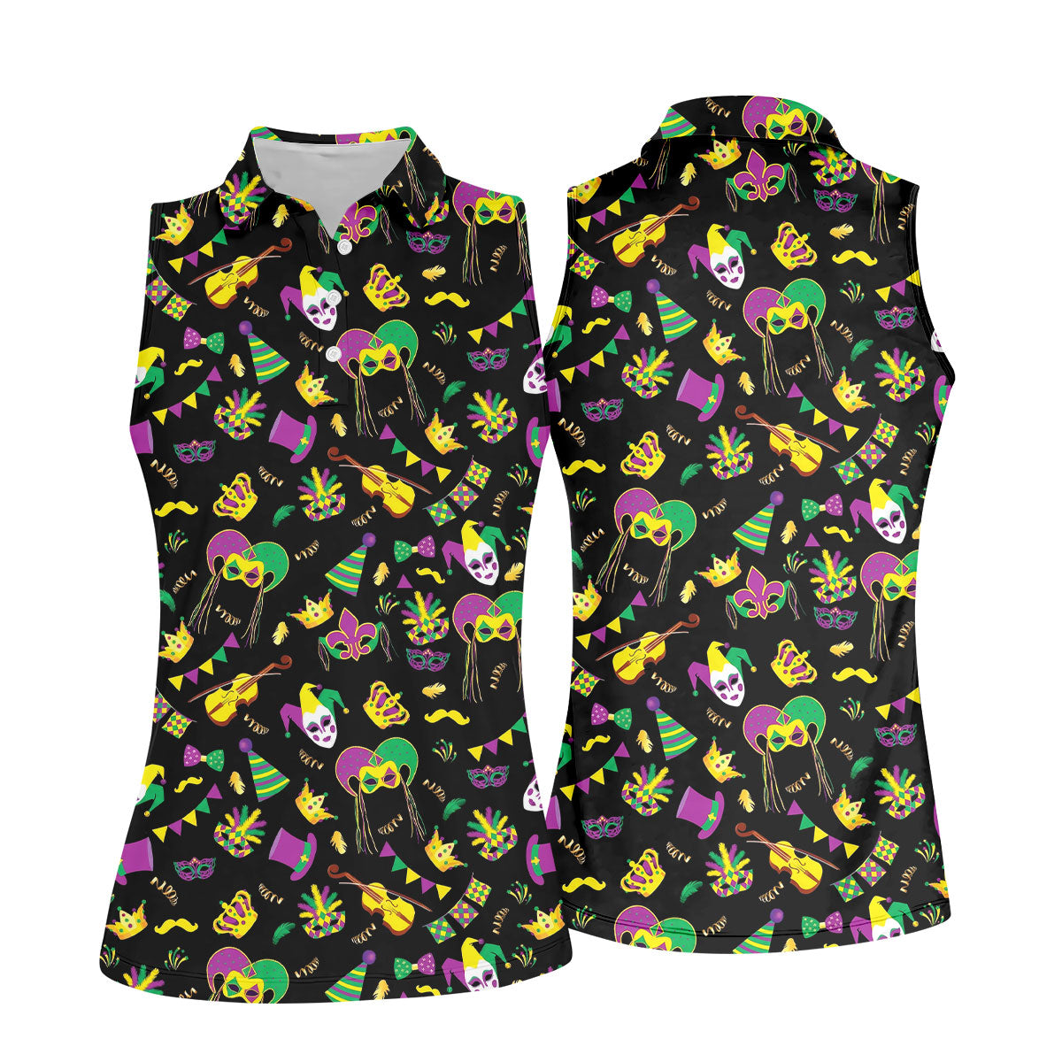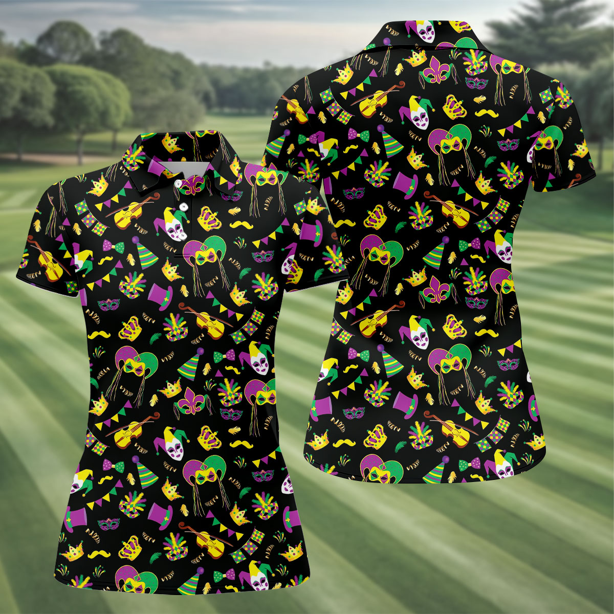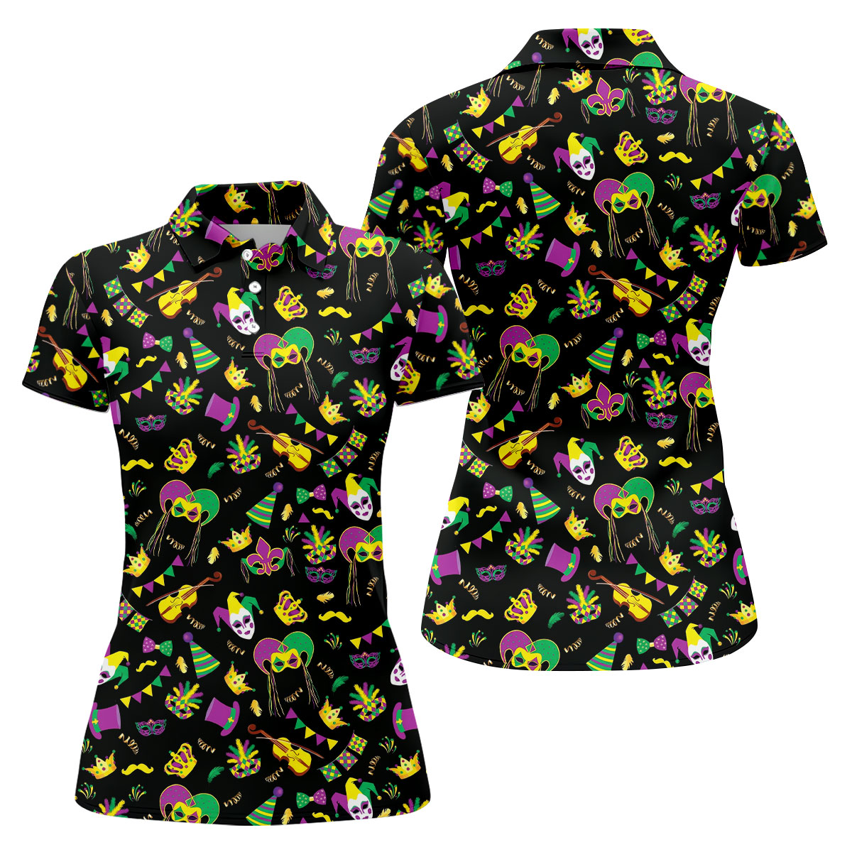 Festive Mask Purple Green Gold Mardi Gras Golf Shirt, Women's Golf Tops, Ladies Golf Polos