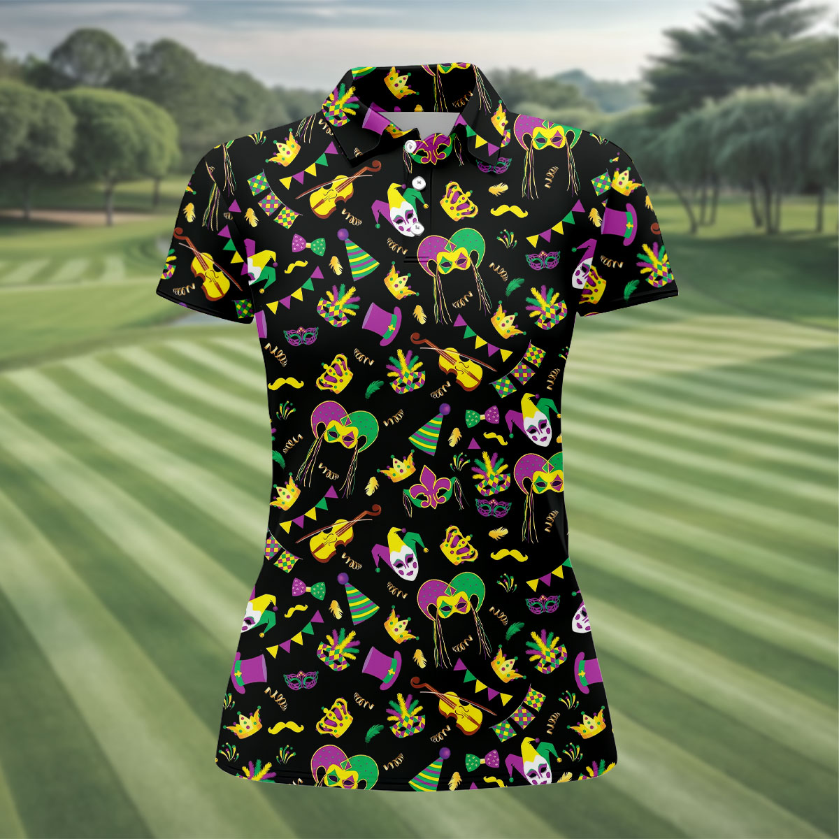 Whether you’re teeing off during Mardi Gras week, playing a themed tournament, or just looking for an excuse to bring festival vibes to the course — this shirt shows up ready to celebrate.