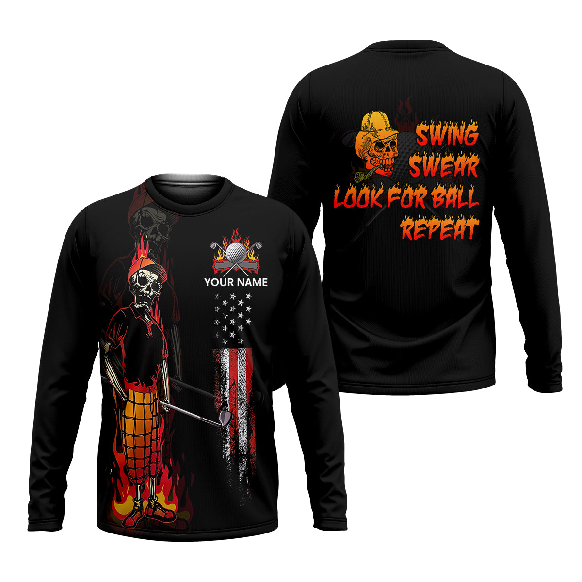 Custom Flaming Skeleton Men's Golf Polo Shirt, Mens Golf Gift, Funny Golf Shirt