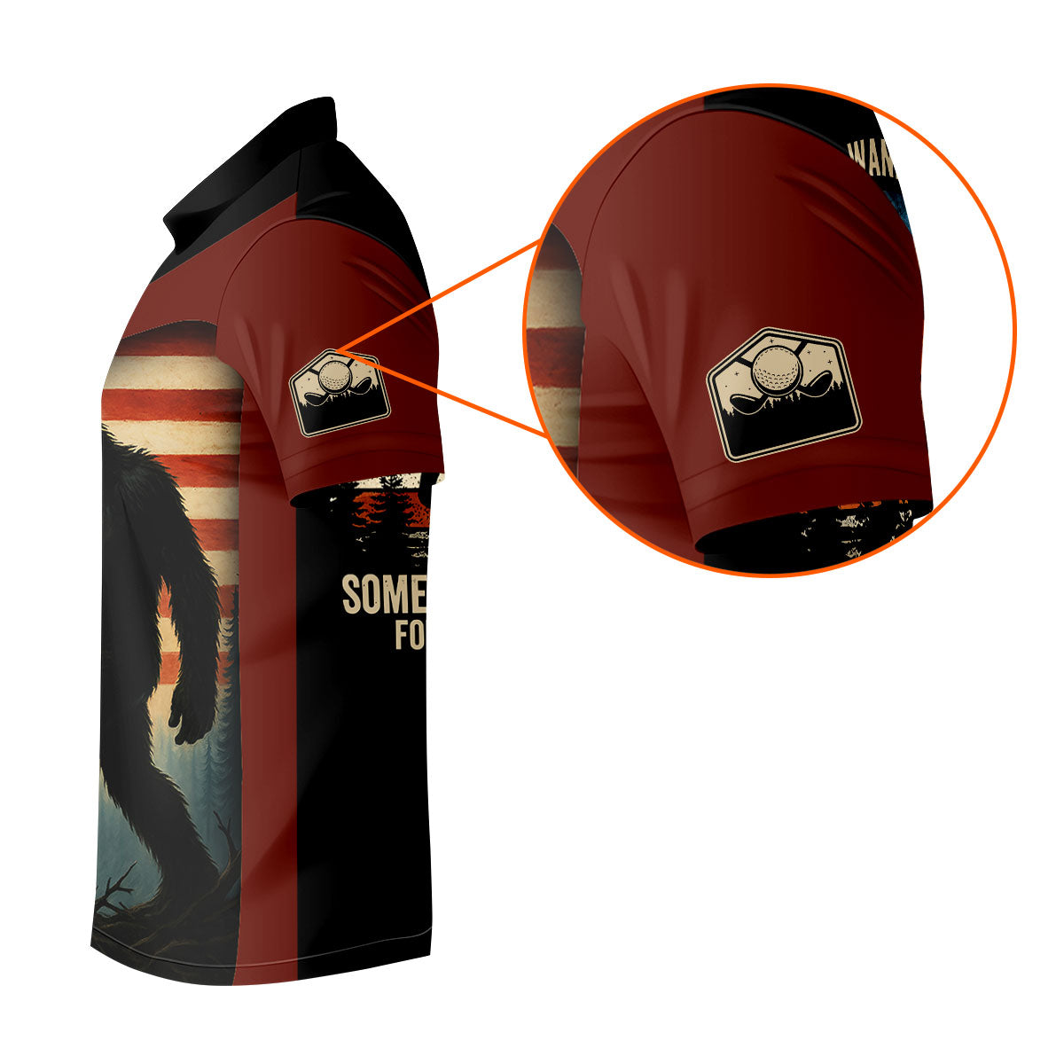 Bigfoot Golf Shirt, Patriotic Golf Polo Shirts, Men's Long Seeve Golf Shirts, Golf Gifts For Men