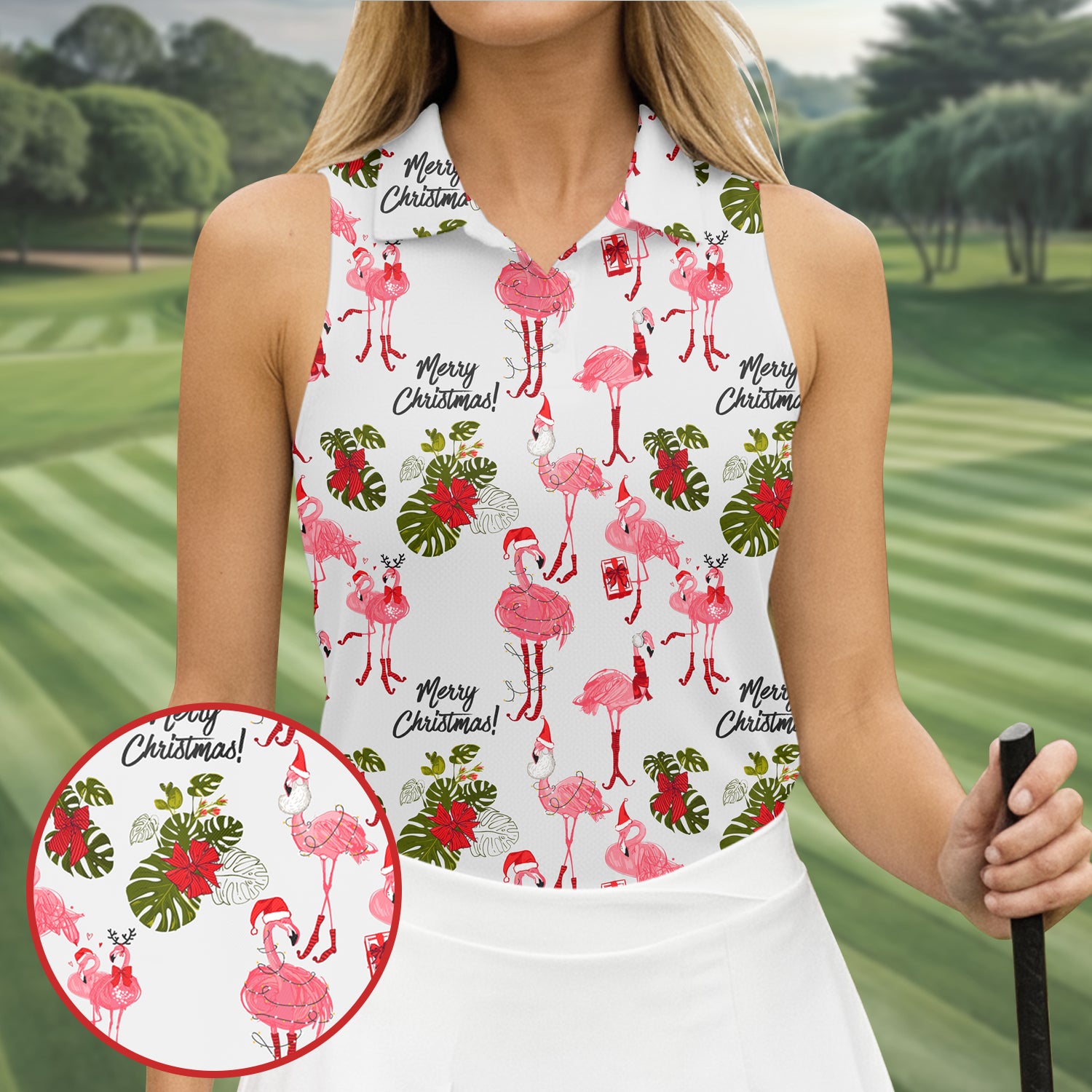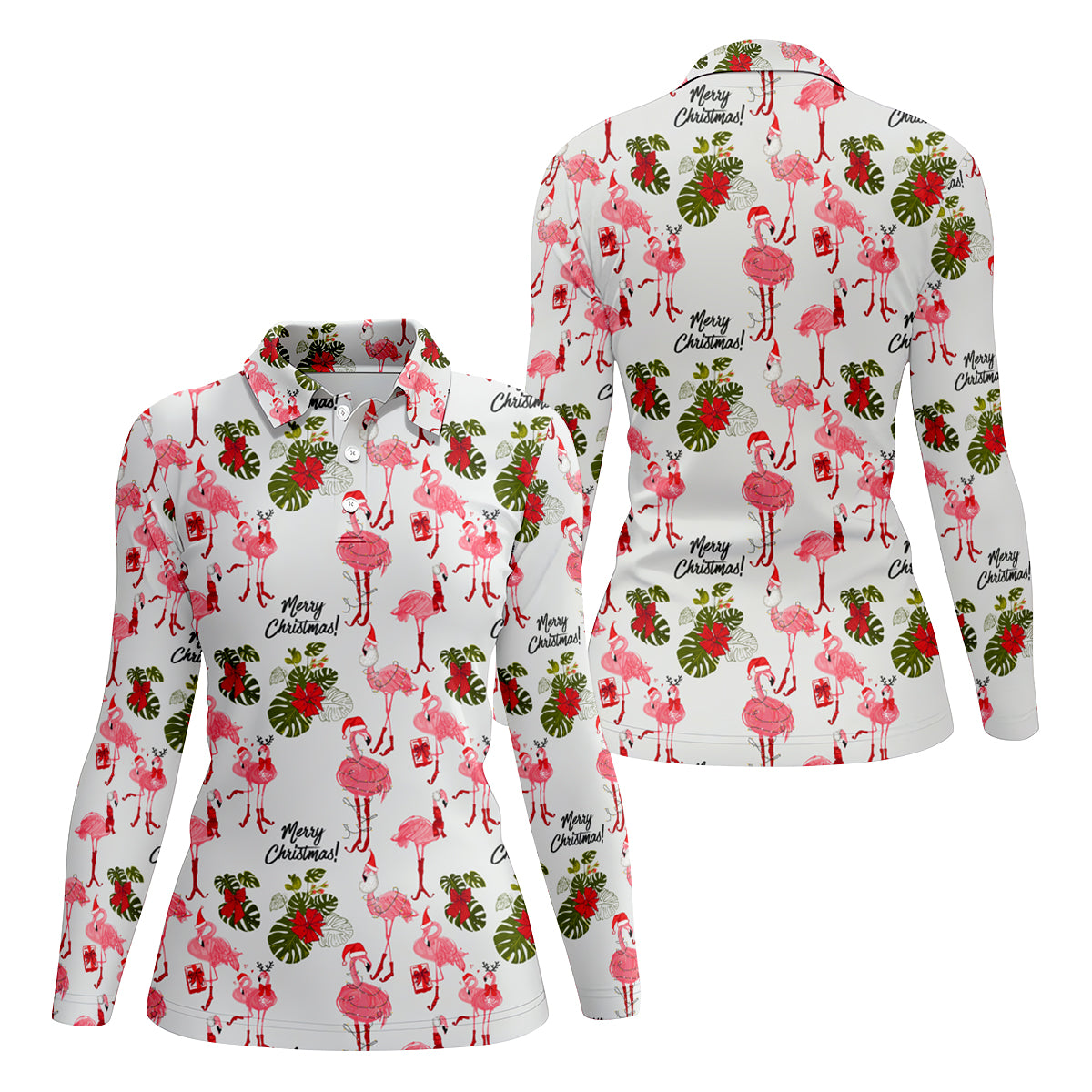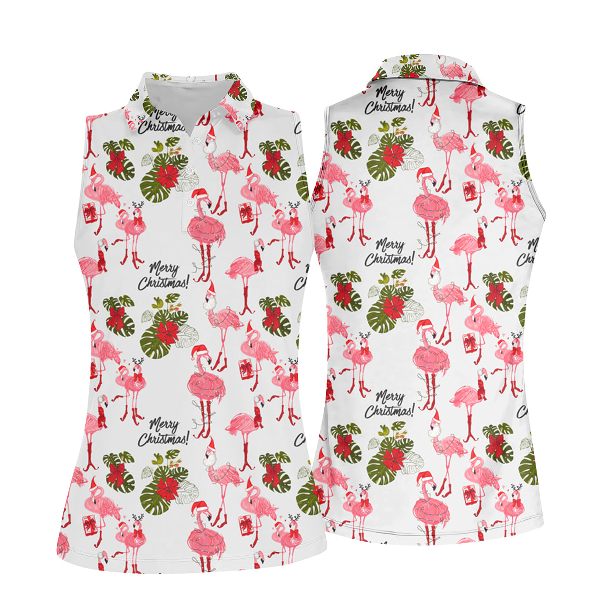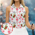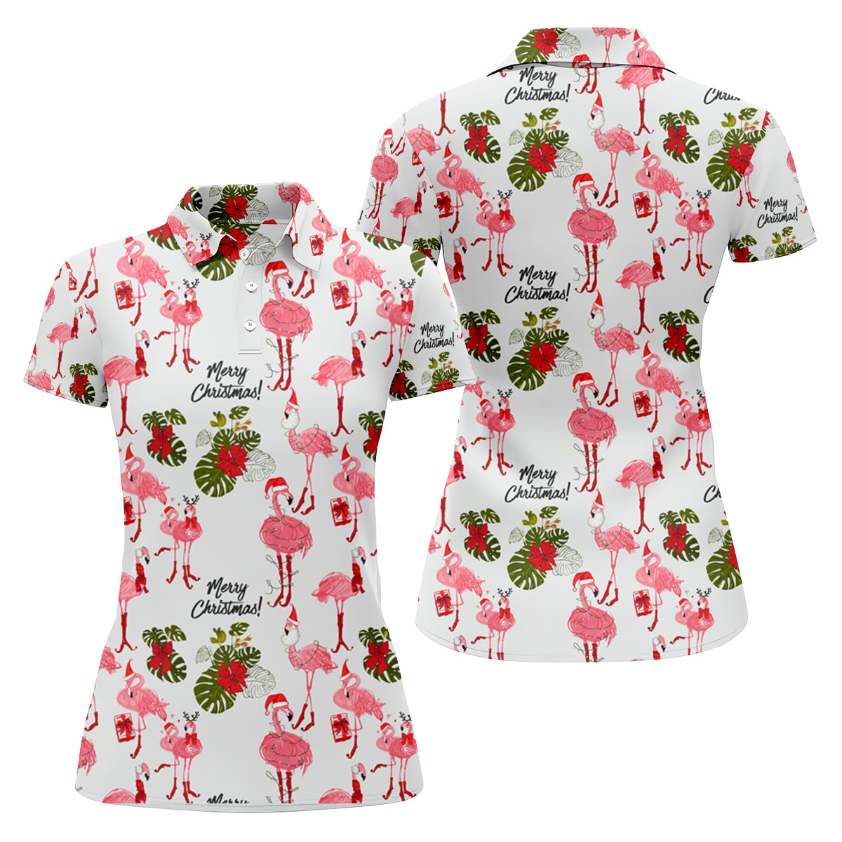 Flamingo Merry Christmas Golf Shirt For Women, Christmas Golf Shirt Polos, Ladies Golf Apparel