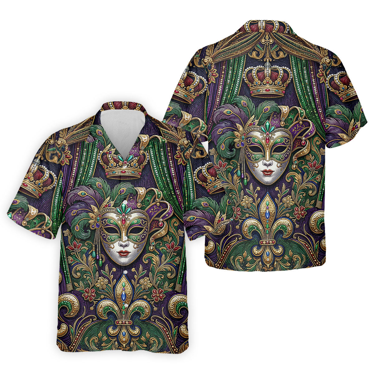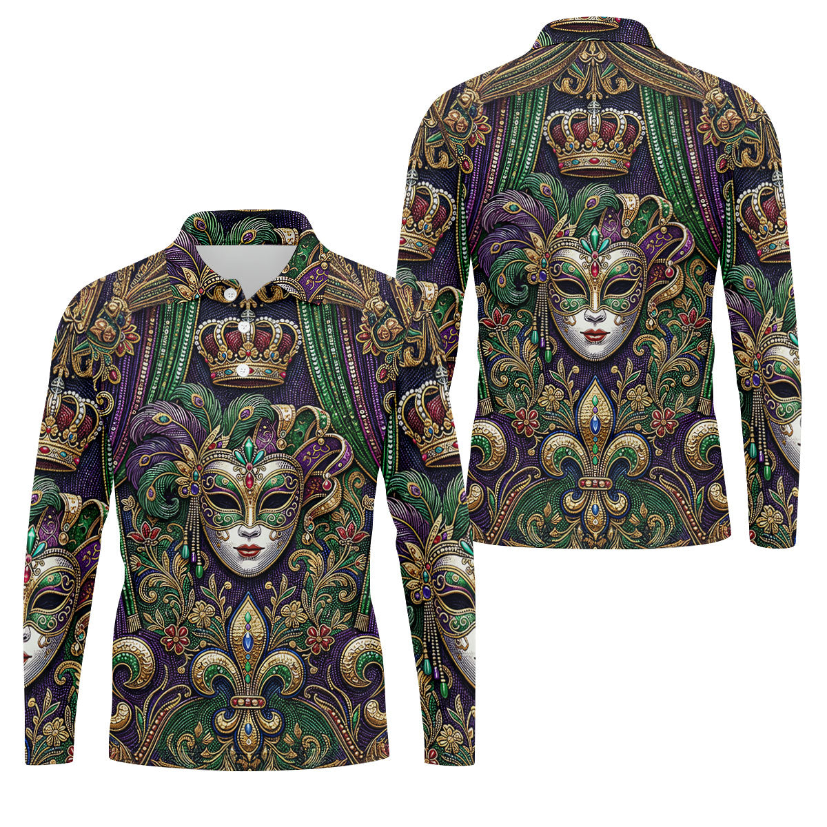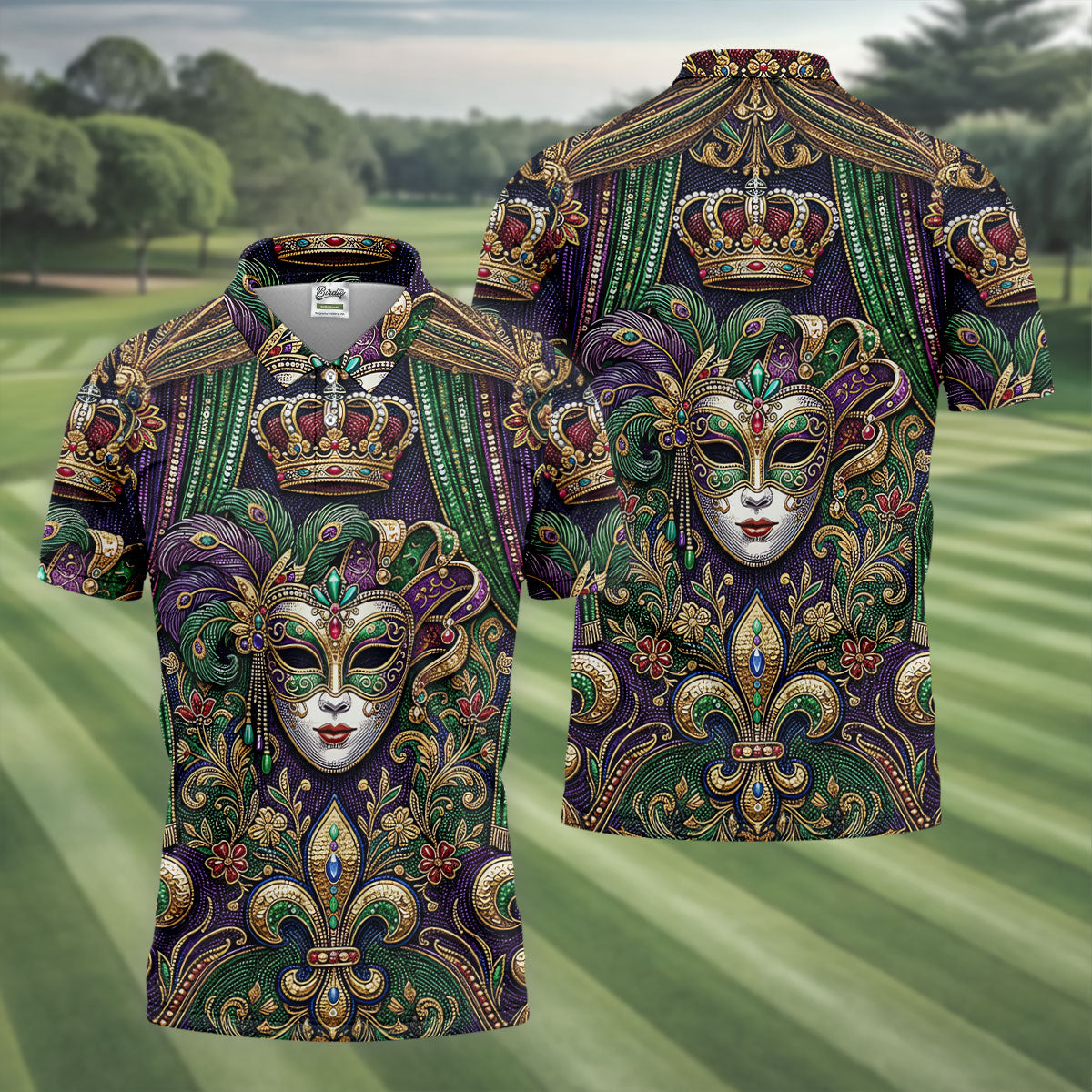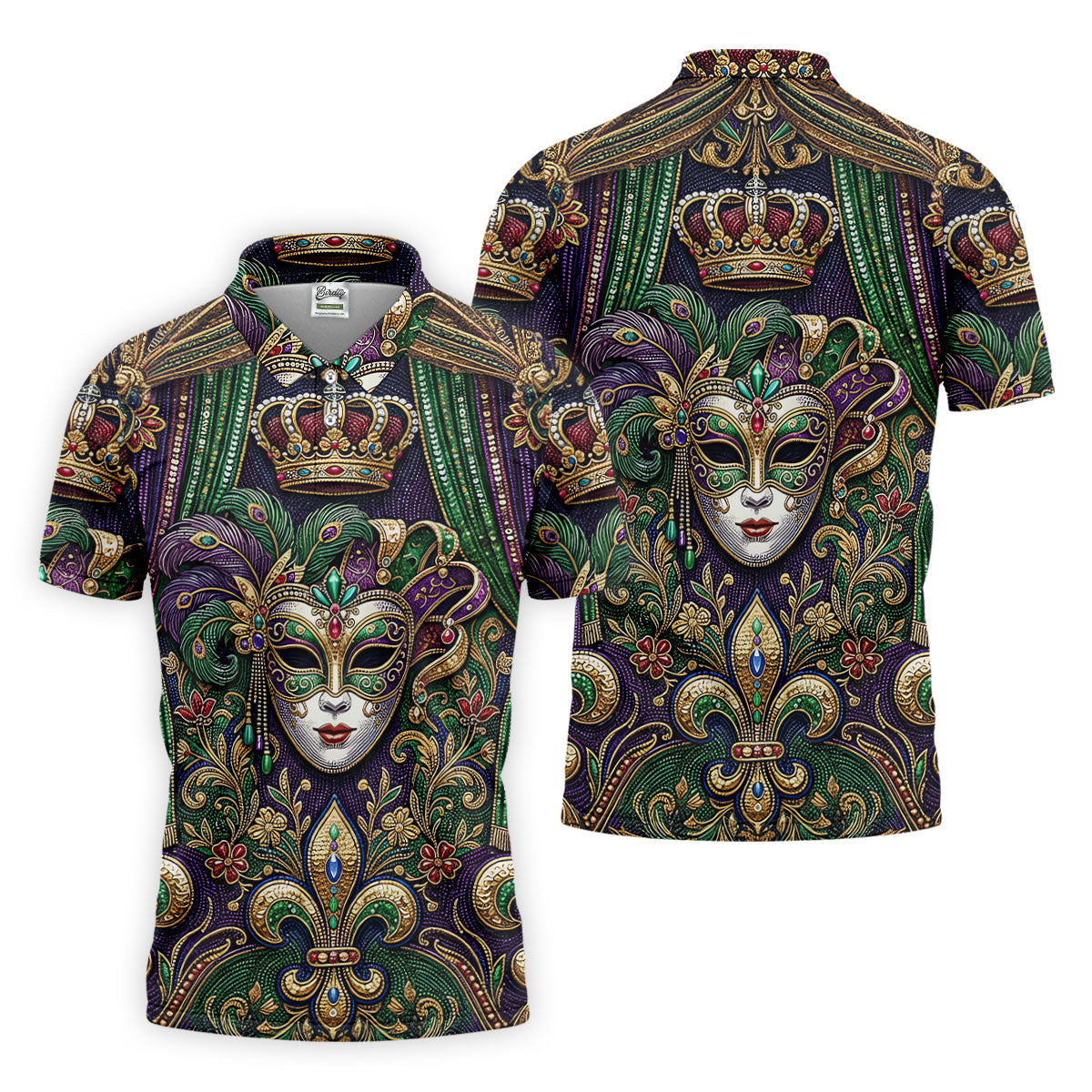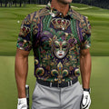 Fleur De Lis Floral Crown Mardi Gras Mask Print Men's Golf Polo Shirts, Golf Shirts For Men