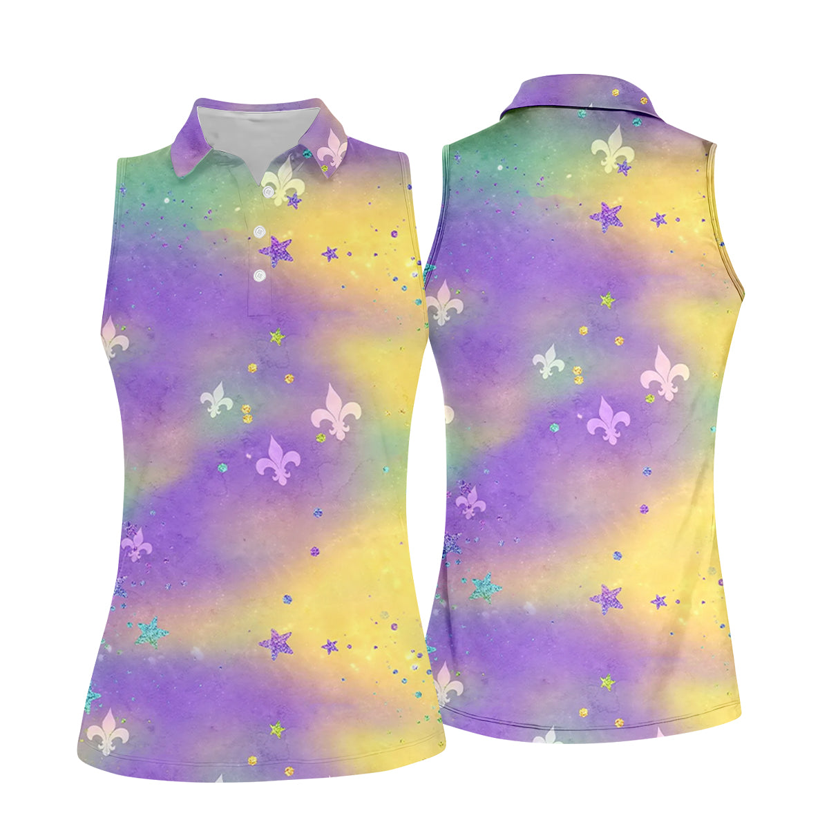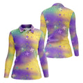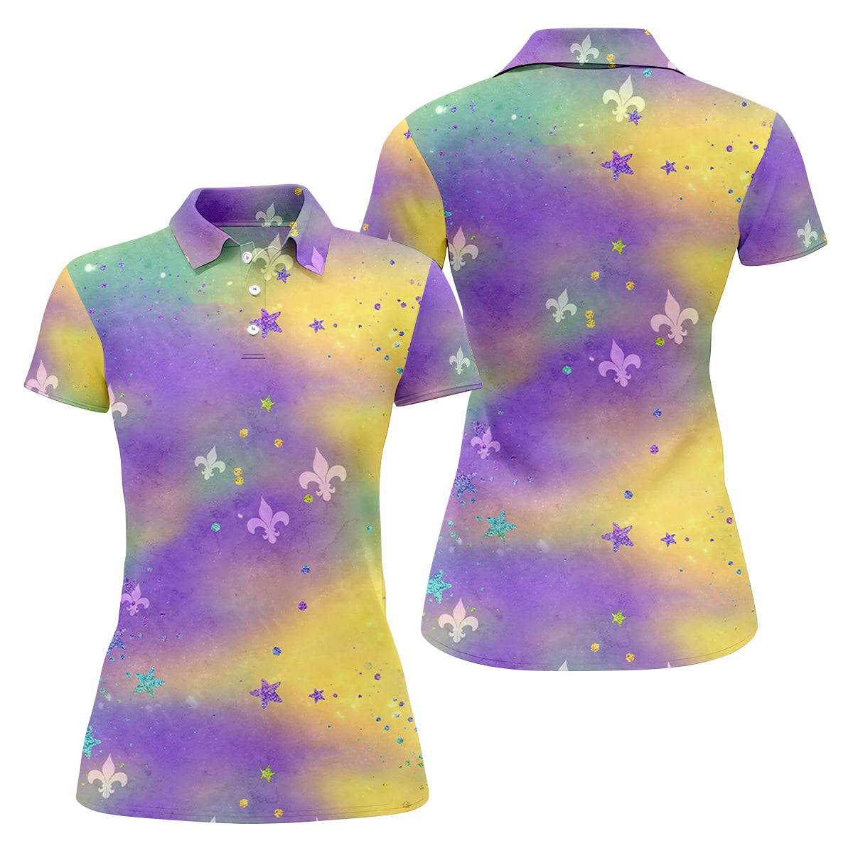 Fleur-De-Lis Symbol Green Gold Purple Blended Color Mardi Gras Golf Shirt, Women's Golf Shirts, Ladies Golf Polos