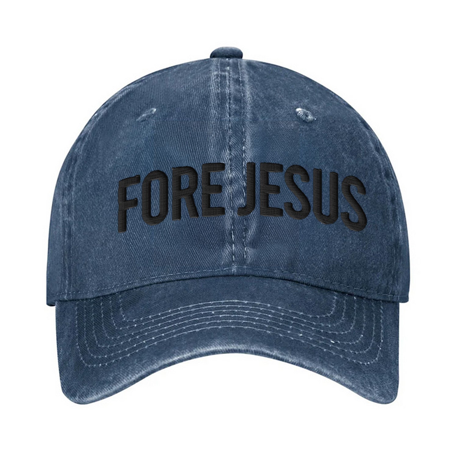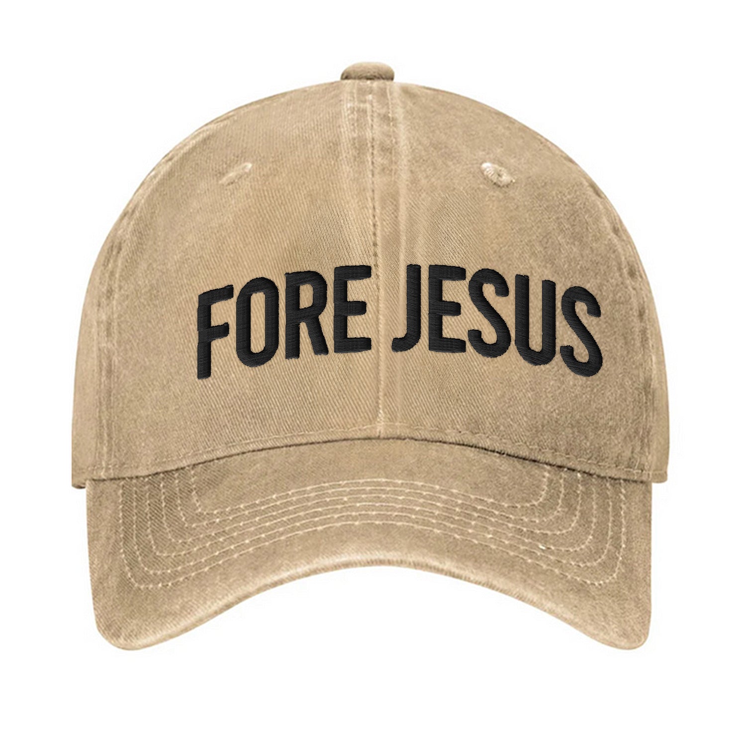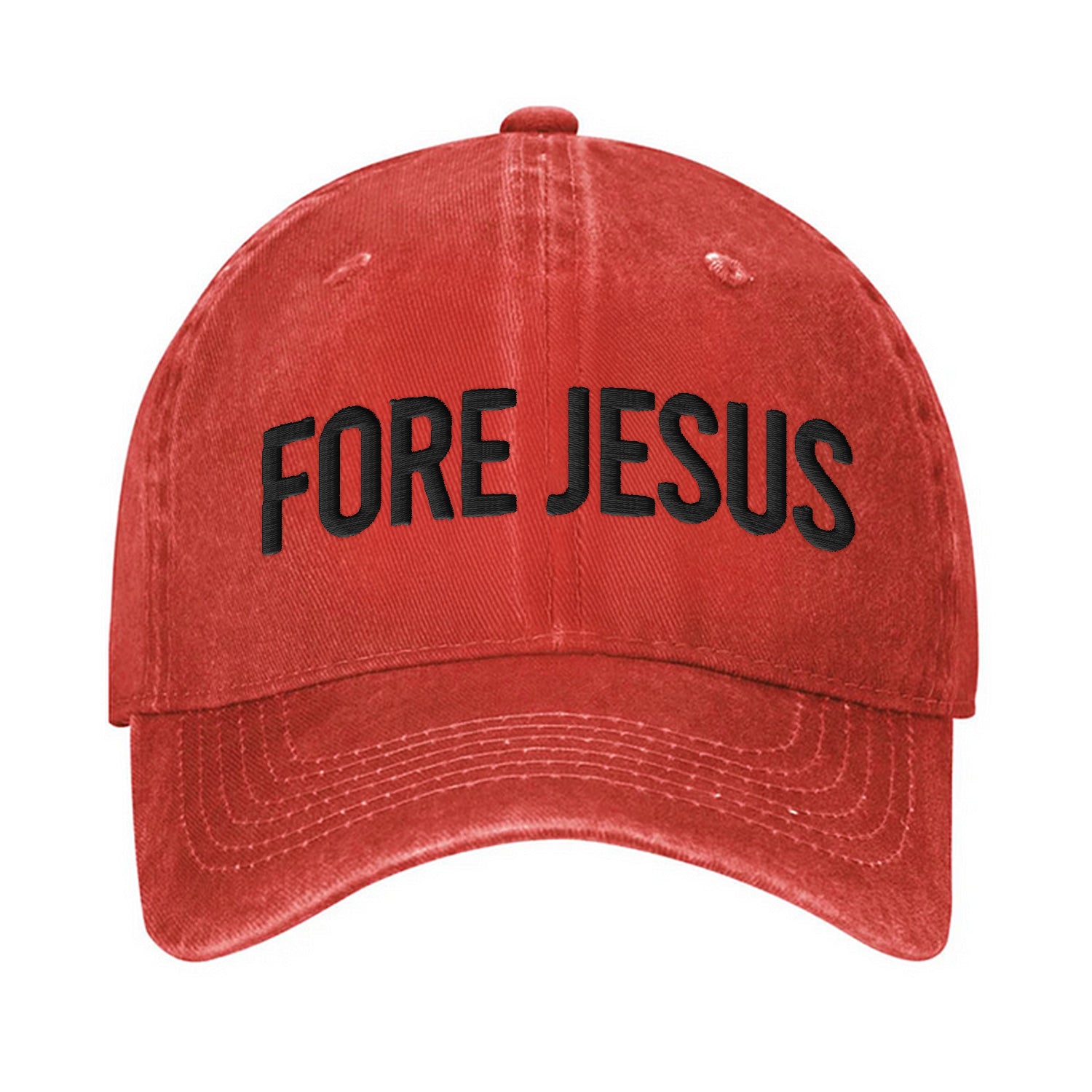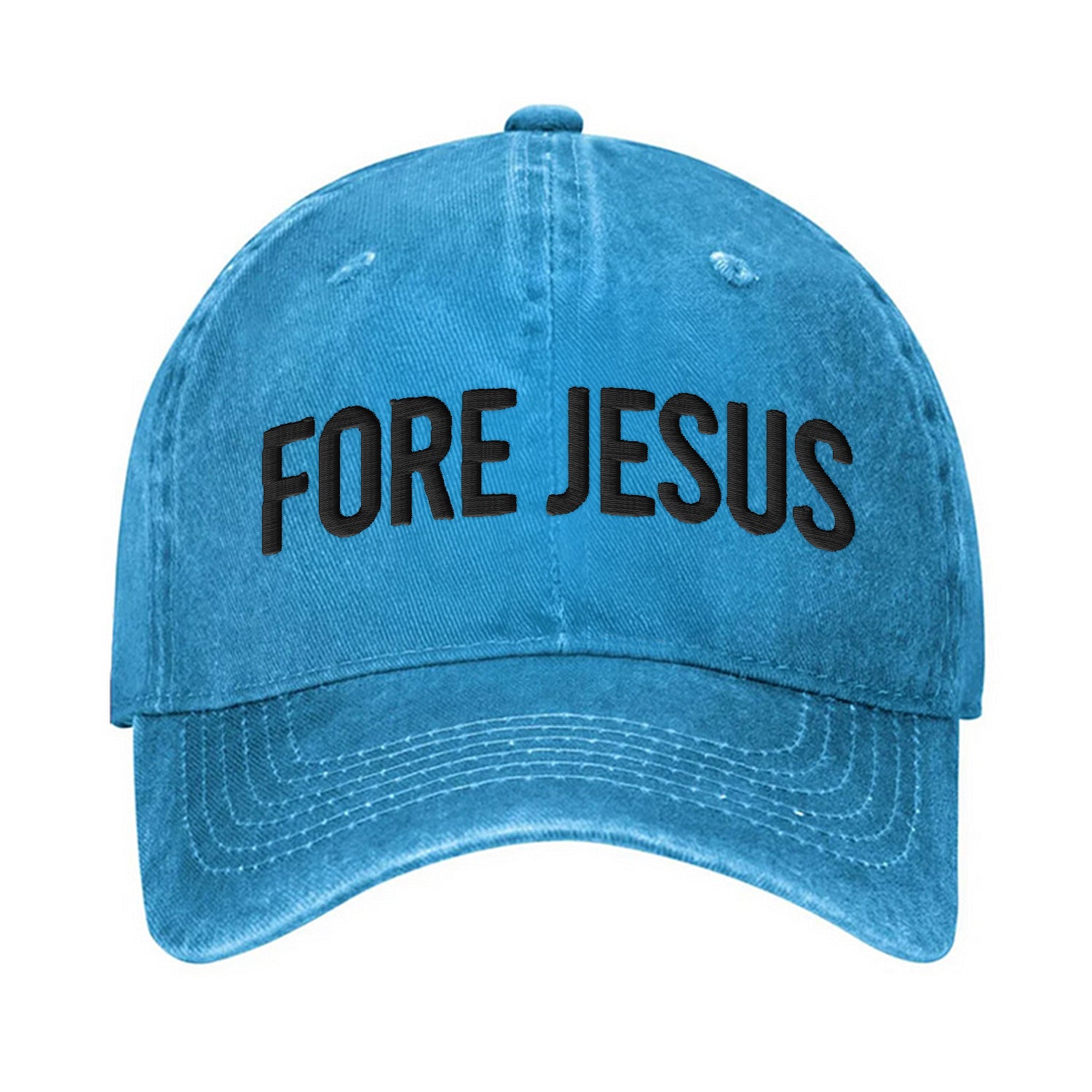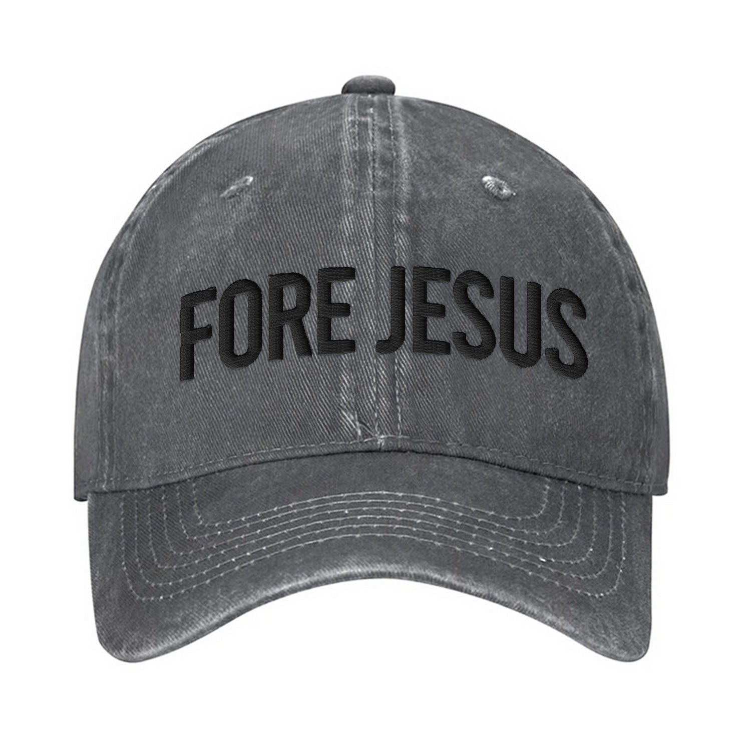Fore Jesus Black Embroidered Baseball Cap, Funny Dad Hat, Christmas Golf Gift