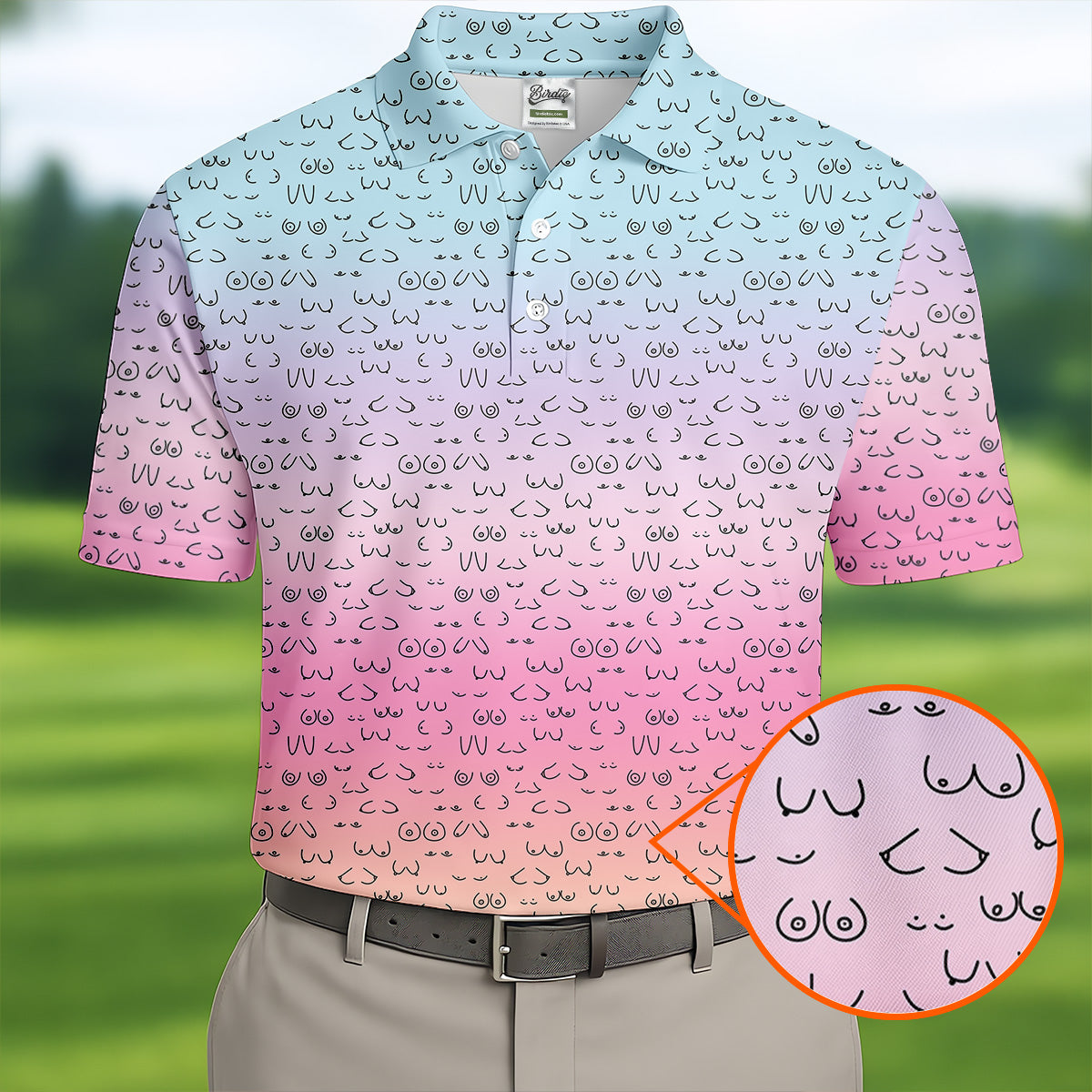 Funny Adult Humor Ombre Golf Shirt, Fun Men's Golf Polos, Polo Shirts For Men, Golf Gift For Him