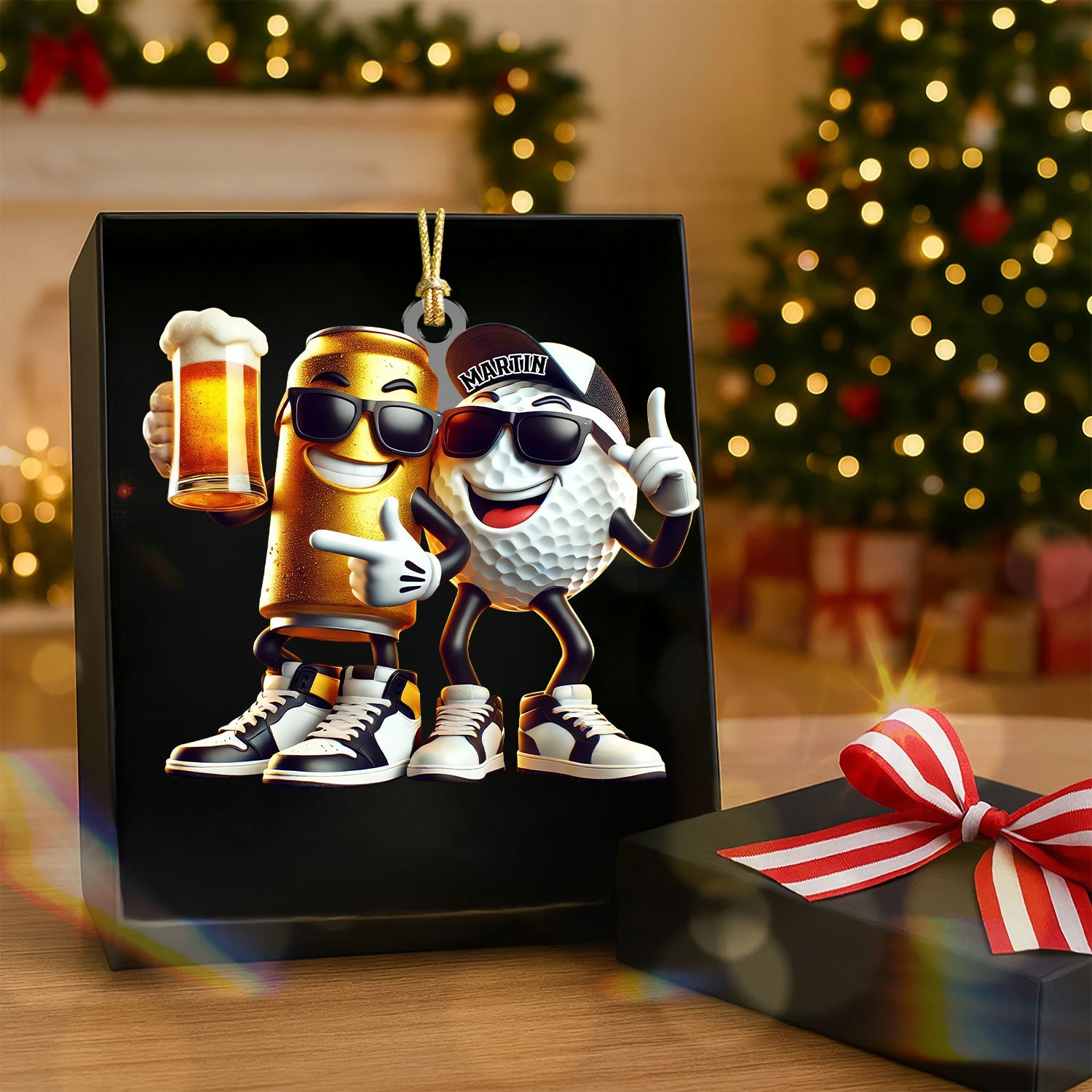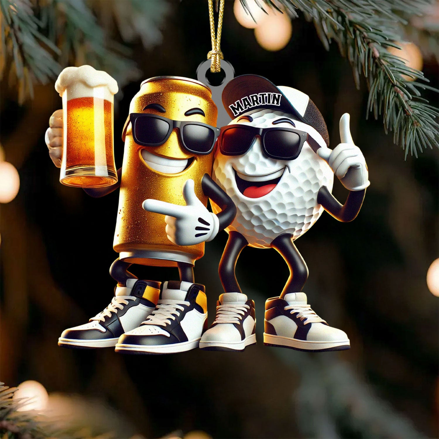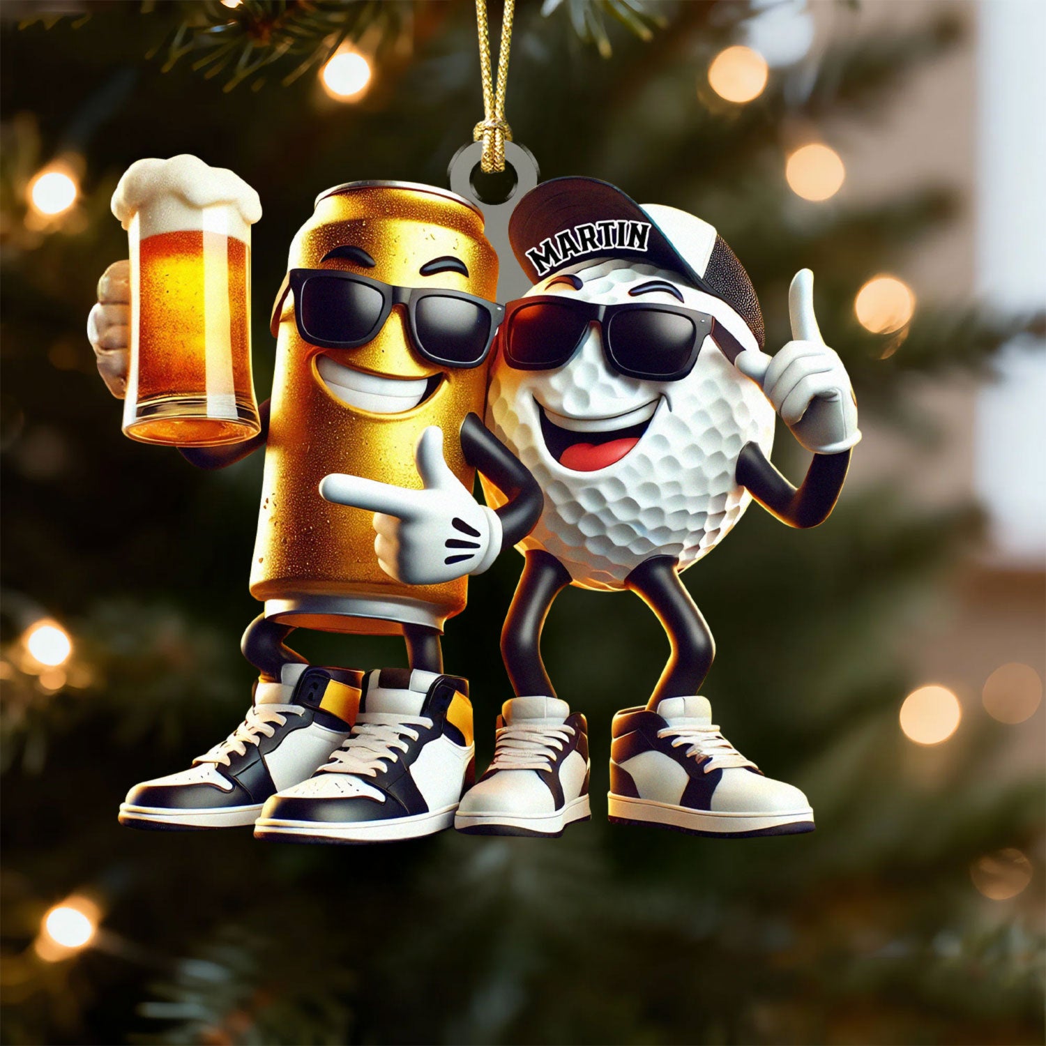 Funny Beer Golf Ball Ornament, Acrylic Ornament, Golf Xmas Ornaments, Christmas Golf Gift