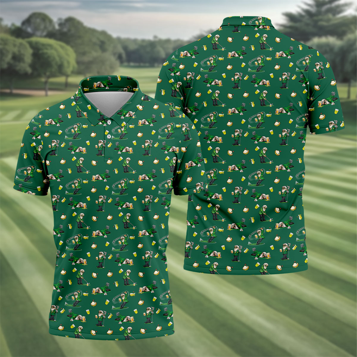 Funny Beer Sandwich Golf Course Green Golf Shirt, Golf Shirts For Men, Polo Shirts For Men