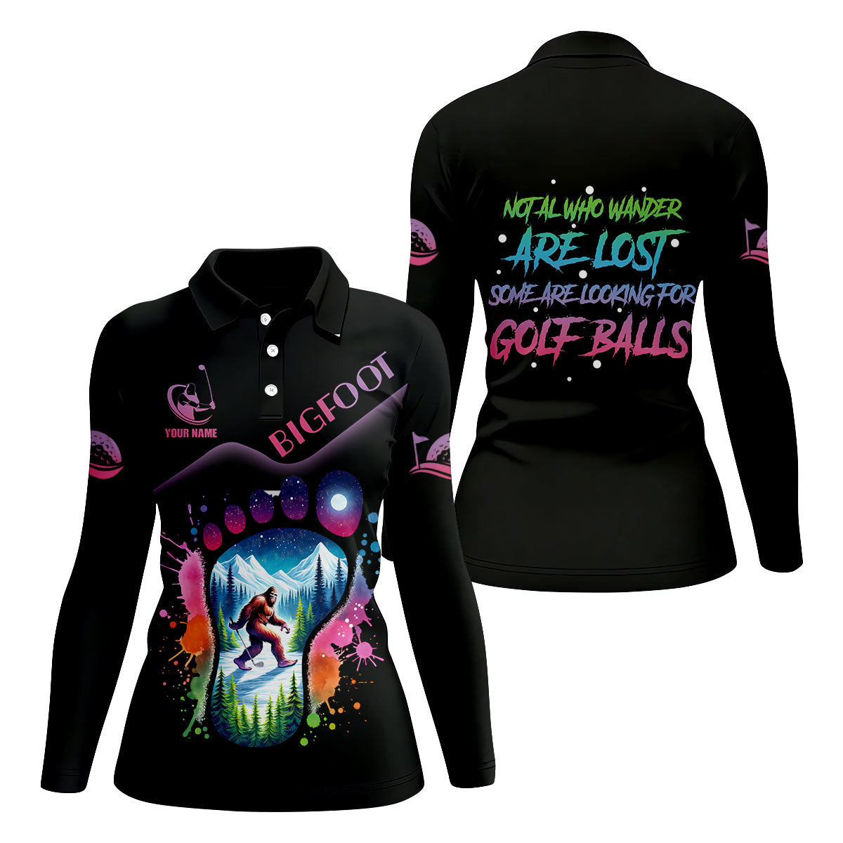 Funny Bigfoot Custom Womens Golf Polo Shirt, Ladies Golf Shirts, Golfing Apparel, Women Golf Gifts