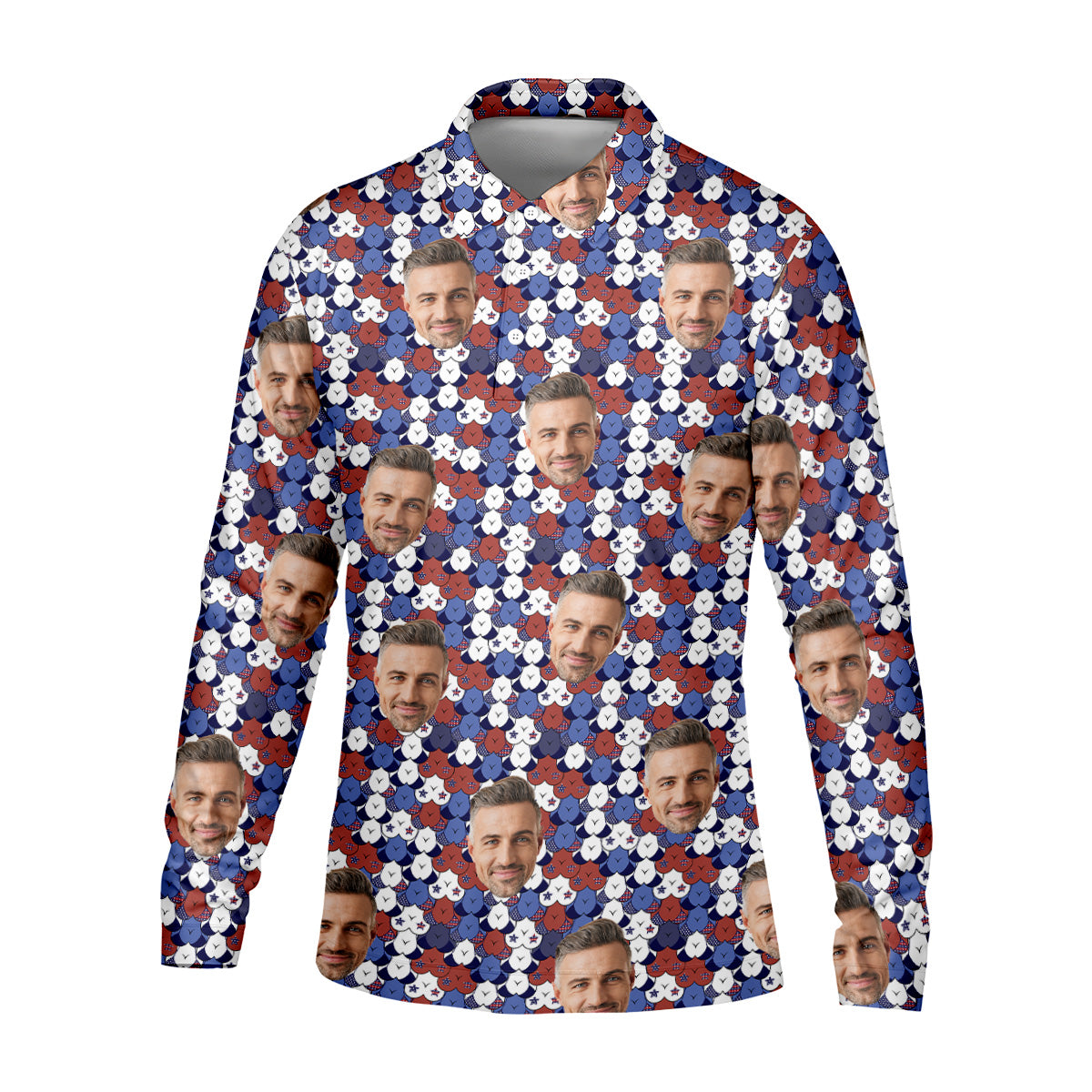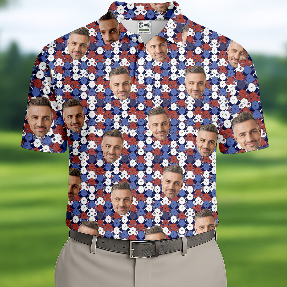 Fun Men's Golf Polos, Custom Face Golf Shirt, Funny American Golf Shirt, Golf Gift For Him