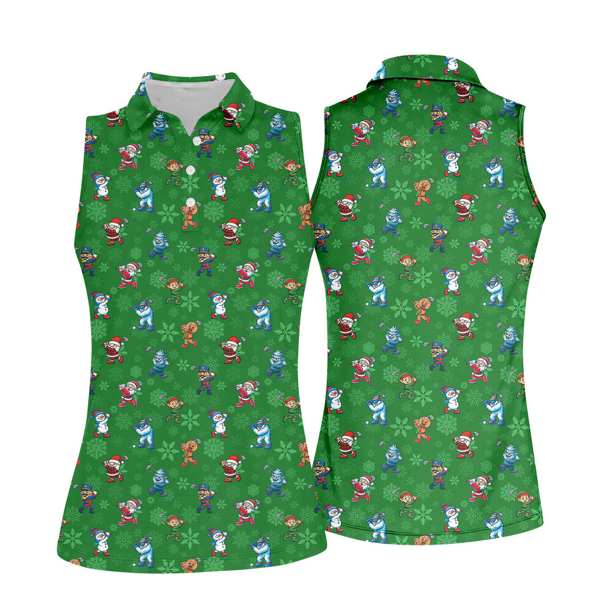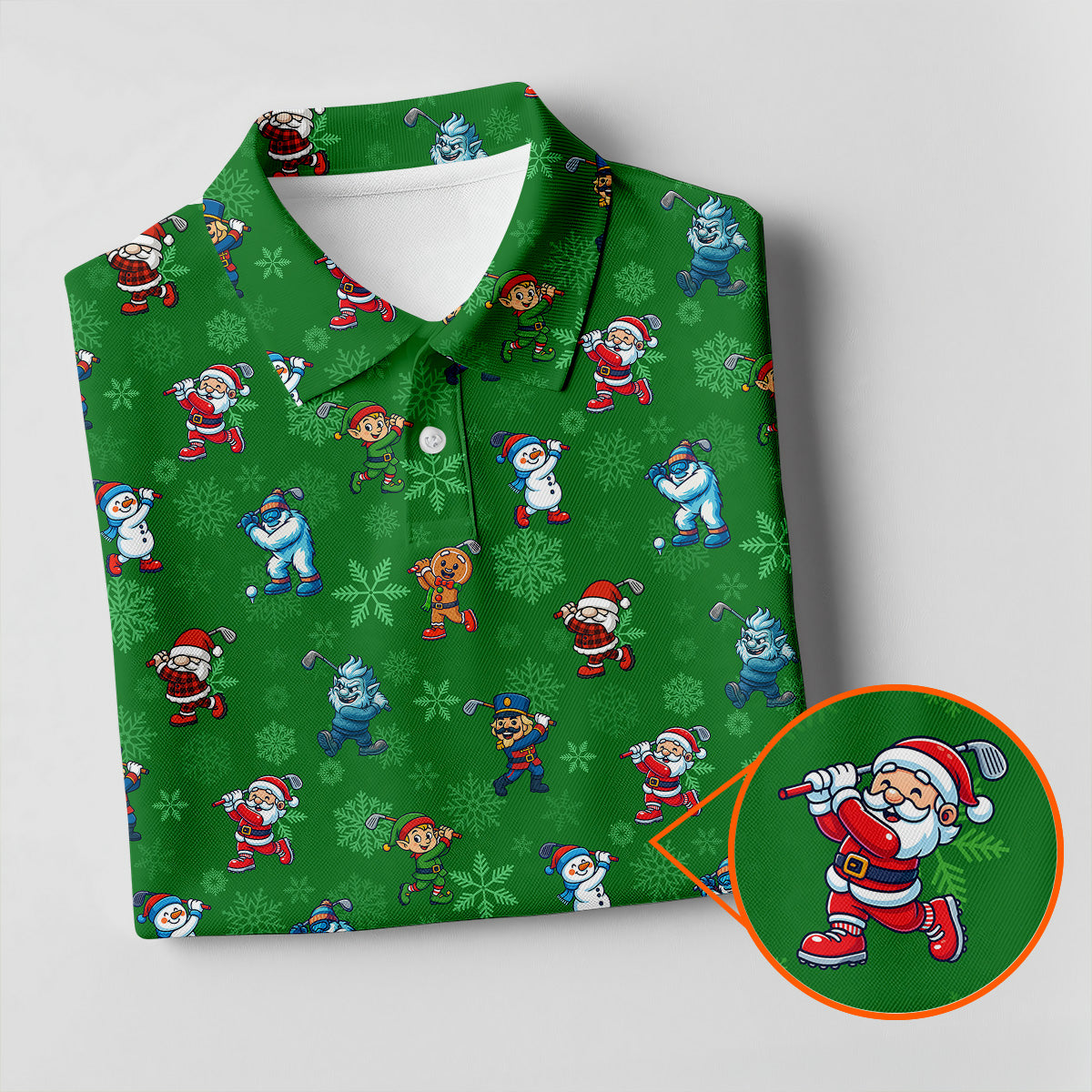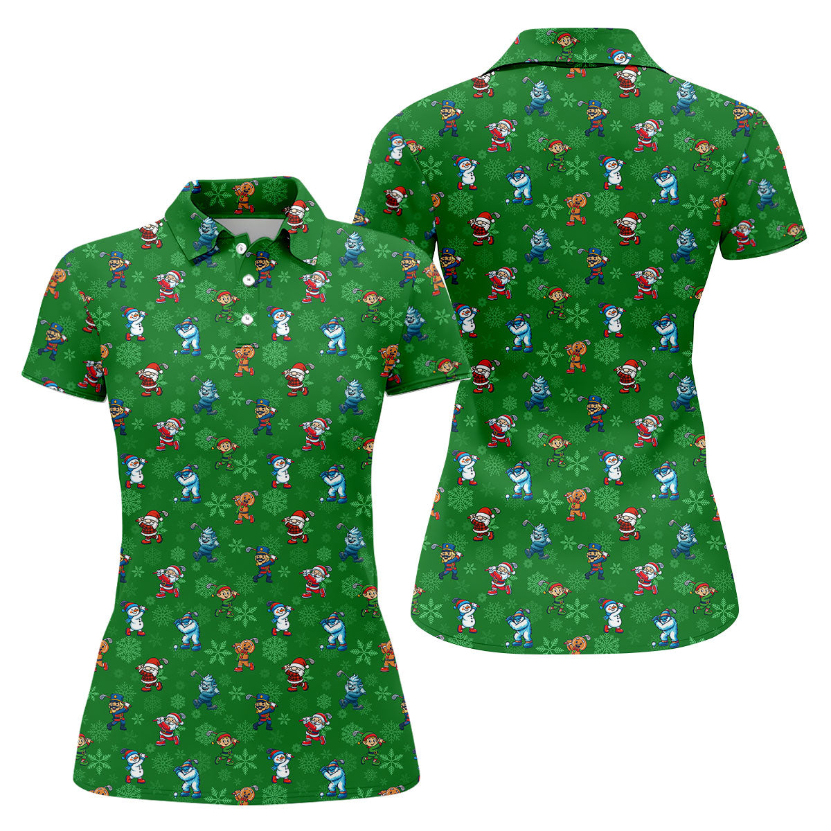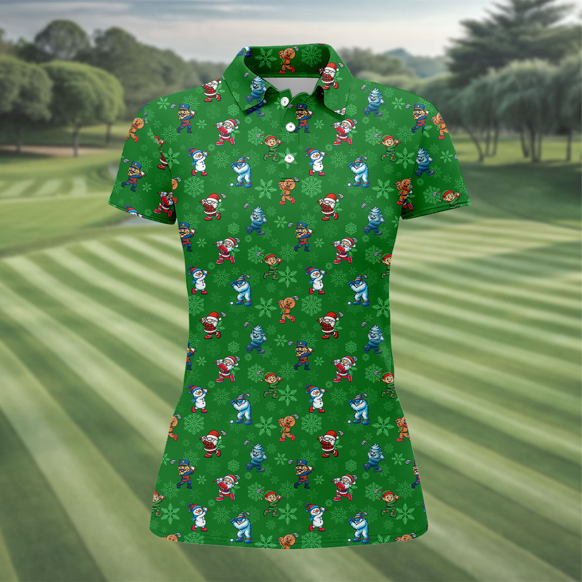 Funny Christmas Characters Golf Pose Green Golf Shirt, Christmas Golf Shirt, Ladies Golf Shirts, Women's Polo Shirt