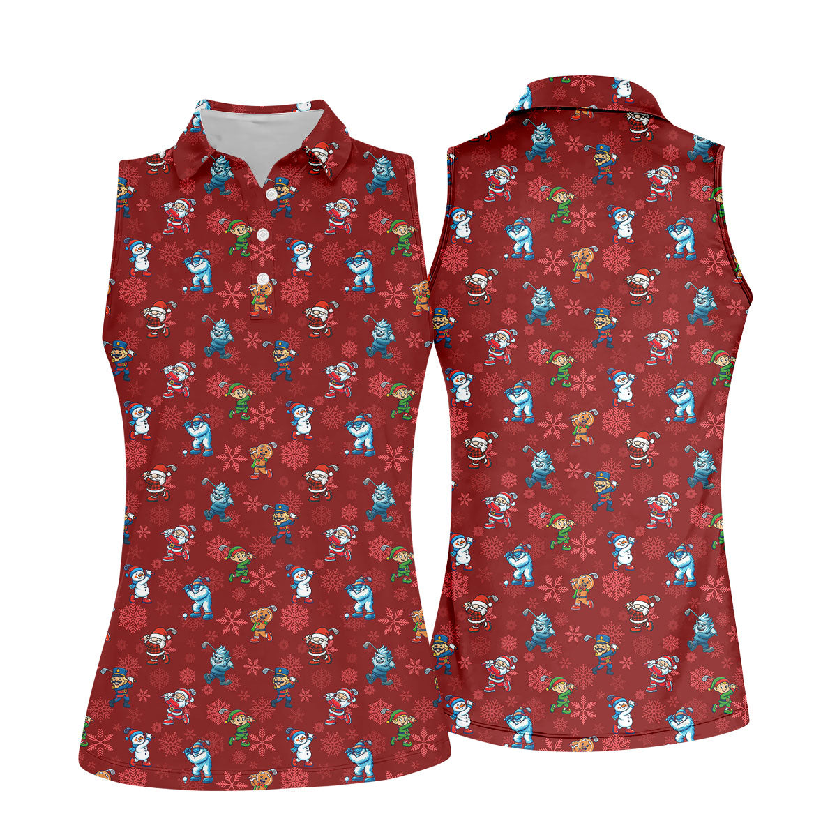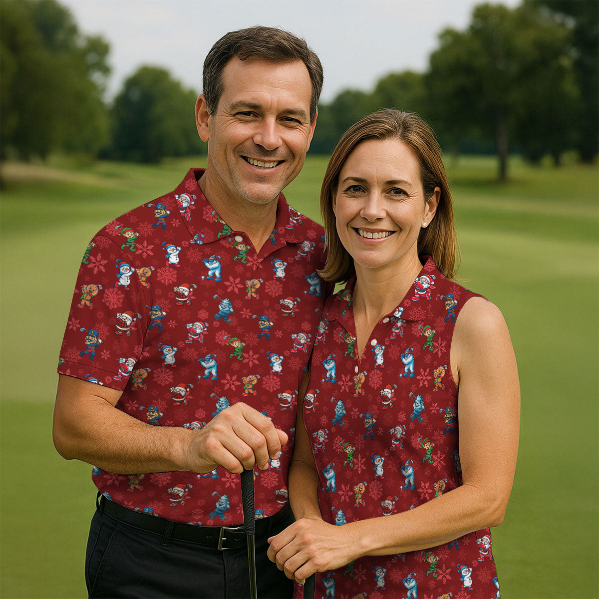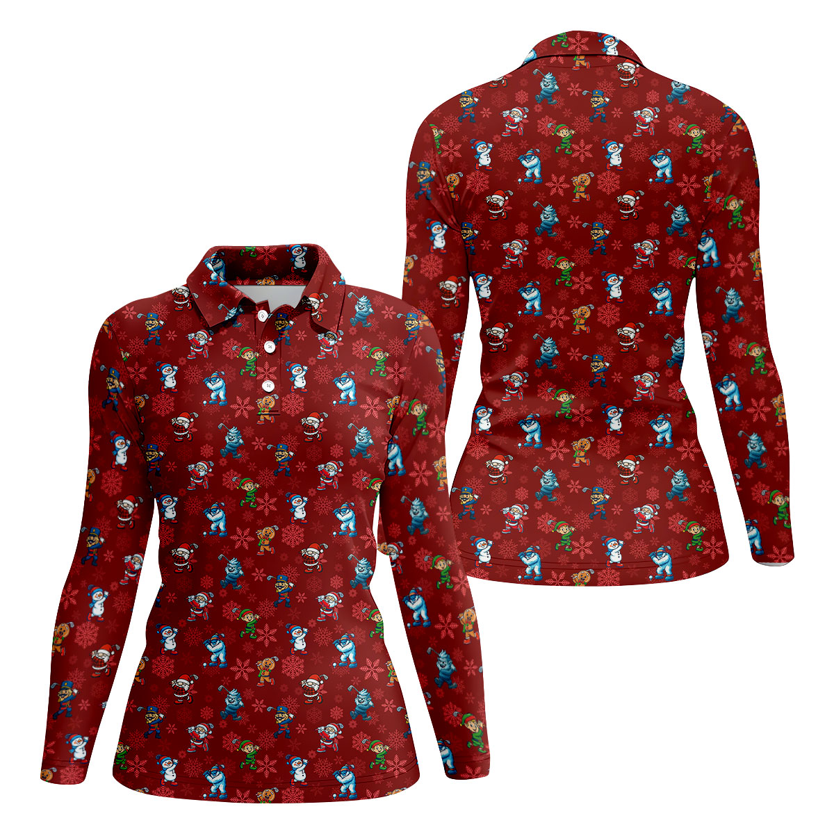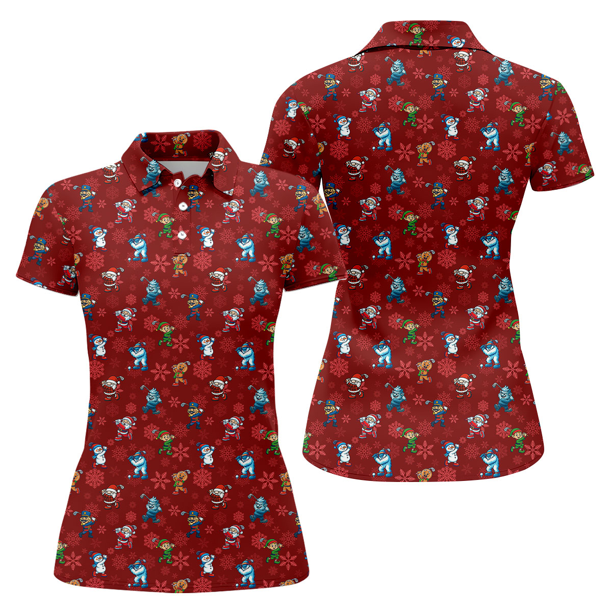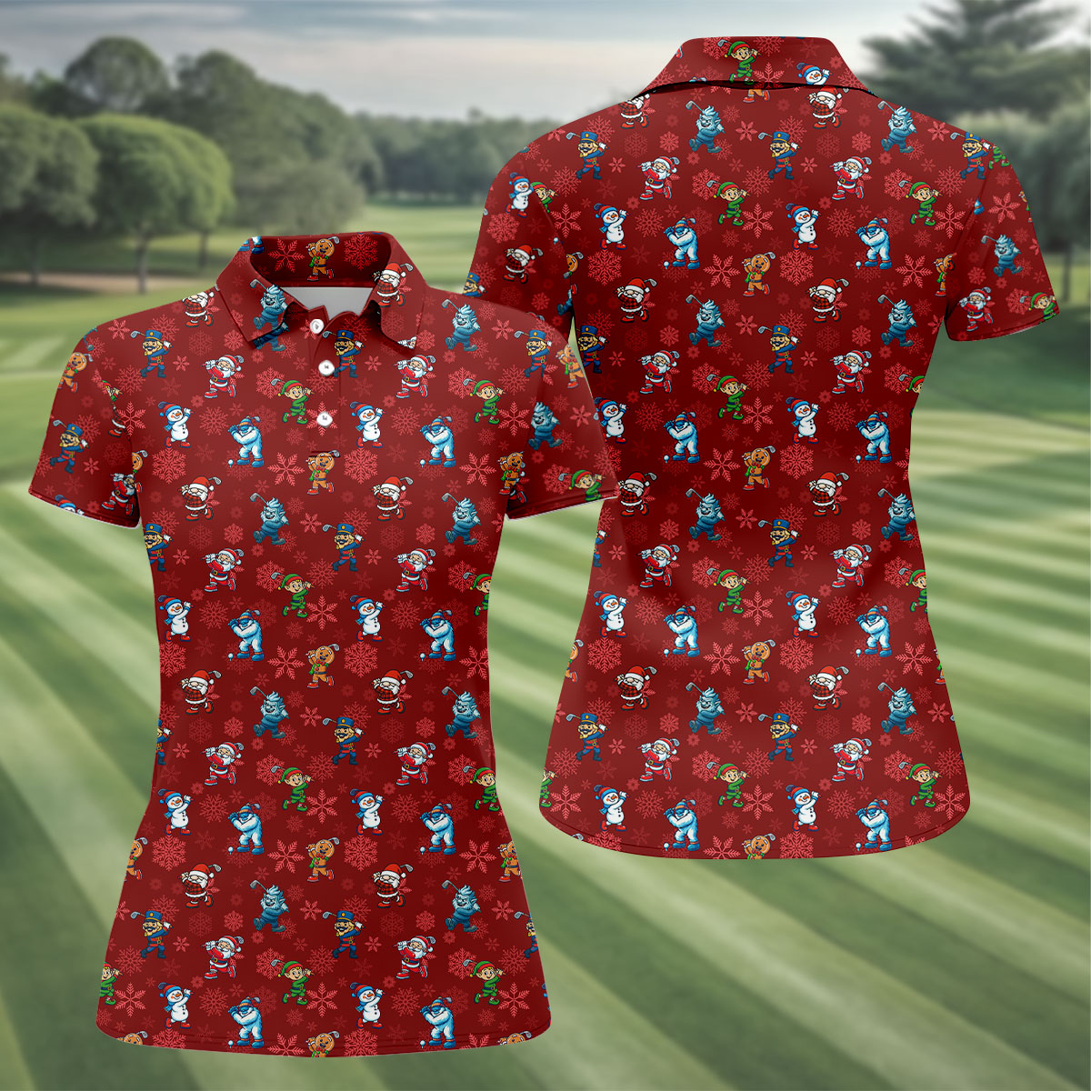 Funny Christmas Characters Golf Pose Red Golf Shirt, Christmas Golf Shirt, Ladies Golf Shirts, Women's Polo Shirt