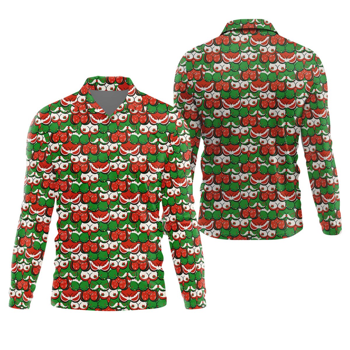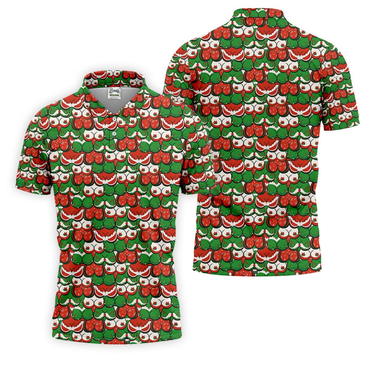 Funny Christmas Red And Green Men's Golf Polo Shirts, Christmas Golf Shirt, Cute Golf Outfit, Golf Gift For Men