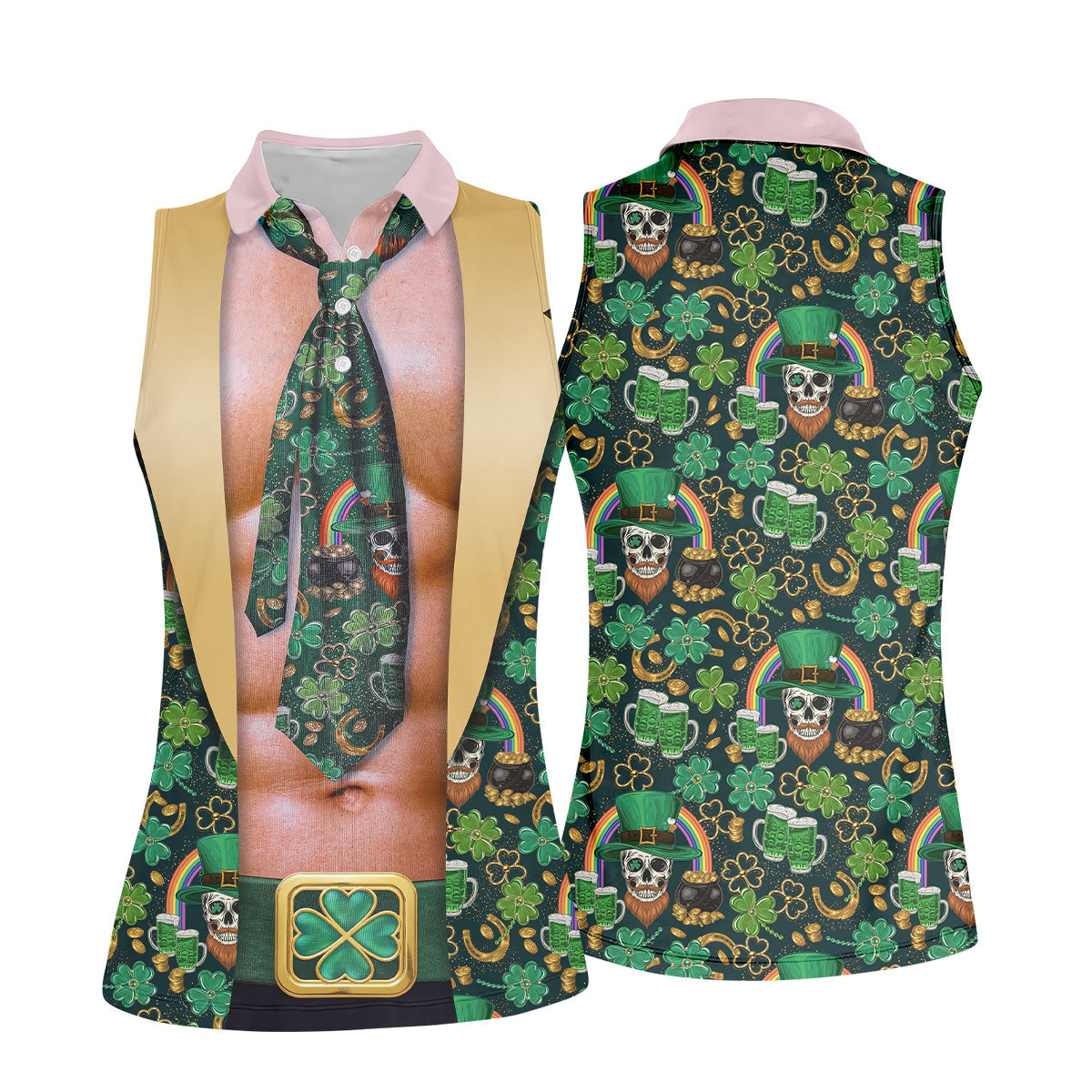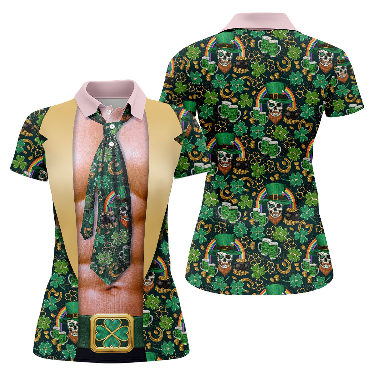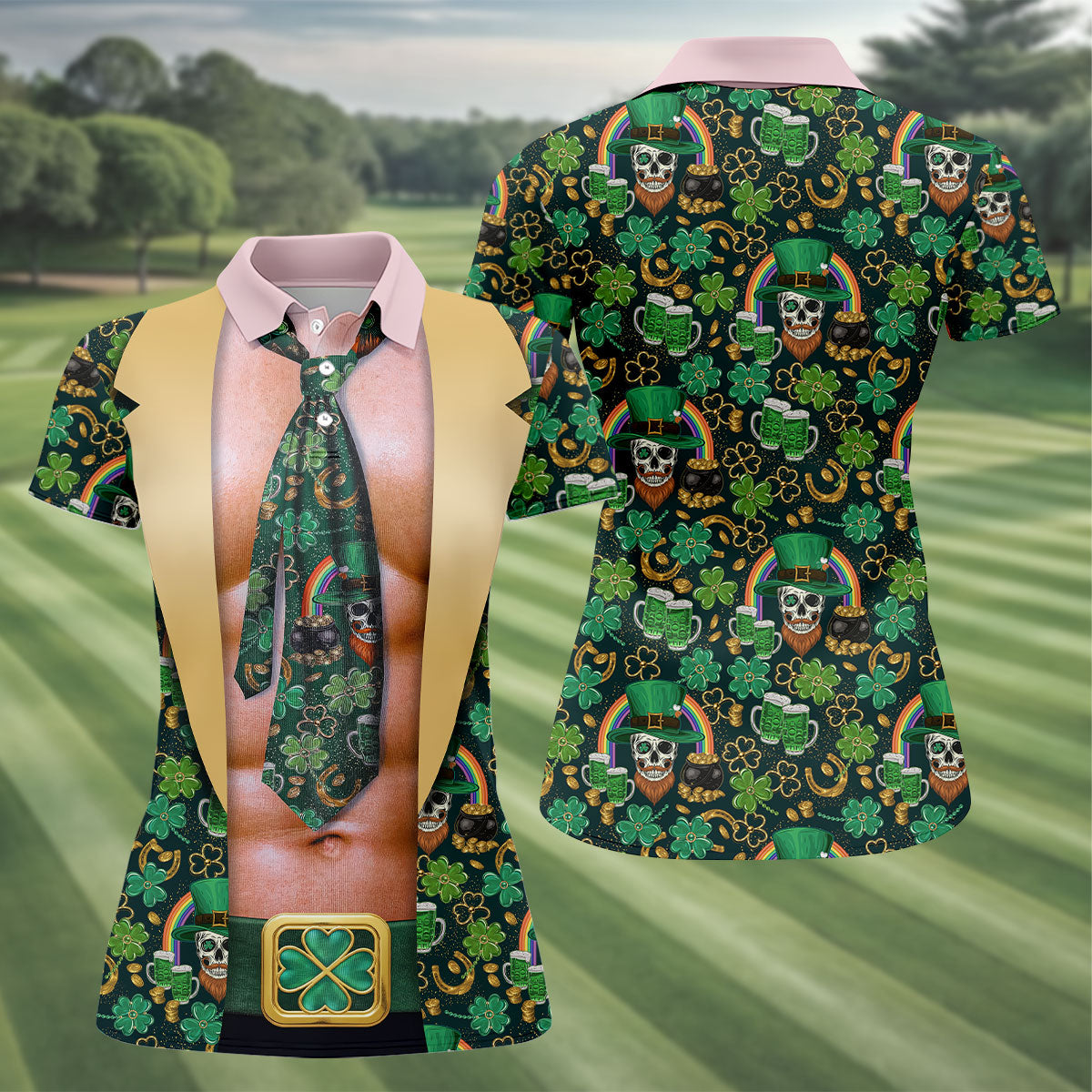 Funny Costume Shamrock St Patrick's Day Golf Shirt, Women's Golf Tops, Ladies Golf Shirts