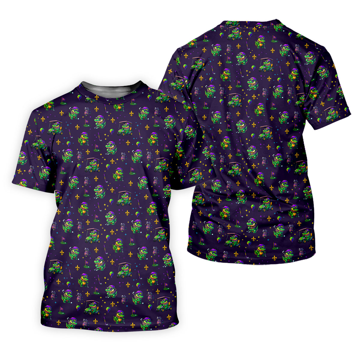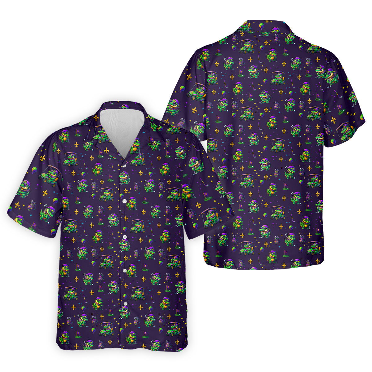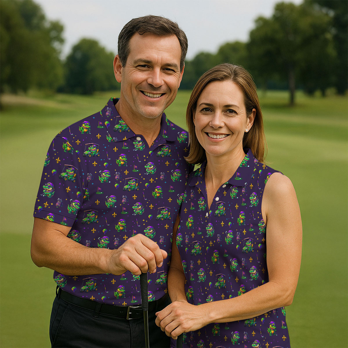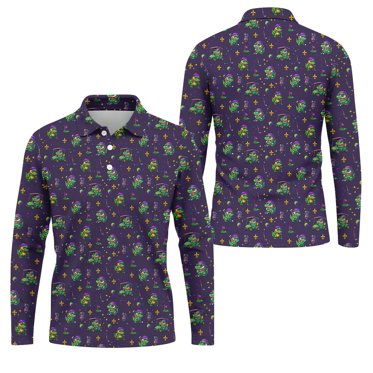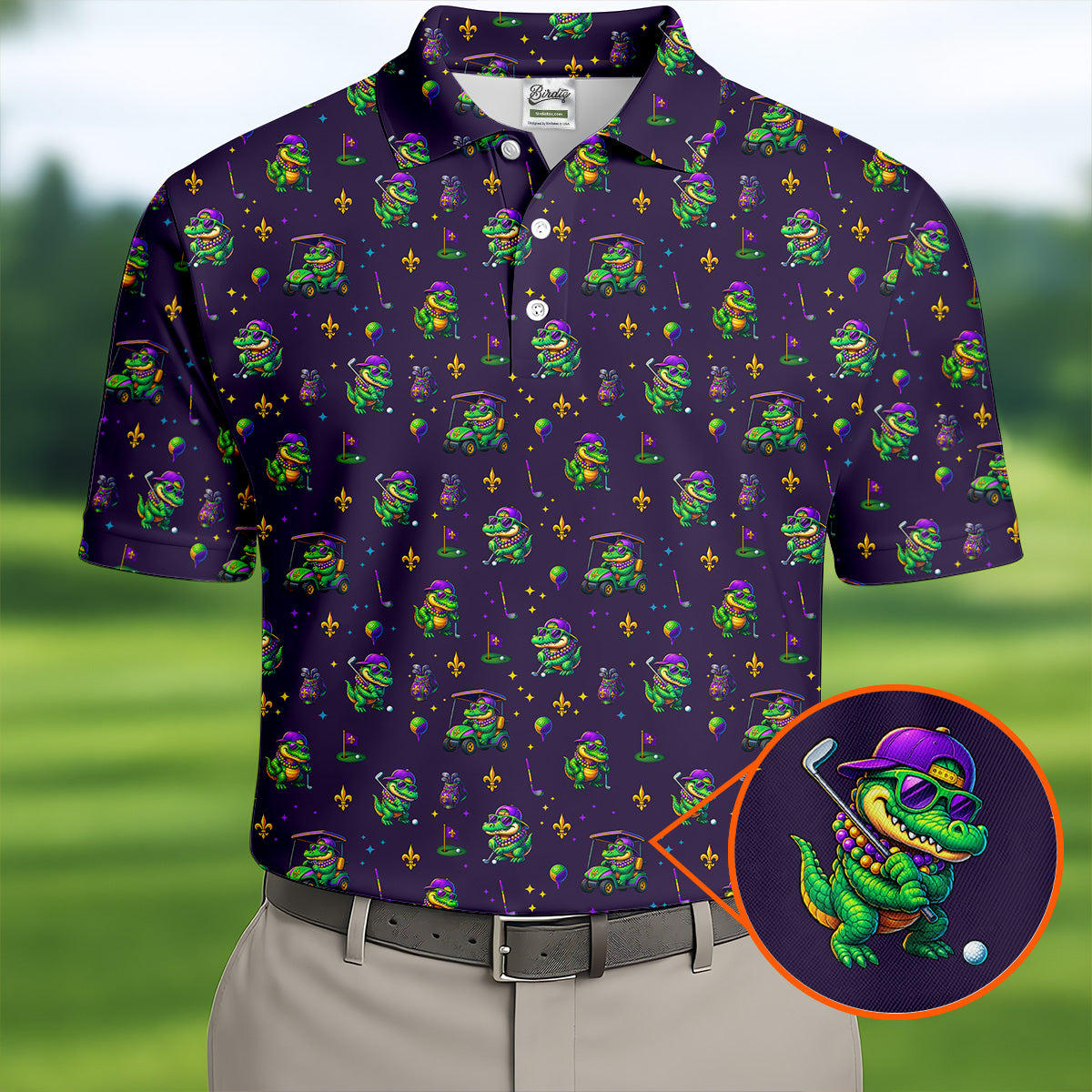Funny Crocodile Mardi Gras Golf Shirts, Purple Golf Shirt, Golf Gift For Men, Golf Shirts For Men