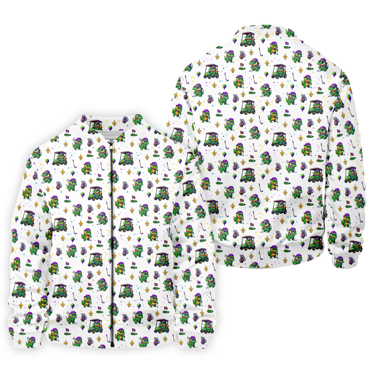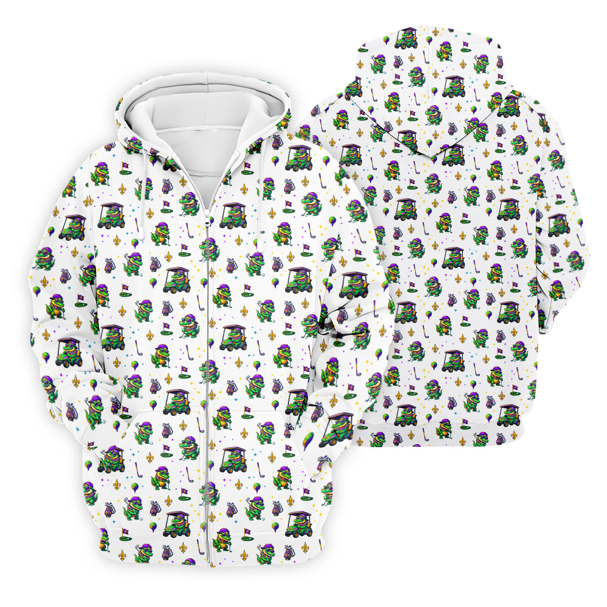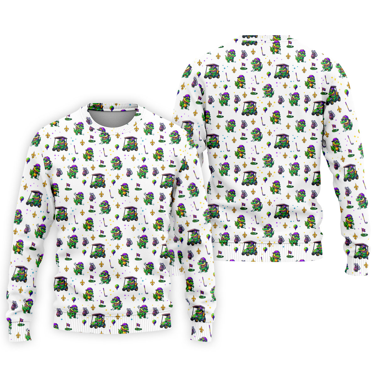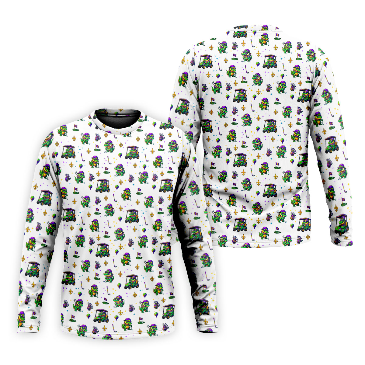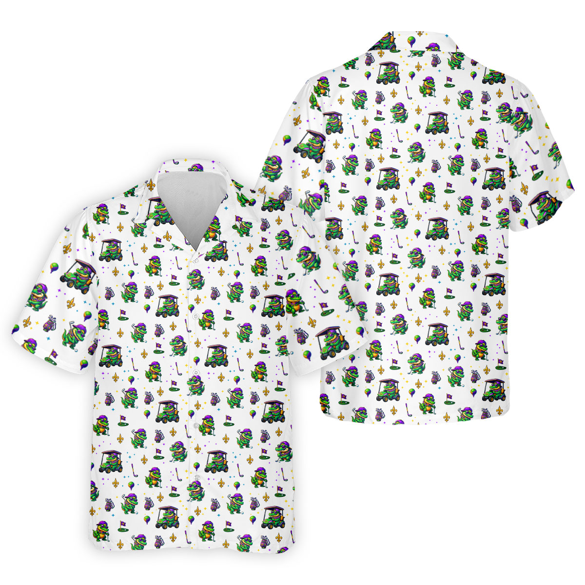 Funny Crocodile Golfing Mardi Gras Golf Shirts, White Golf Shirt, Golf Gift For Men, Golf Shirts For Men