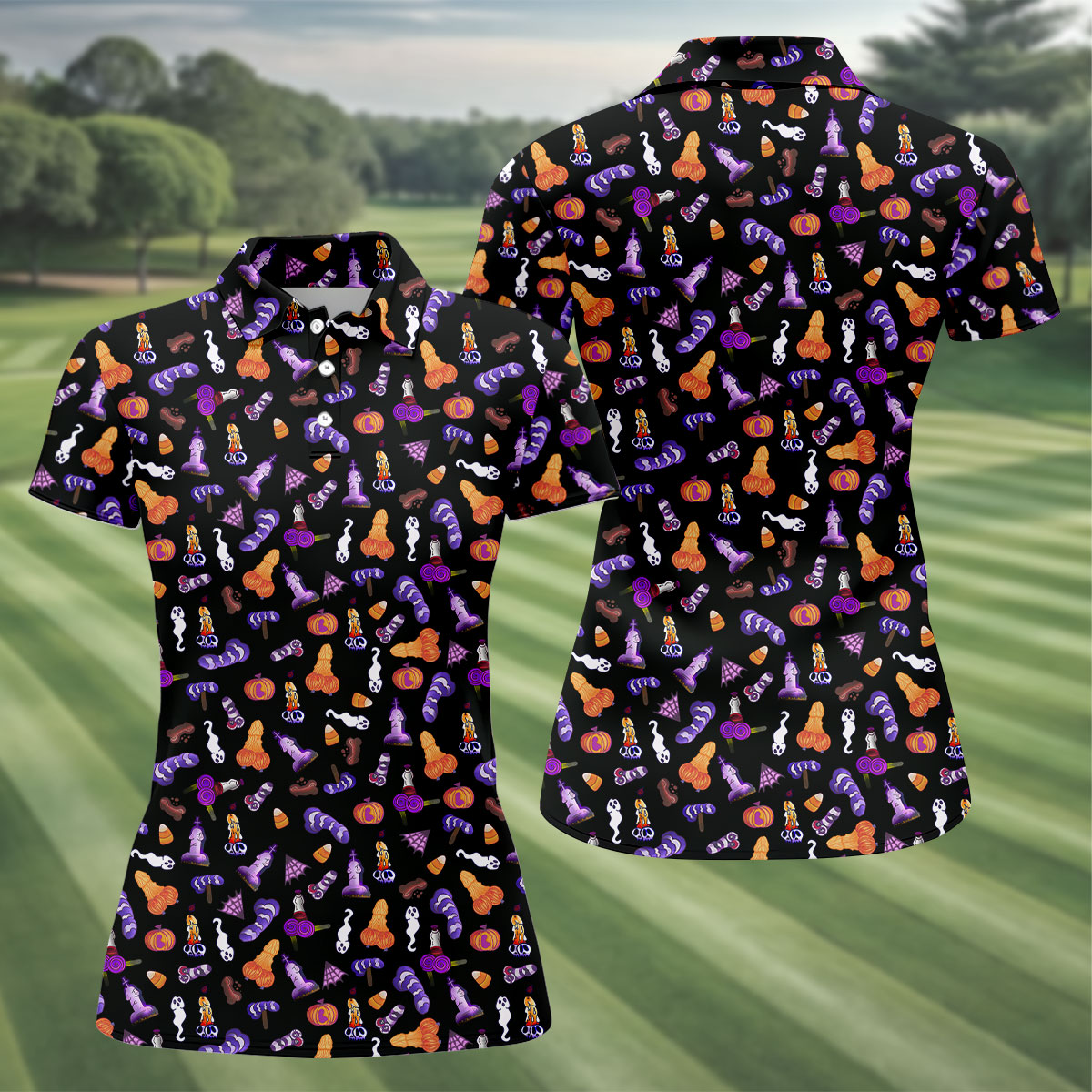 Funny Dirty Black And Purple Halloween Golf Shirt, Funny Golf Shirts Women, Ladies Golf Shirts