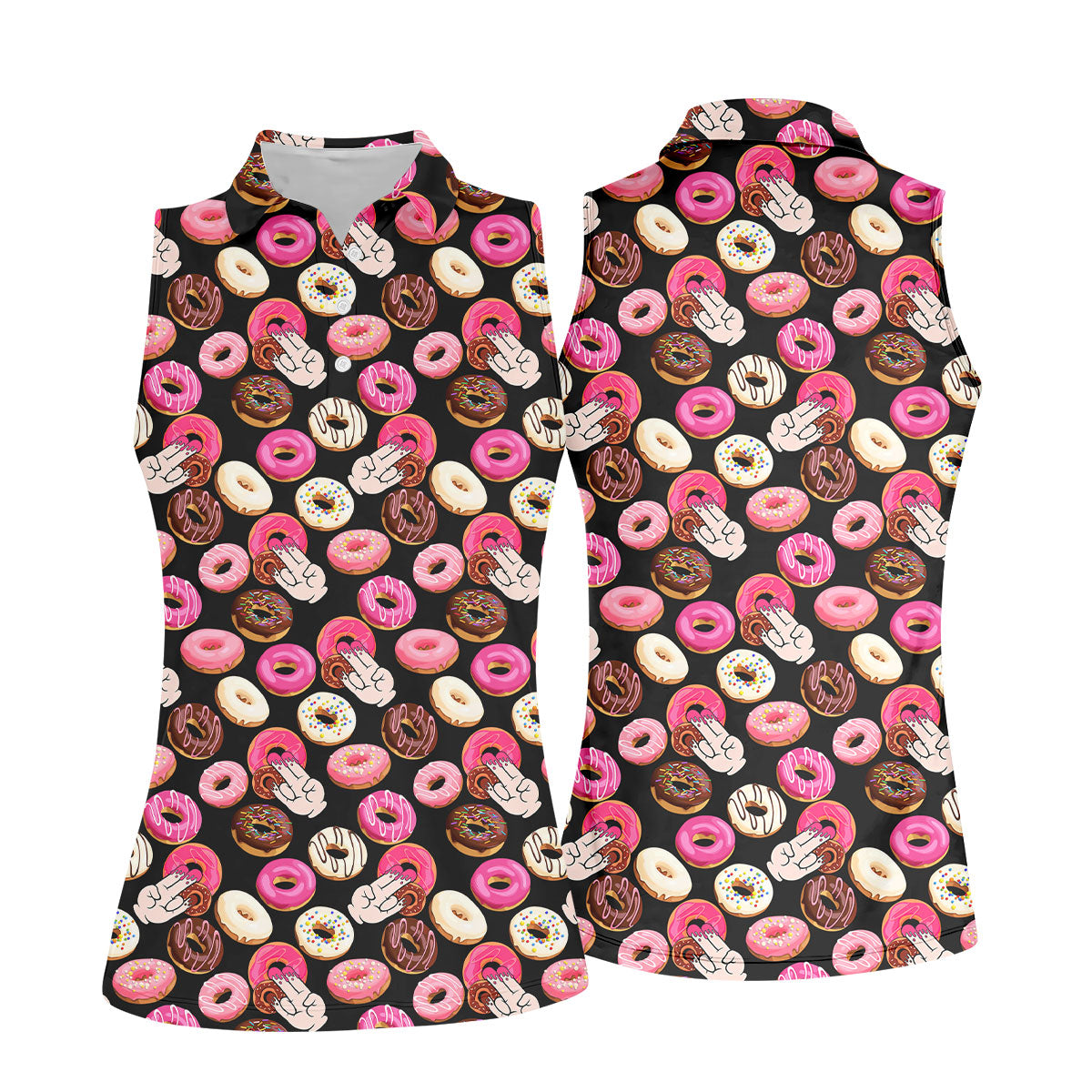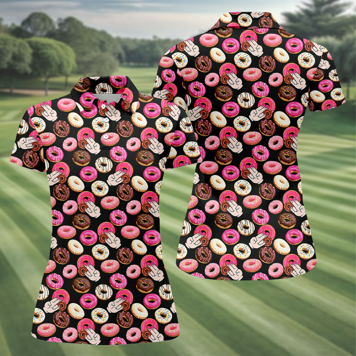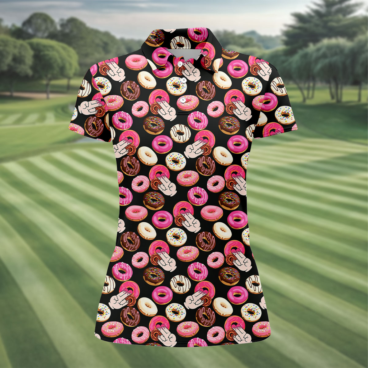 Funny Donut Adult Humor Black And Pink Fun Women's Golf Shirts, Women's Golf Tops, Ladies Golf Shirts