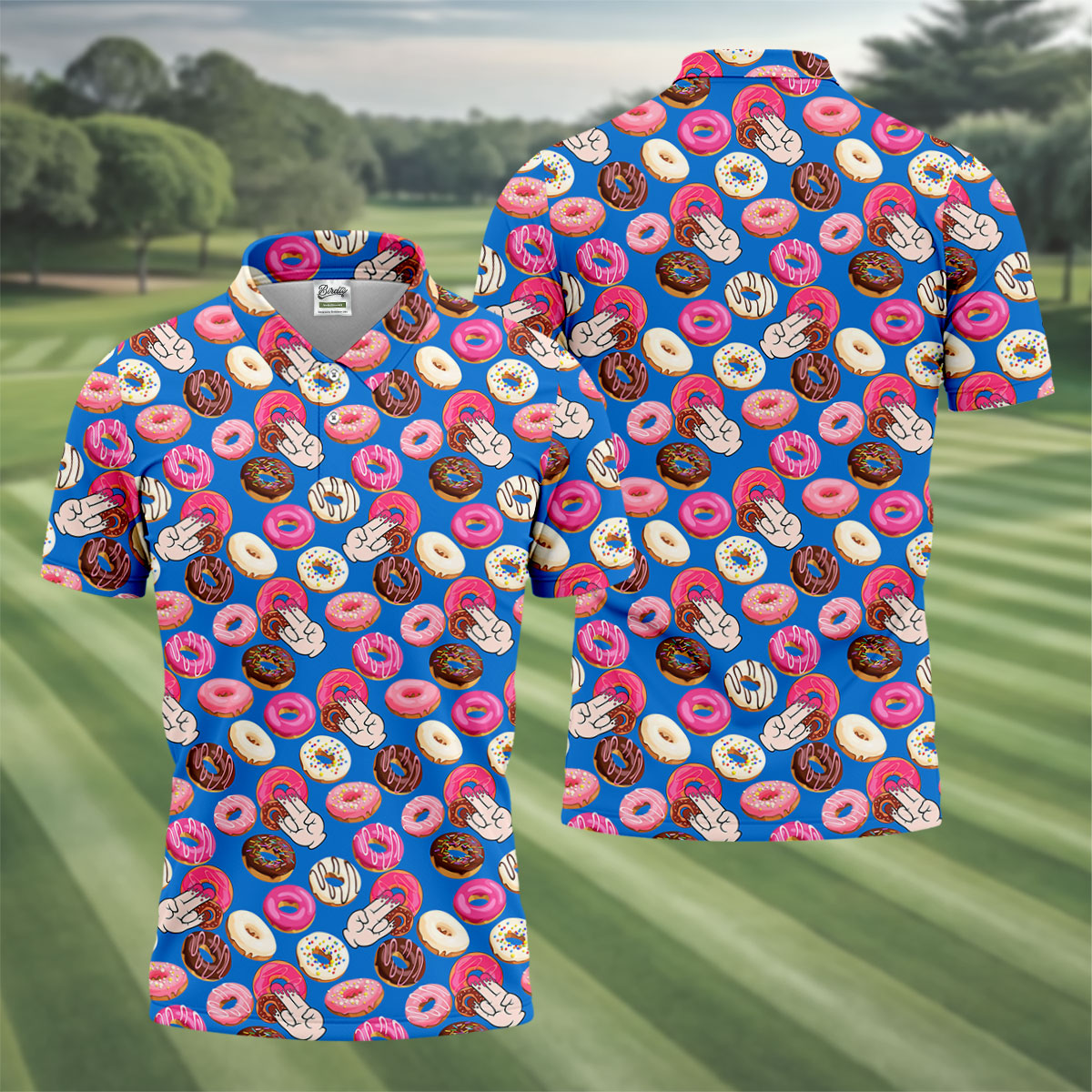 Funny Donut Adult Humor Blue And Pink Fun Golf Shirts For Men, Valentines Golf Gift, Polo Shirts For Men