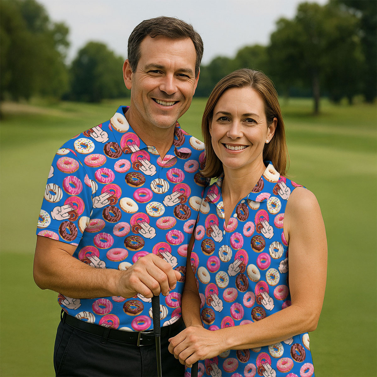 Funny Donut Adult Humor Blue And Pink Fun Women's Golf Shirts, Women's Golf Tops, Ladies Golf Shirts