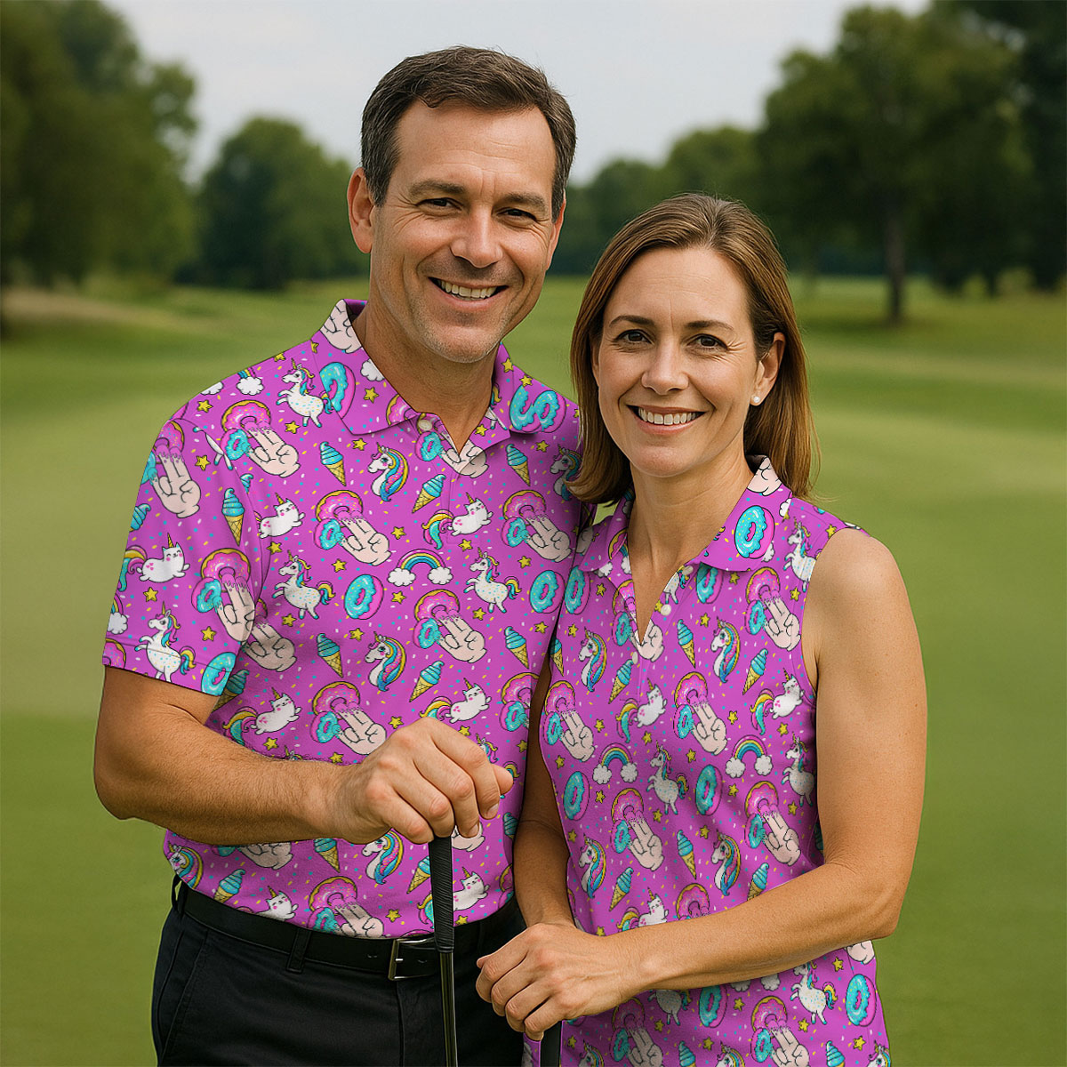 Funny Donut Fingers Pink Adult Humor Mens Golf Shirts, Polo Shirts For Men, Valentines Golf Gift