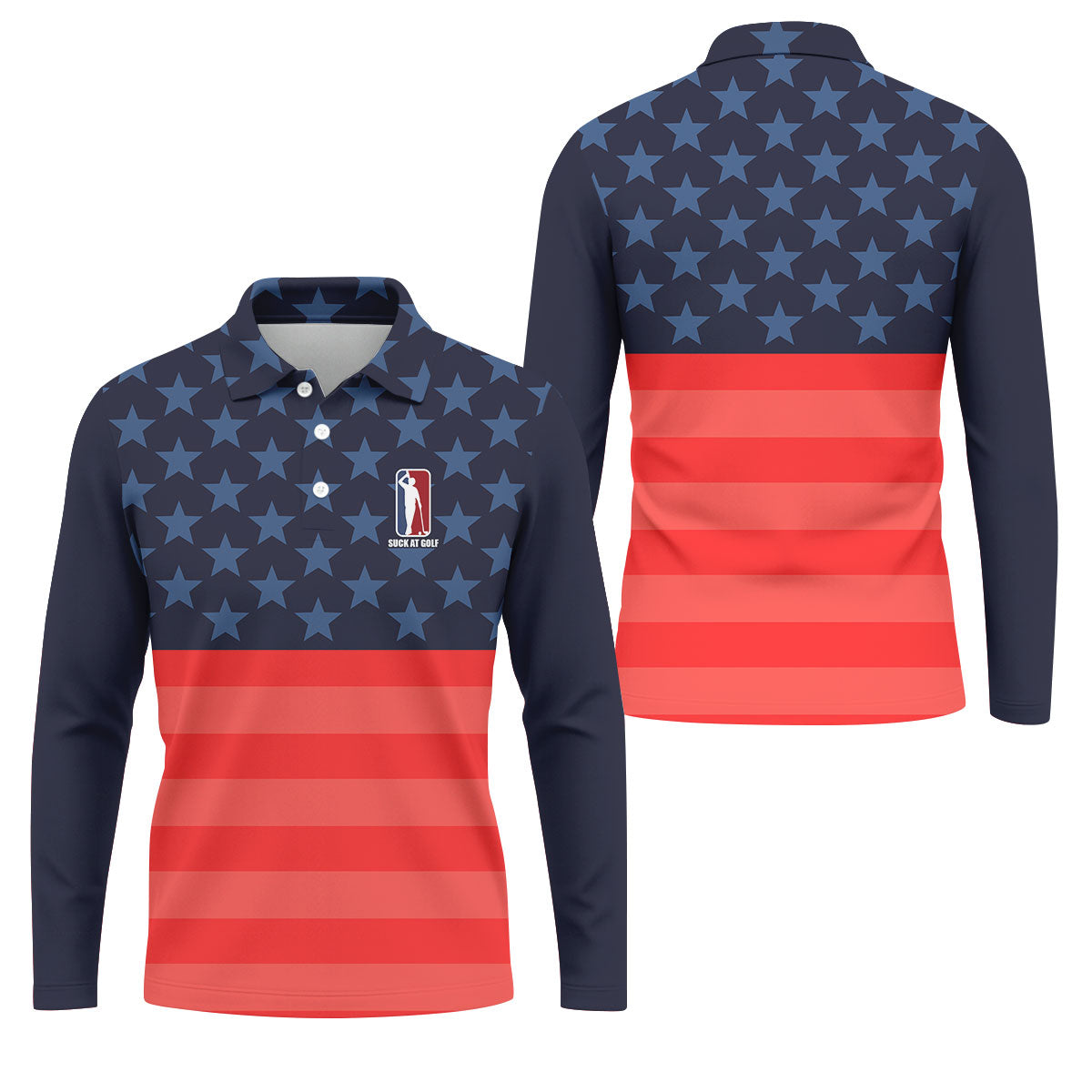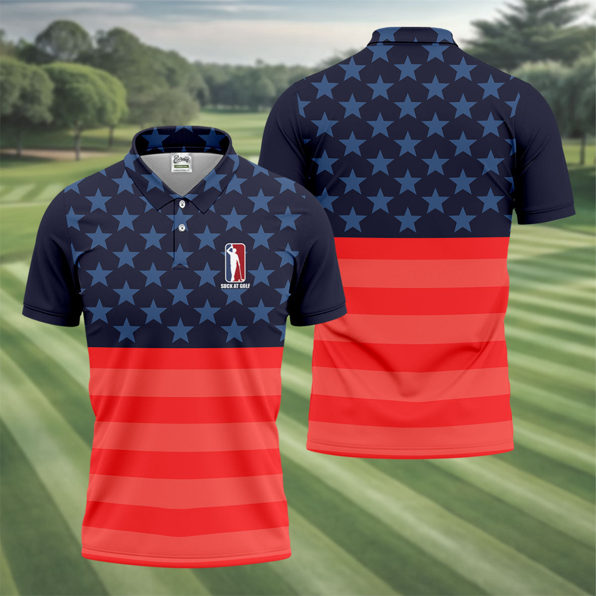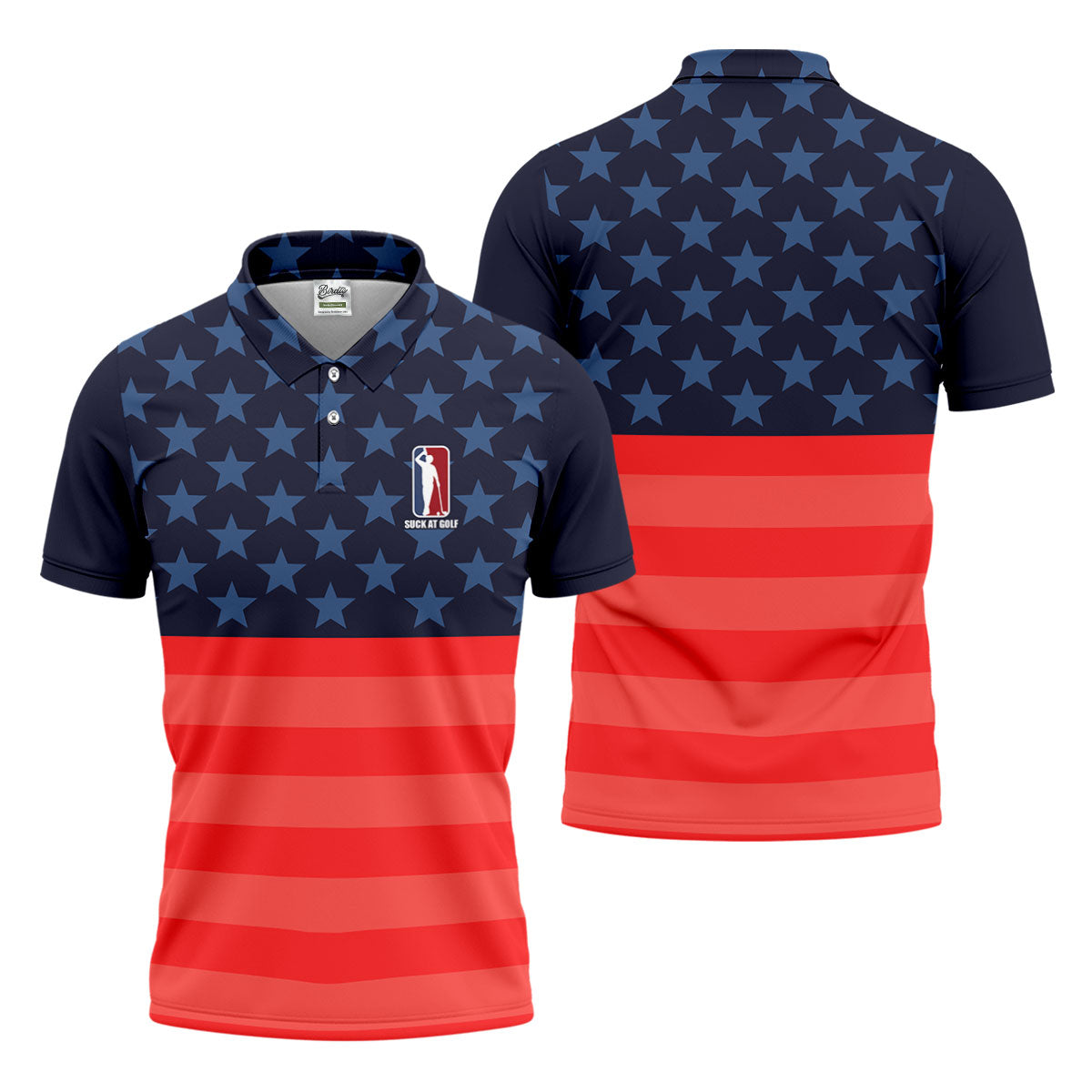 Funny Suck At Golf Drunk Golfer Golf Tops For Men, 250 Years Of America Golf Shirt, Patriotic Polo Shirts For Men