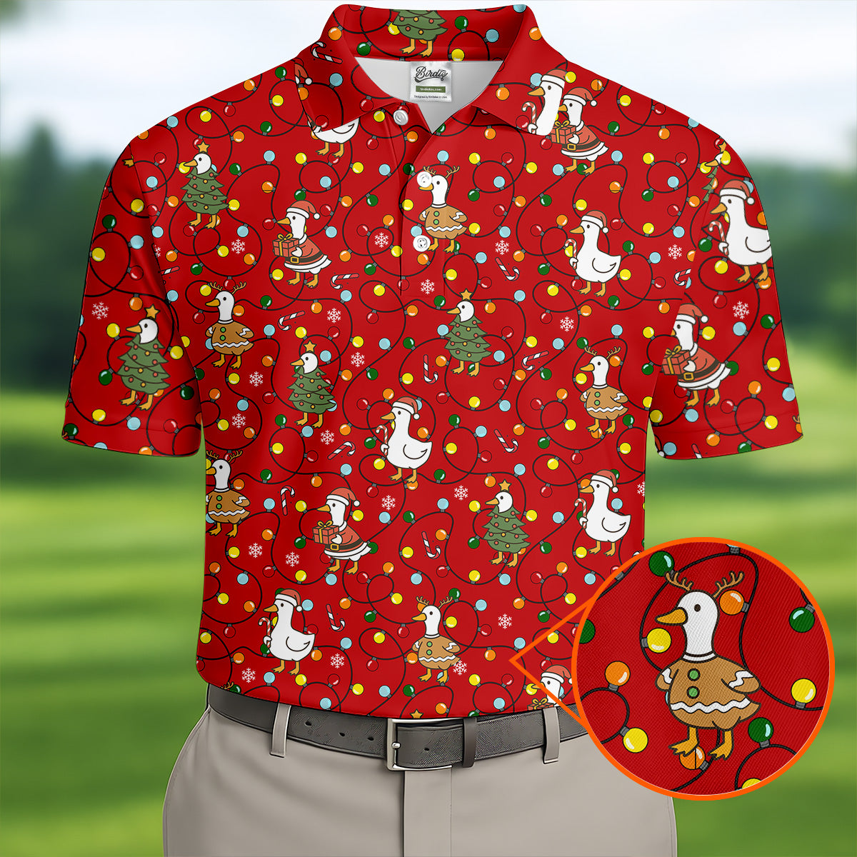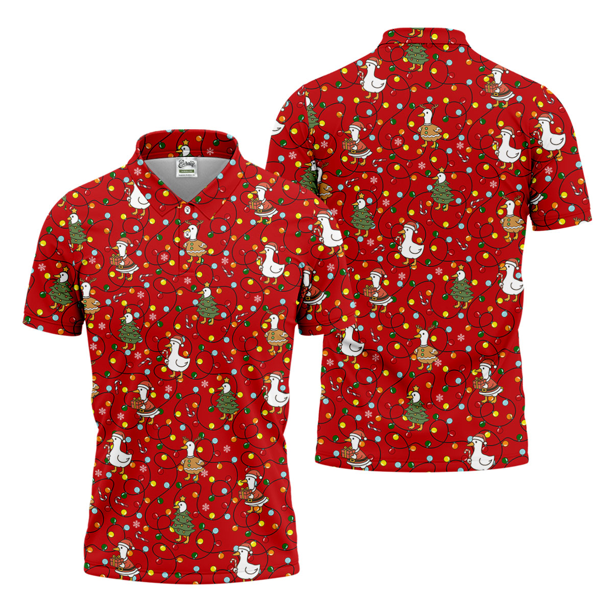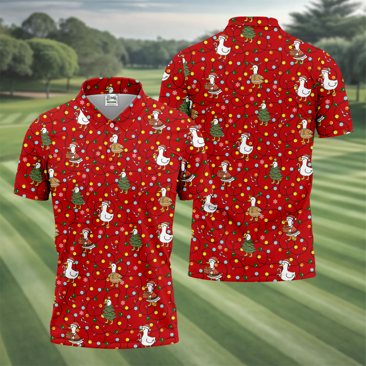 Funny Duck Merry Xmas Red Golf Shirts, Gifts For Golf Lovers, Polo Shirts For Men, Golfing Apparel