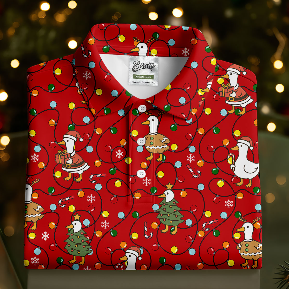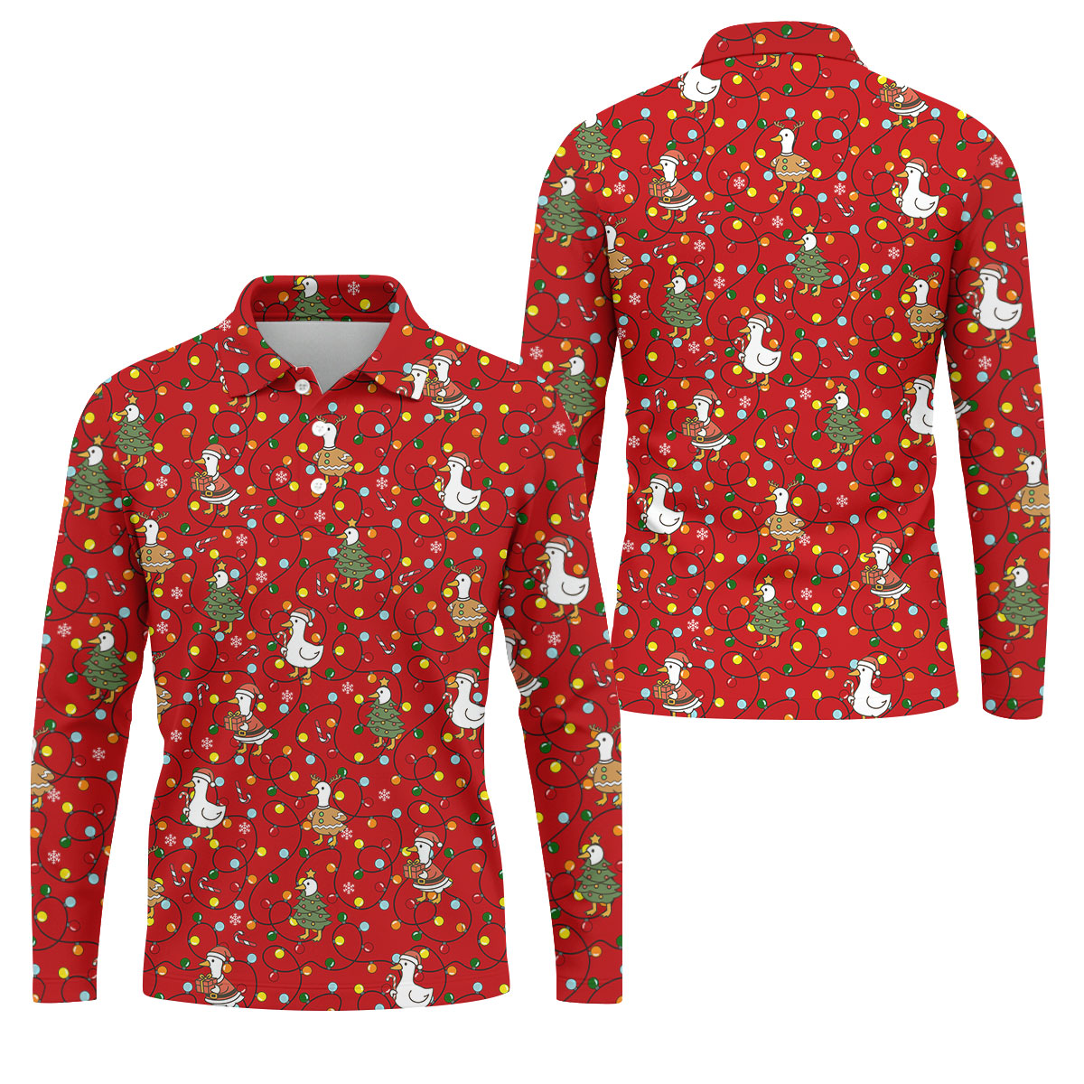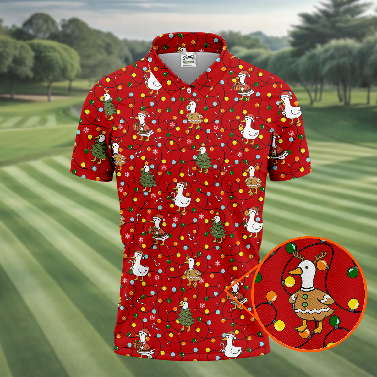 Funny Duck Merry Xmas Red Golf Shirts, Gifts For Golf Lovers, Polo Shirts For Men, Golfing Apparel
