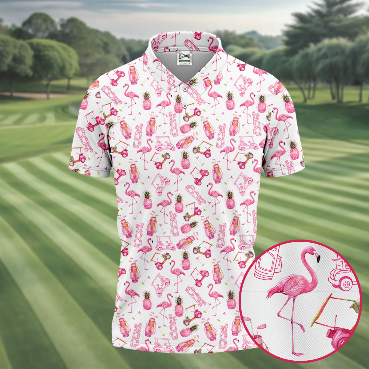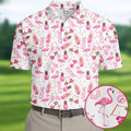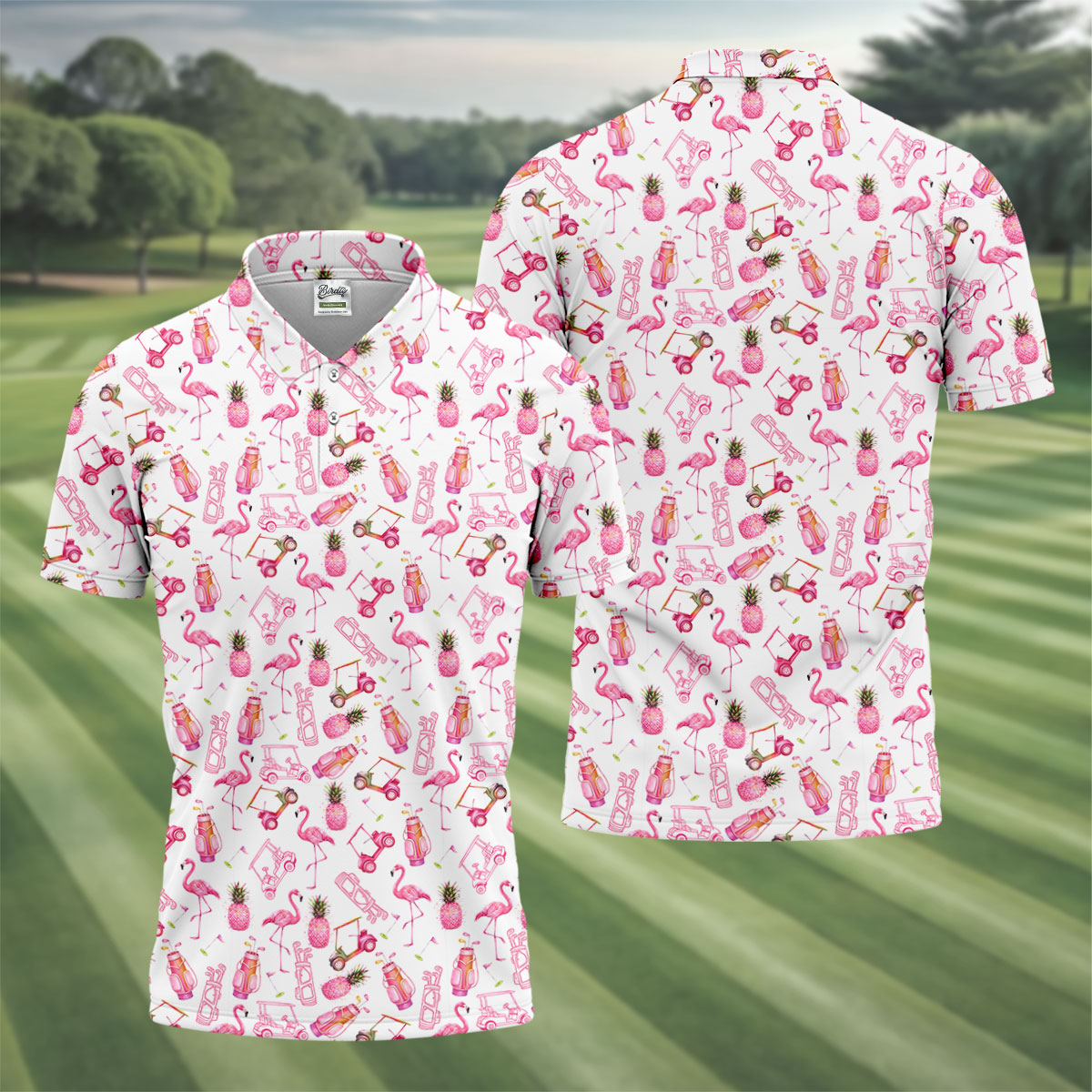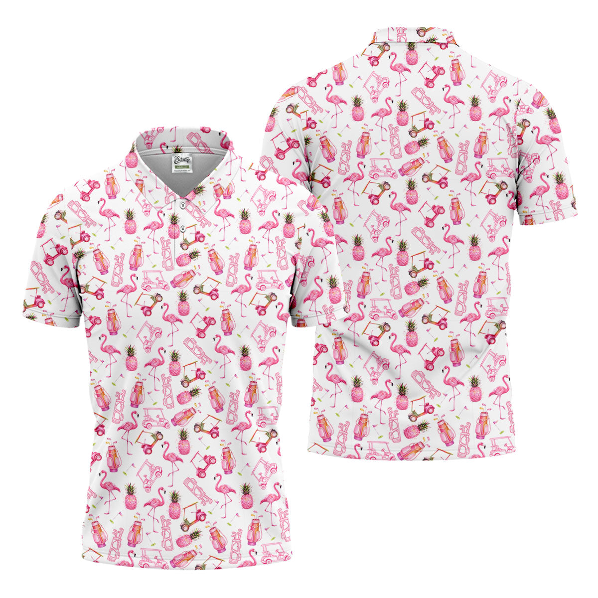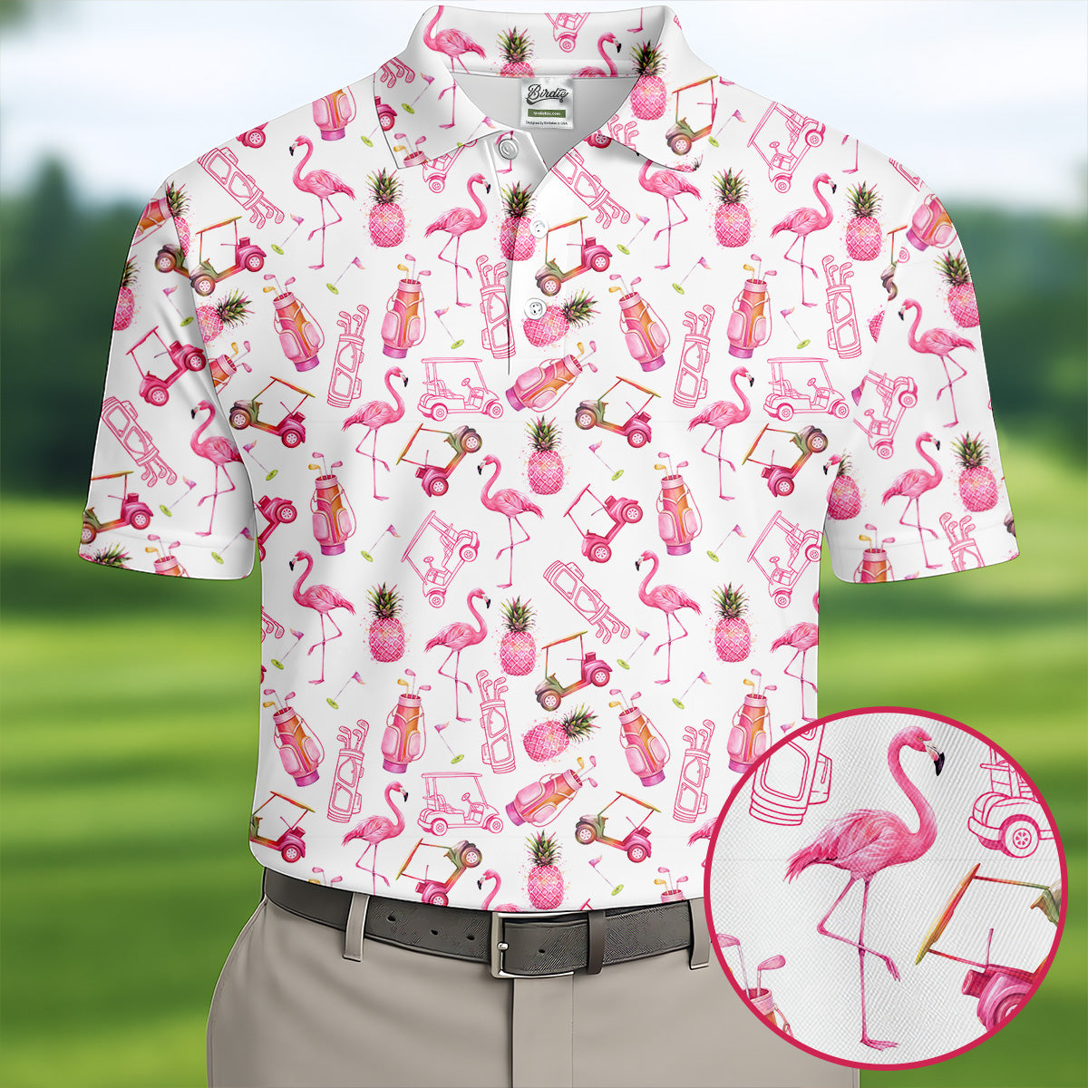 Funny Flamingo Pink Pineapple Tropical Vibe Golf Tops For Men, Men's Funny Golf Shirts, Polo Shirts For Men