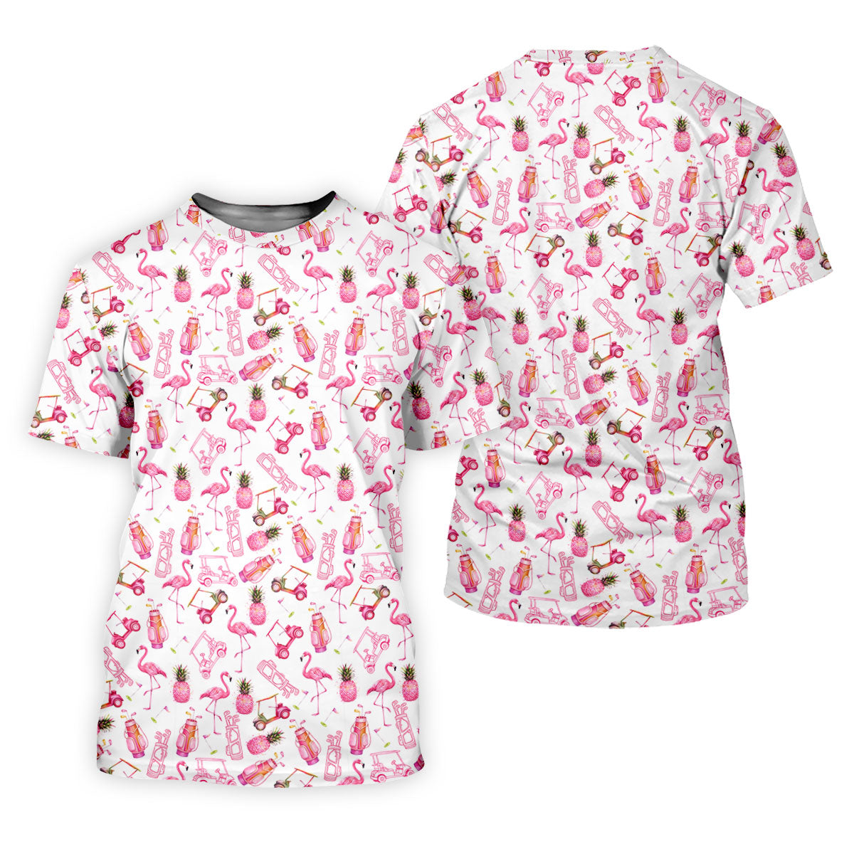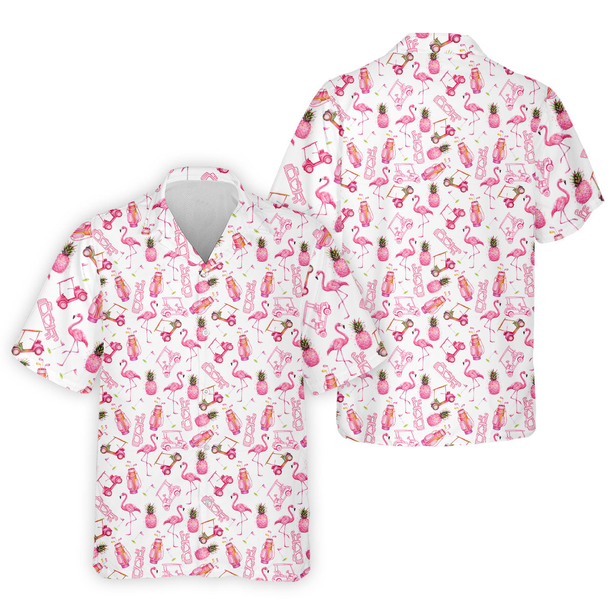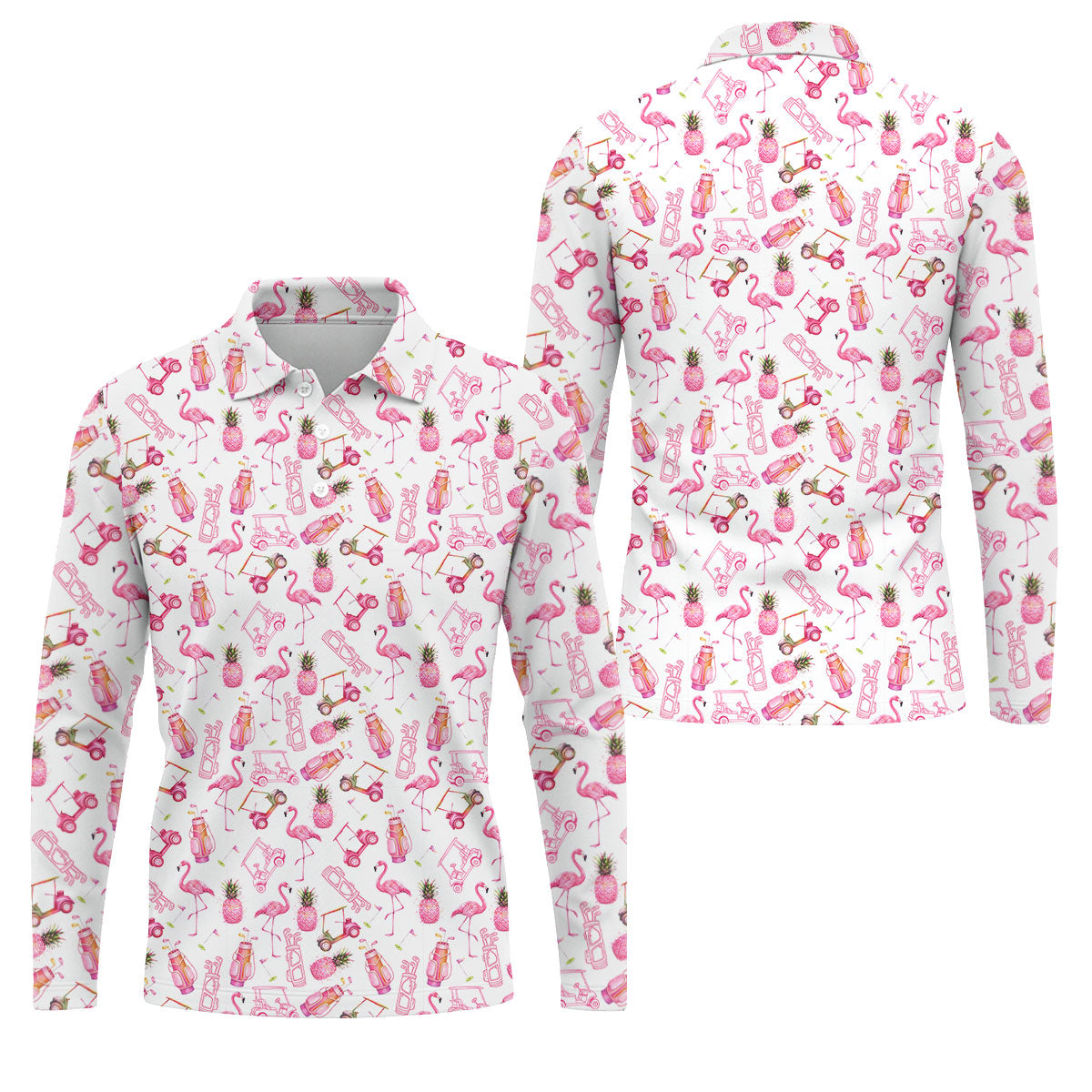 Funny Flamingo Pink Pineapple Tropical Vibe Golf Tops For Men, Men's Funny Golf Shirts, Polo Shirts For Men