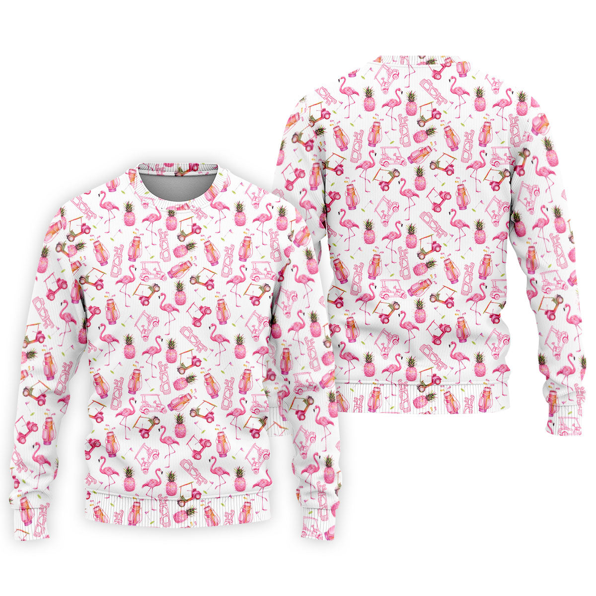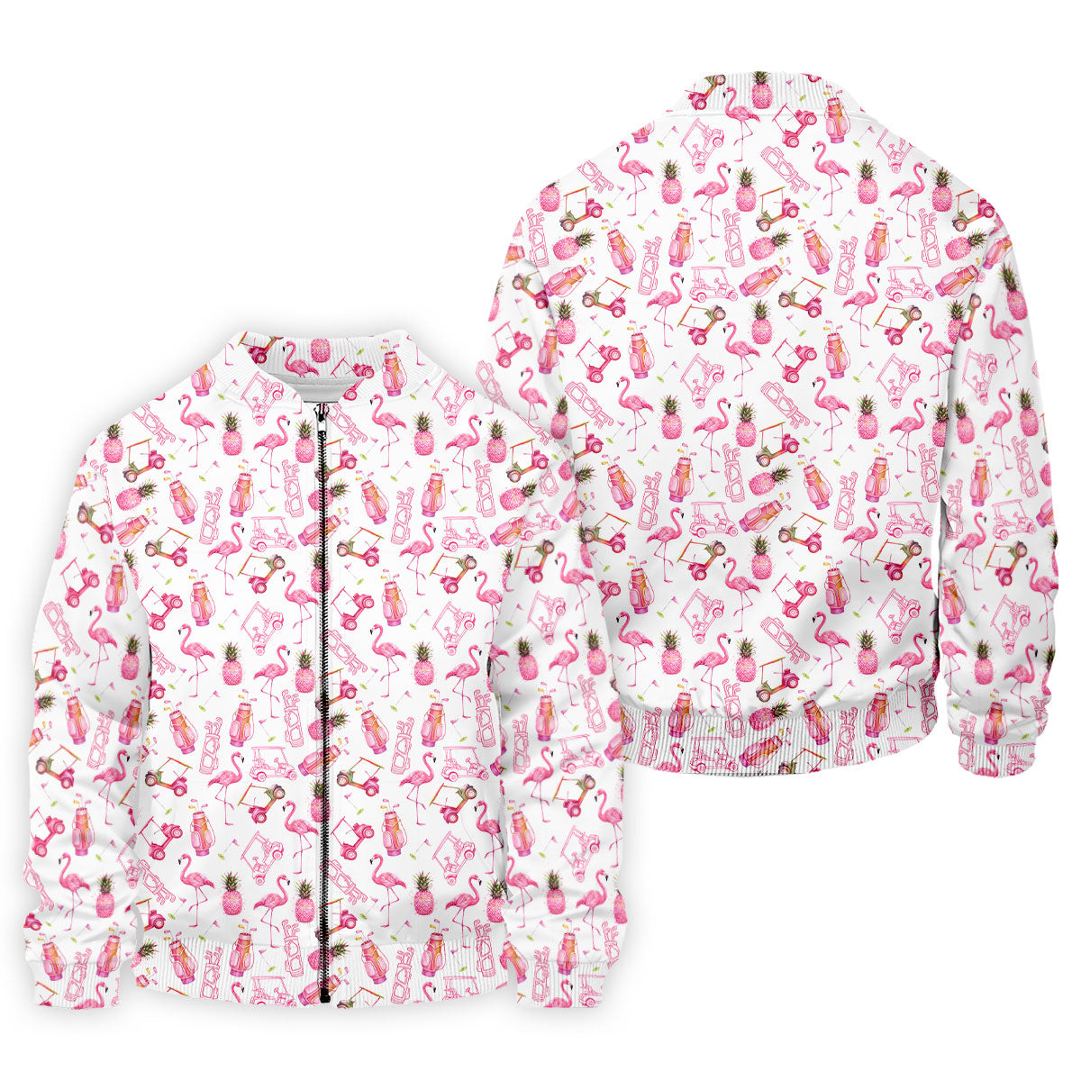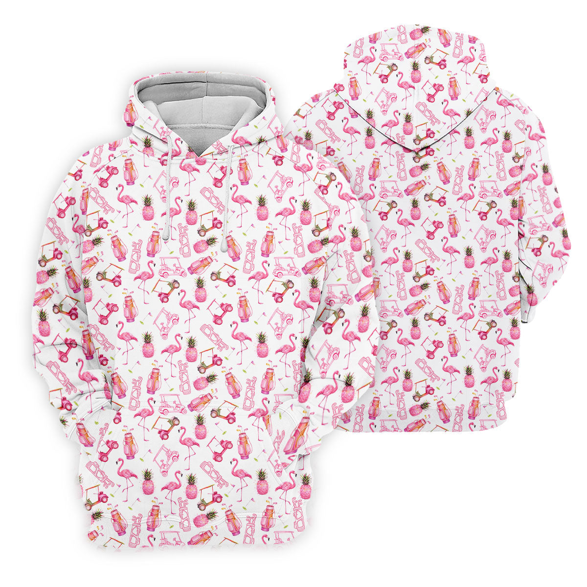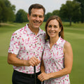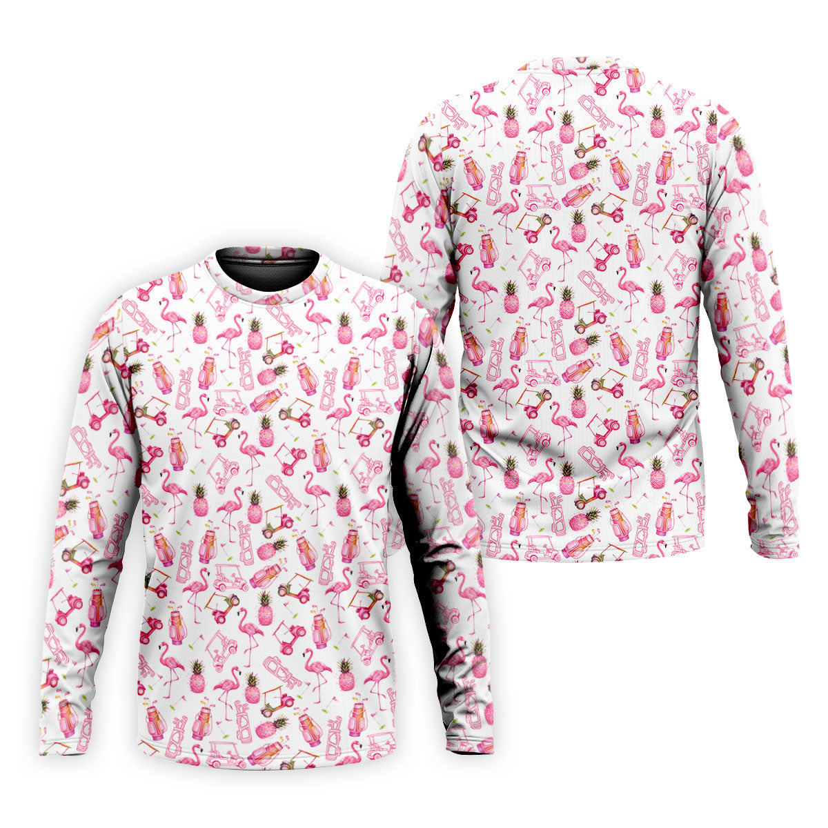 Funny Flamingo Pink Pineapple Tropical Vibe Golf Tops For Men, Men's Funny Golf Shirts, Polo Shirts For Men