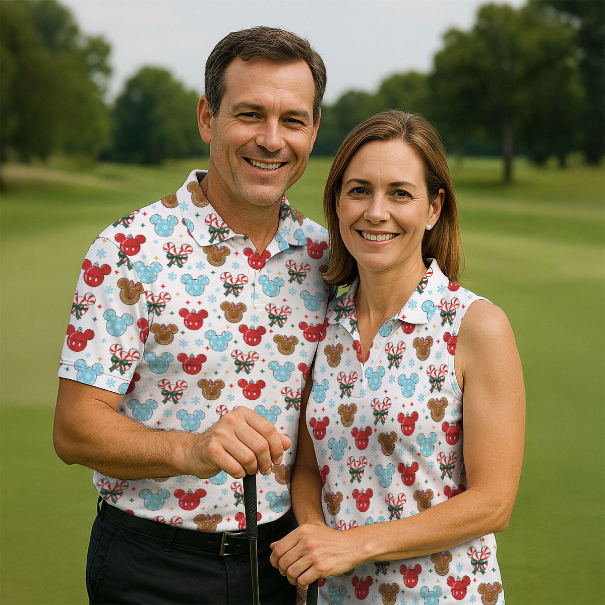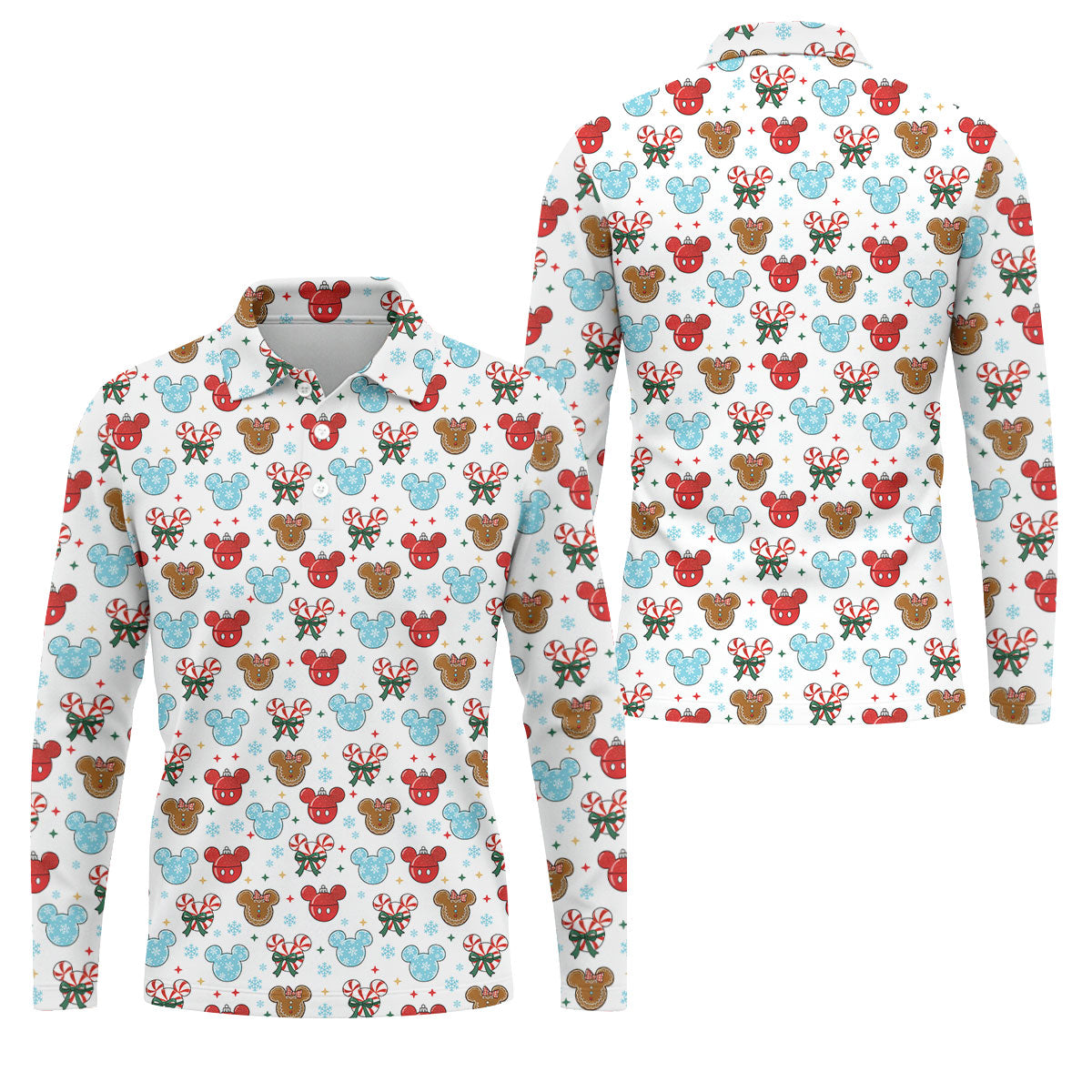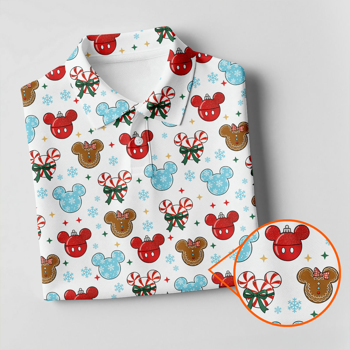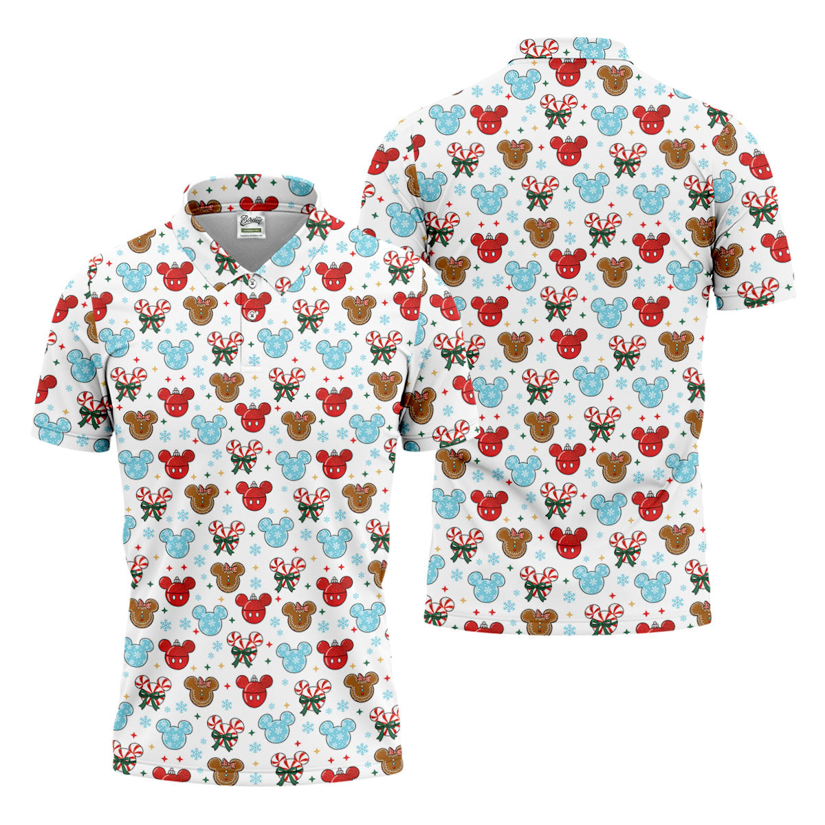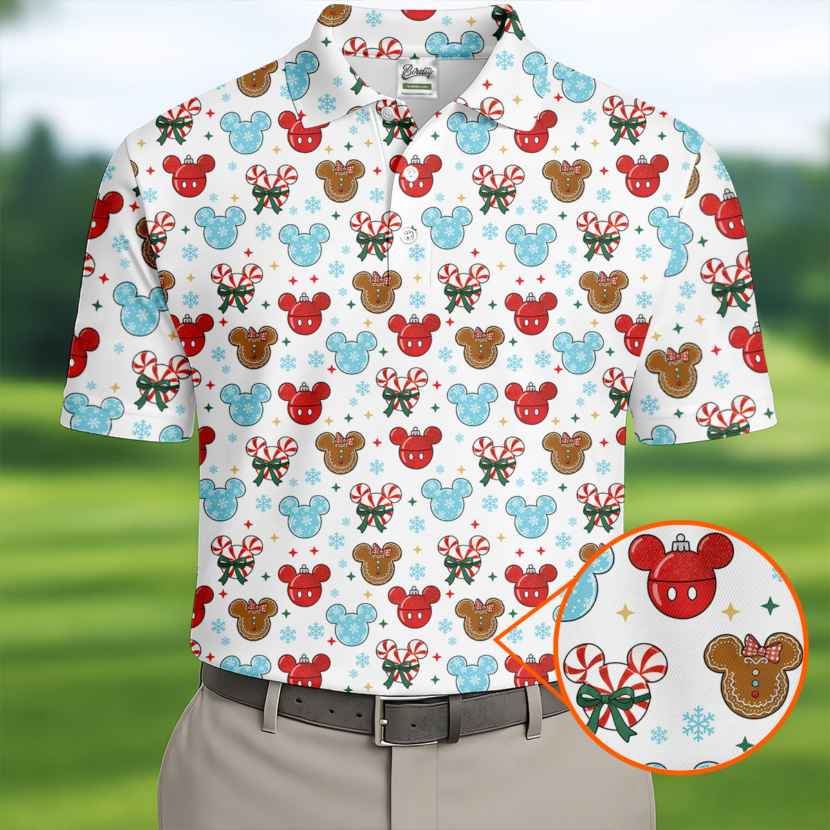 Funny Gingerbread Christmas Candy Cane Golf Tops For Men, Polo Shirts For Men, Christmas Golf Shirt