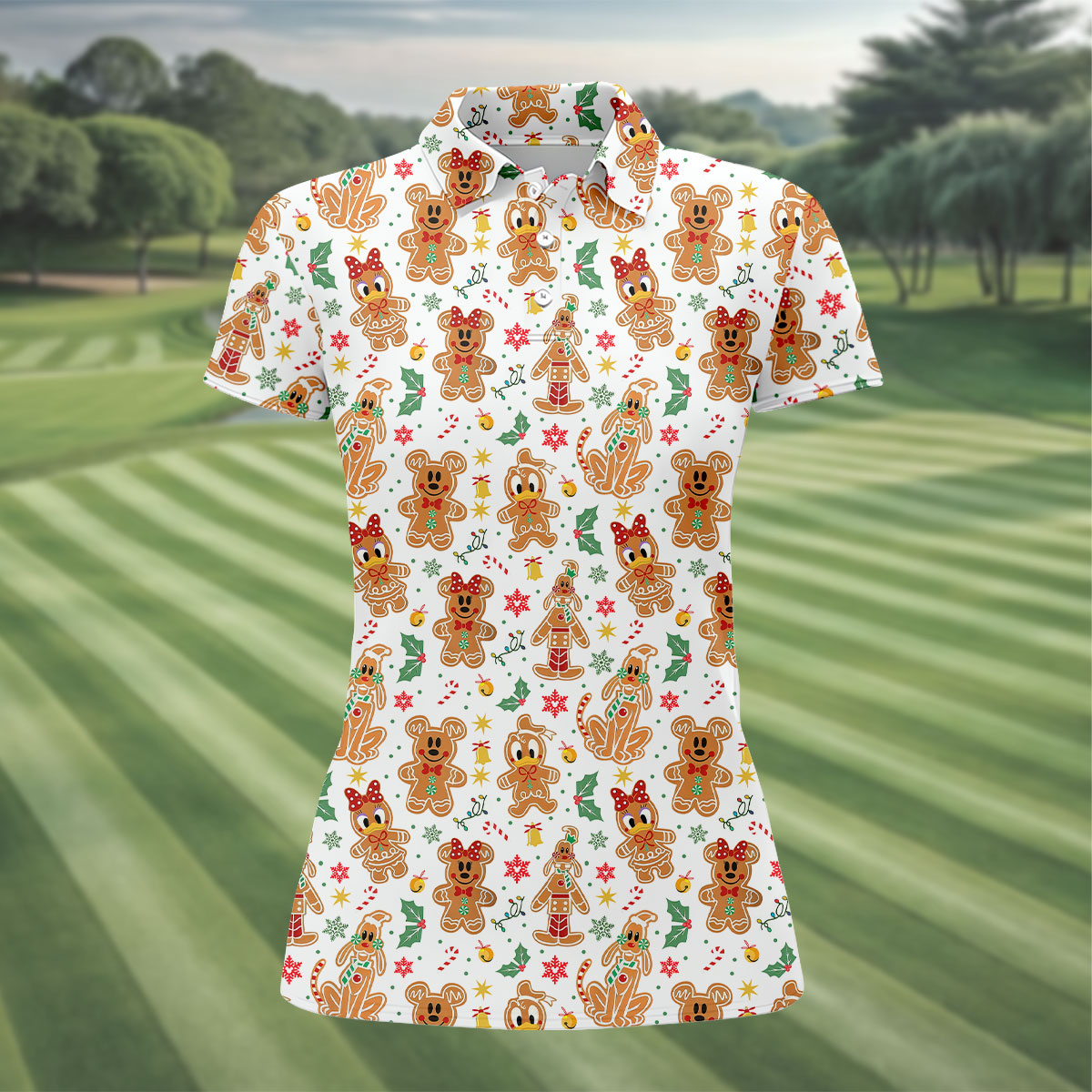 Funny Gingerbread Christmas Golf Shirt, Cute Women's Golf Clothes, Ladies Golf Shirts, Christmas Golf Gift
