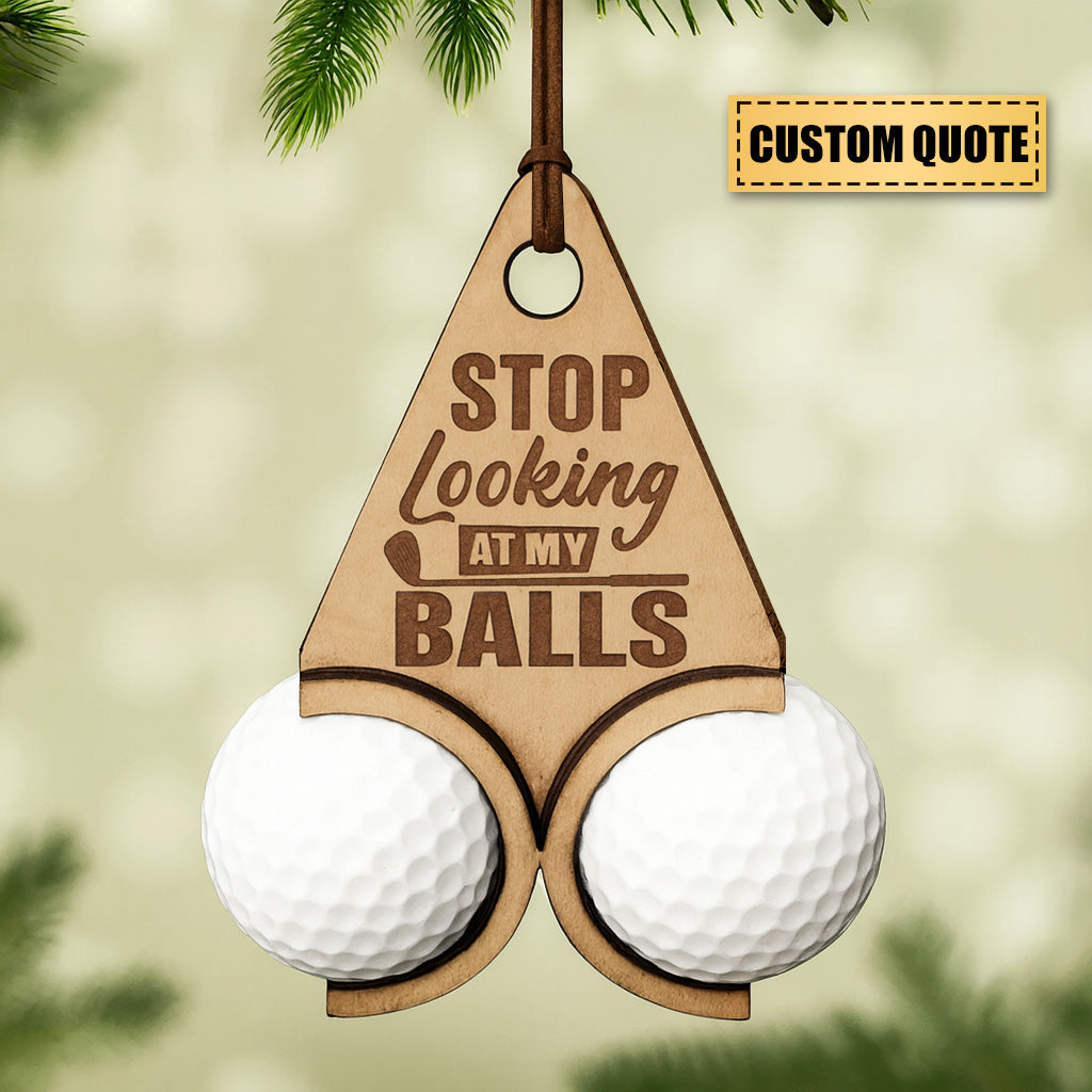 Funny Golf Ornament – “Stop Looking At My Balls” – Personalized Golf Gift for Him