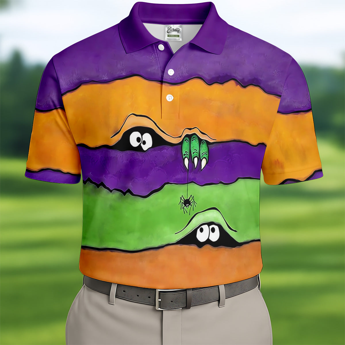 Funny Halloween Peeping Eyes Polo Shirts For Men, Golf Tops For Men, Halloween Golf Shirt