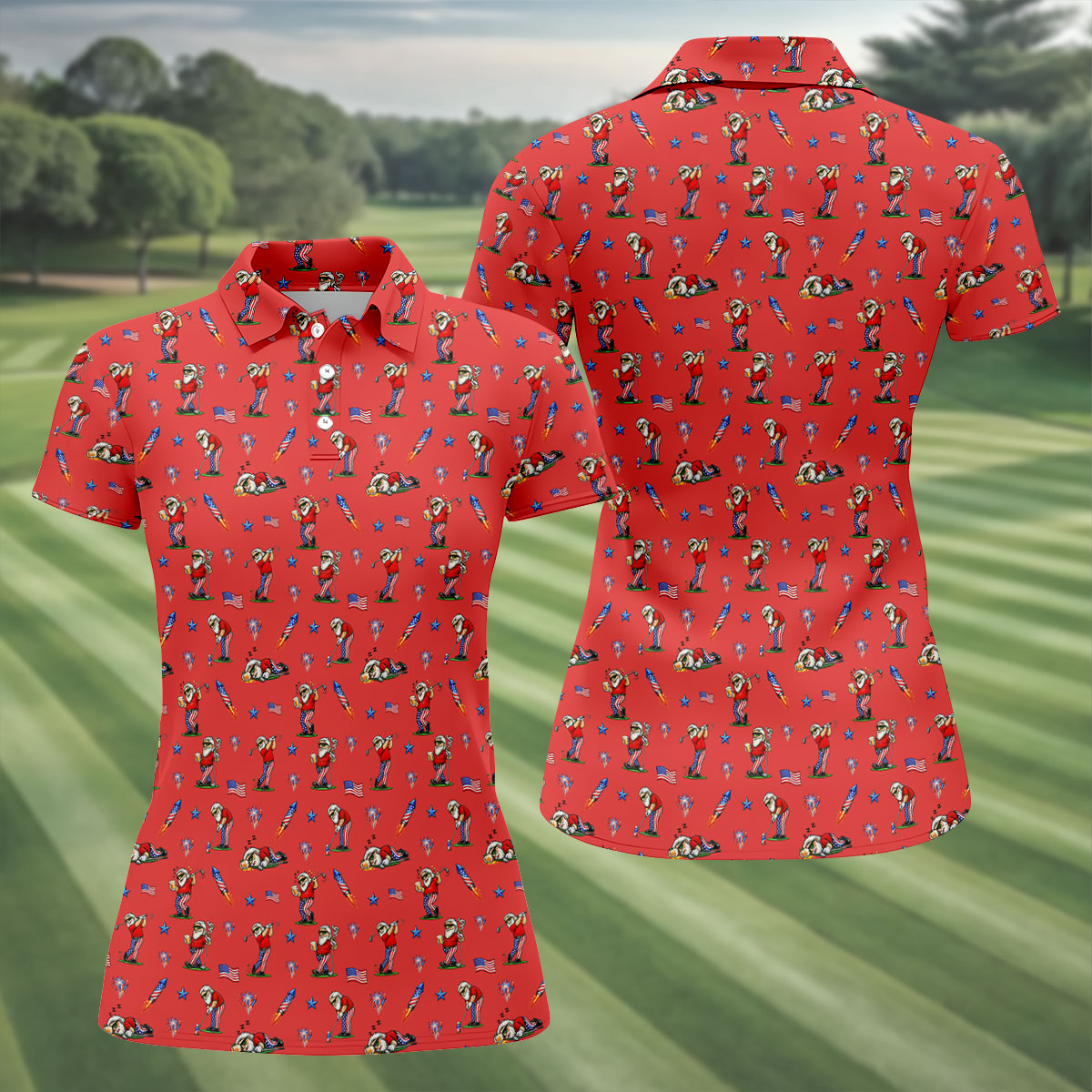Funny Man Golf And Beer Red Golf Shirt, Vintage Golf Shirt, 250th Anniversary Women's Golf Tops