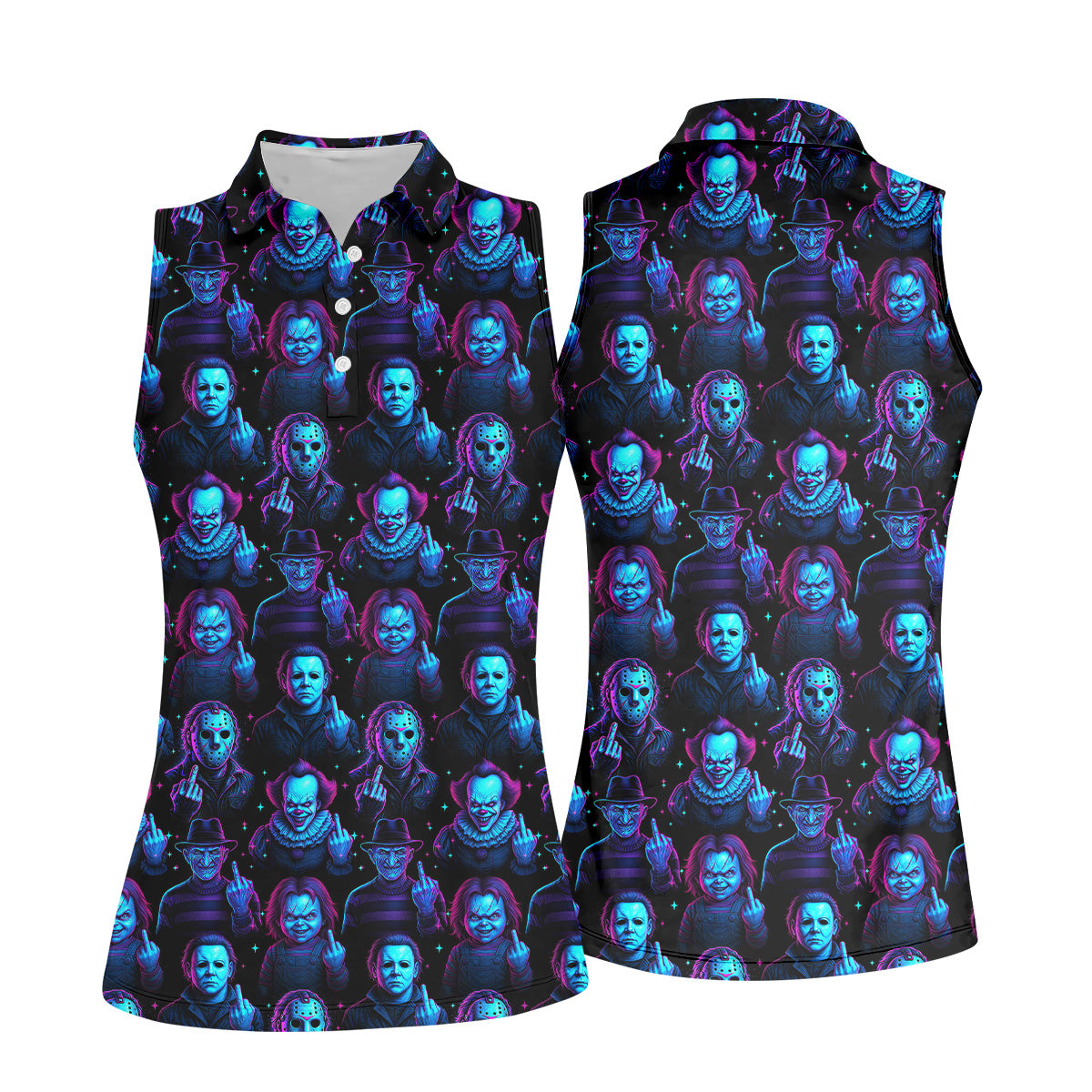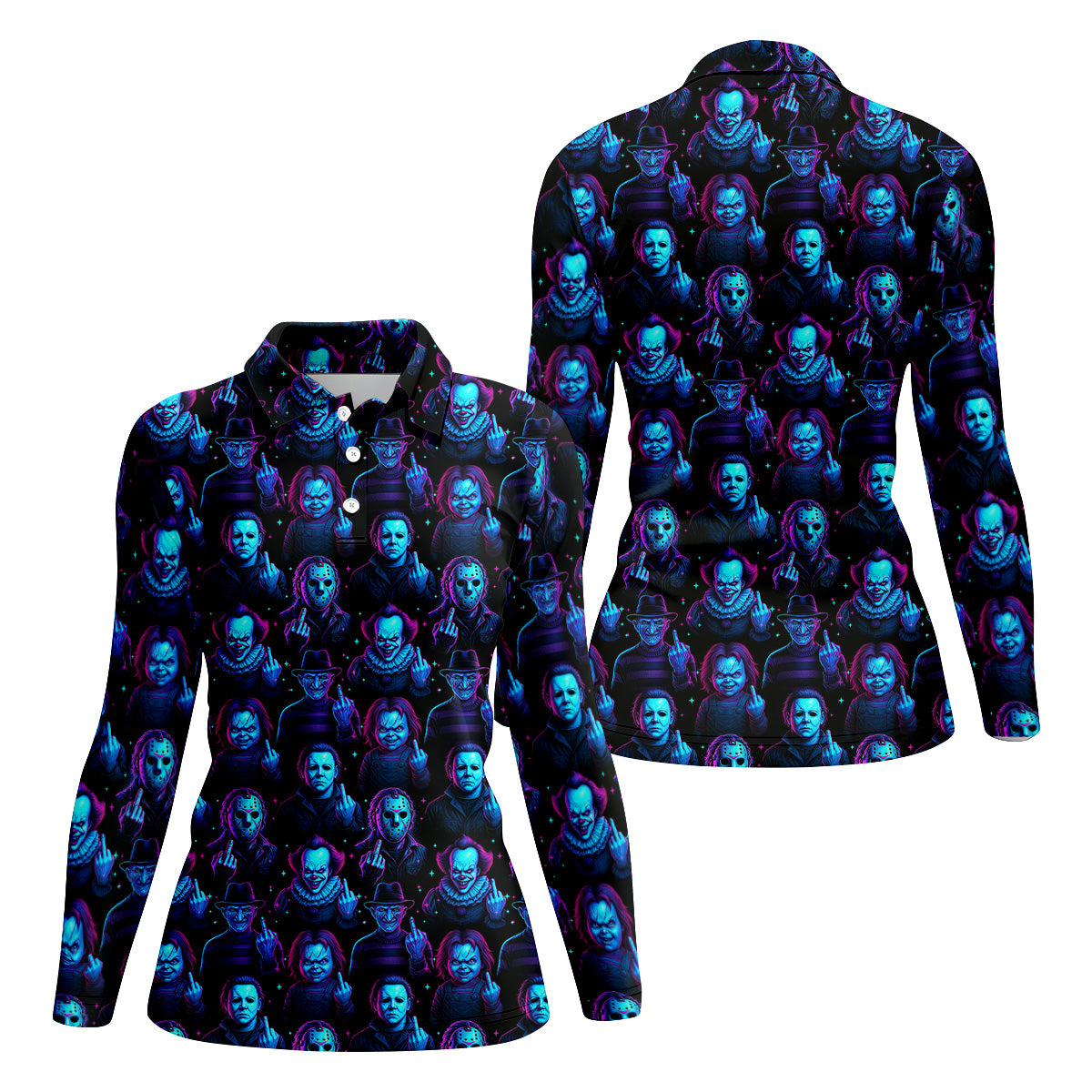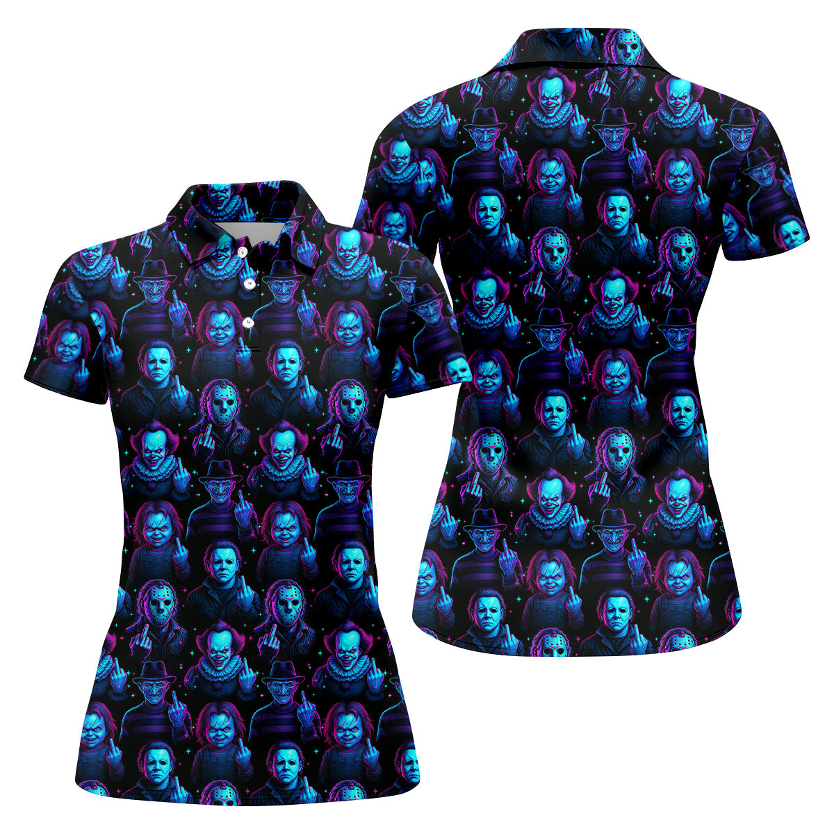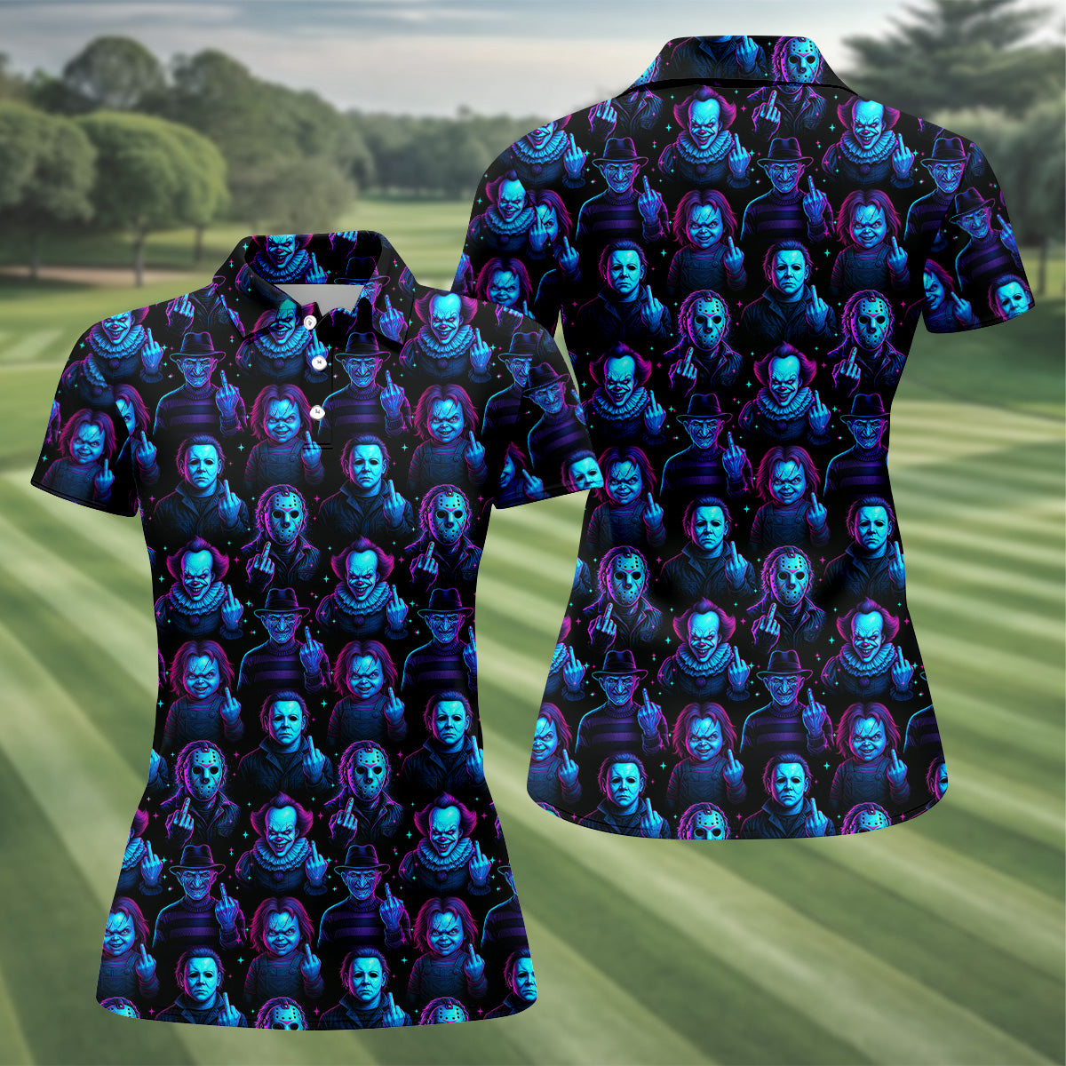 Funny Middle Finger Women Golf Shirt, Horror Character Shirt, Halloween Golf Shirt, Scary Halloween Shirts