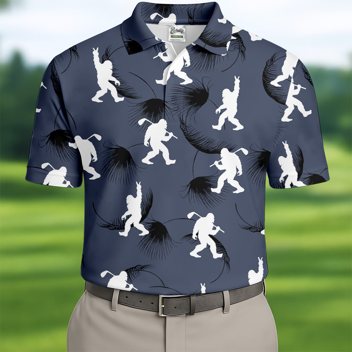 Funny Navy Bigfoot Golf Shirt, Golf Tops For Men, Custom Golf Polos, Golf Gift For Men